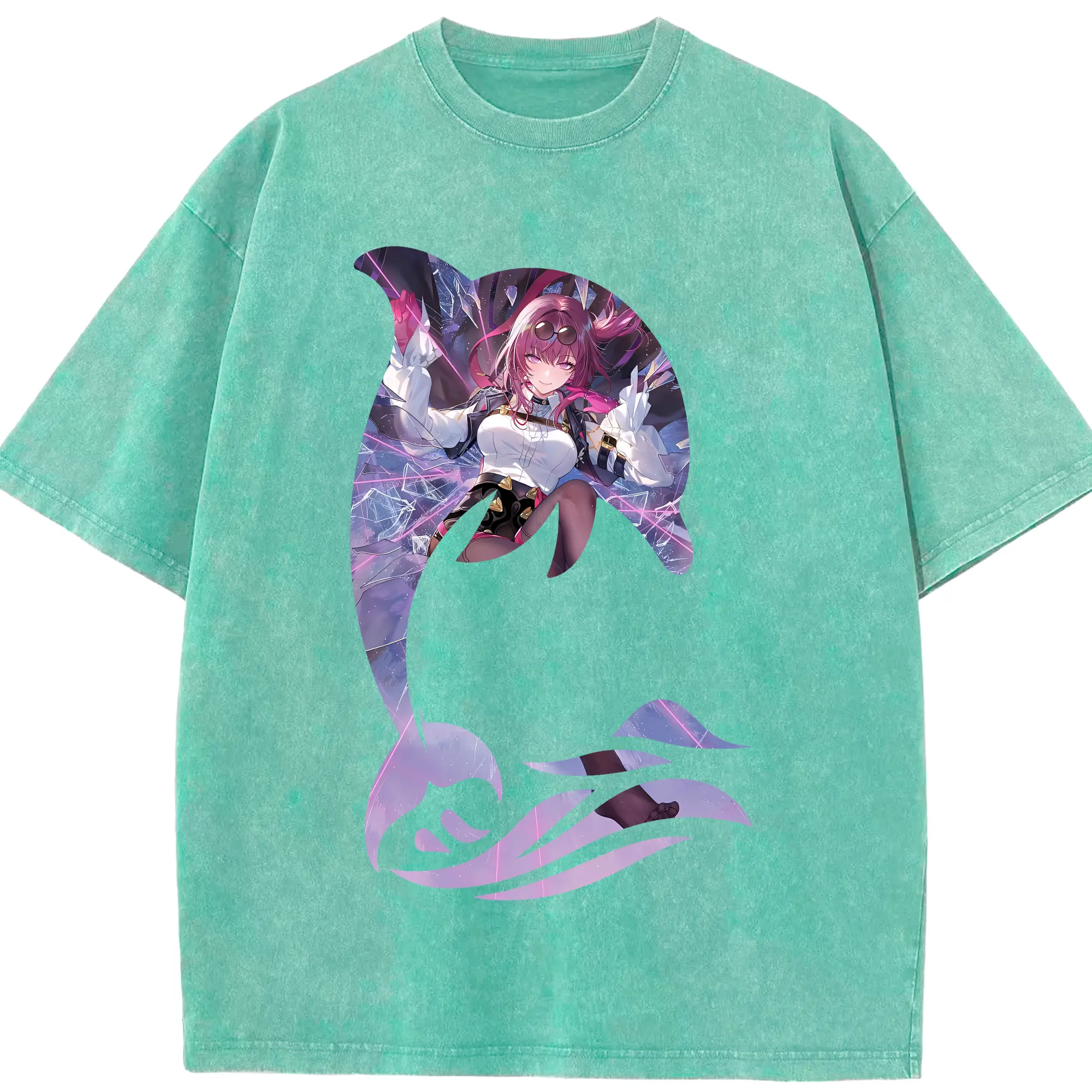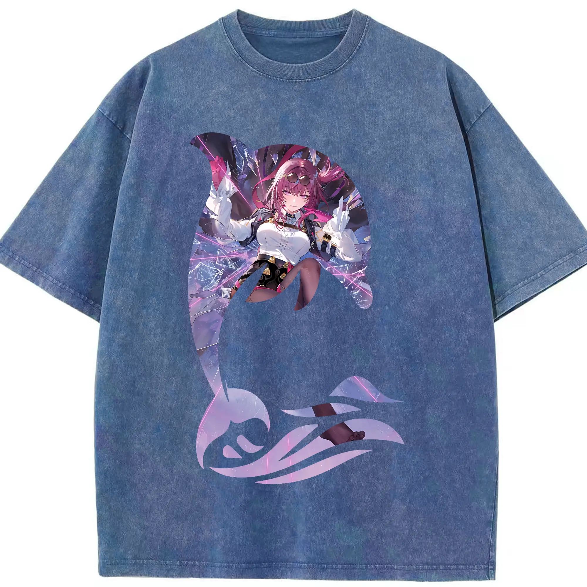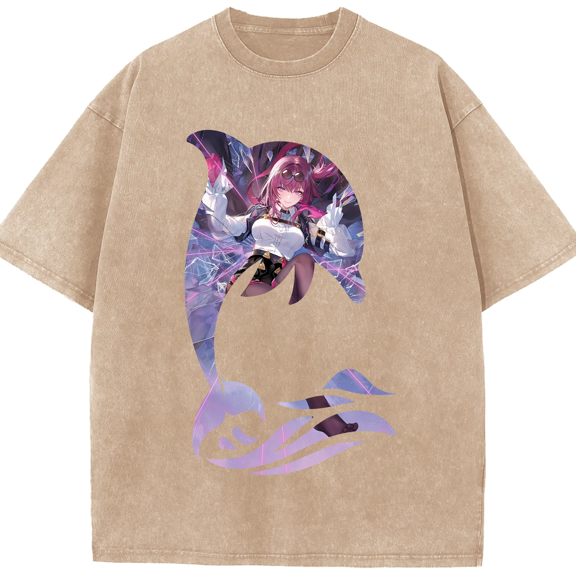 ブルーアーカイブ グッズ 聖園ミカ - 綿100% ヴィンテージ風 半袖Tシャツ ・ フロントプリント ・ 柔らか肌触り ・ 通気性 快適 ・ スポーツ カジュアル 外出用