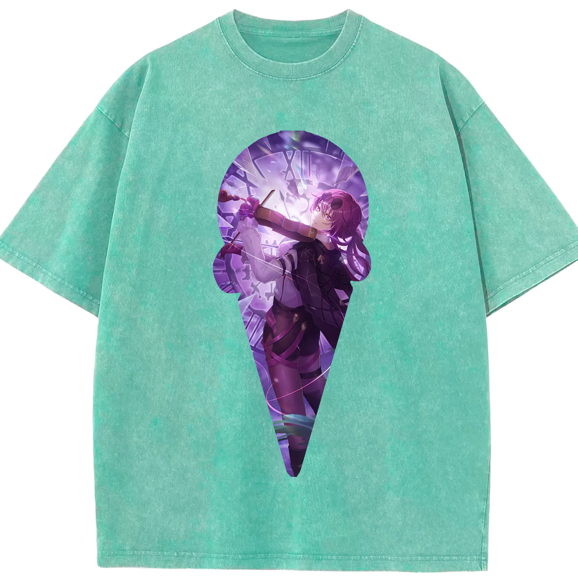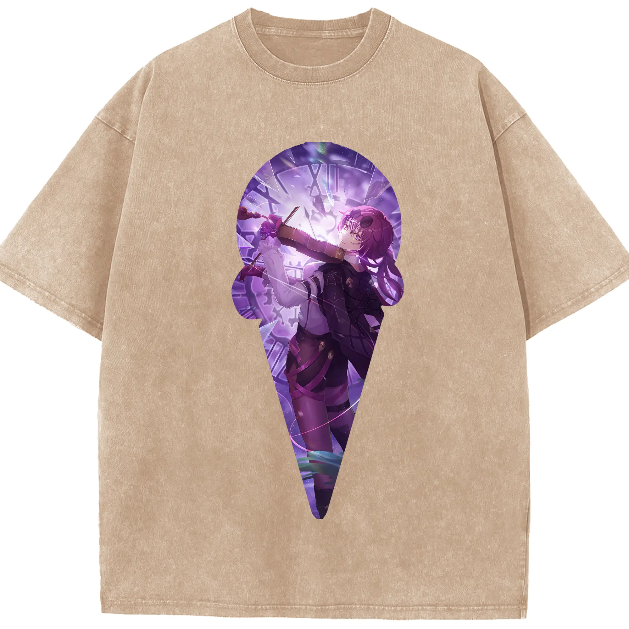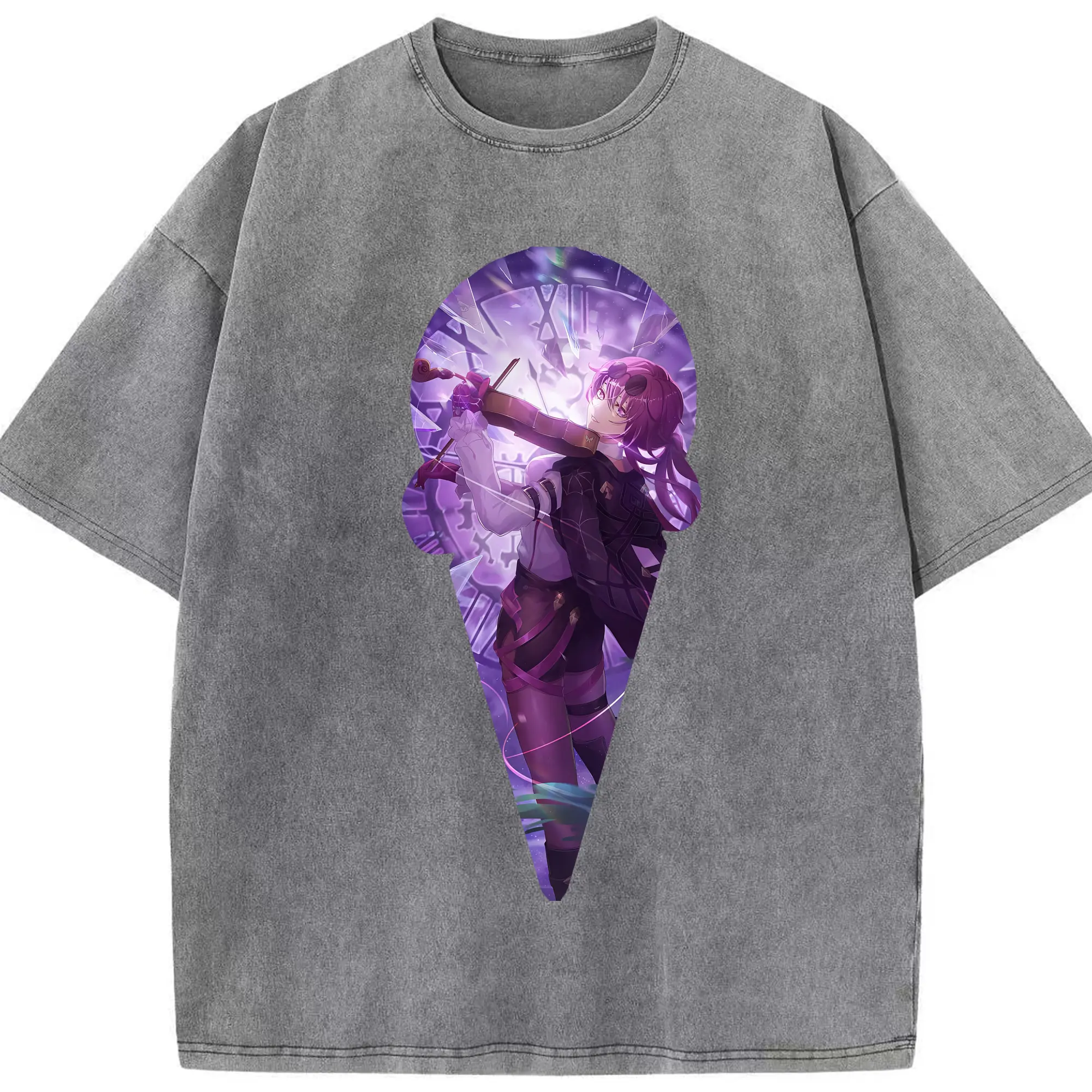 崩壊:スターレイル グッズ カフカ - 綿100% ヴィンテージ風 半袖Tシャツ ・ 背面プリント ・ 柔らか肌触り ・ 通気性 快適 ・ スポーツ カジュアル 外出用