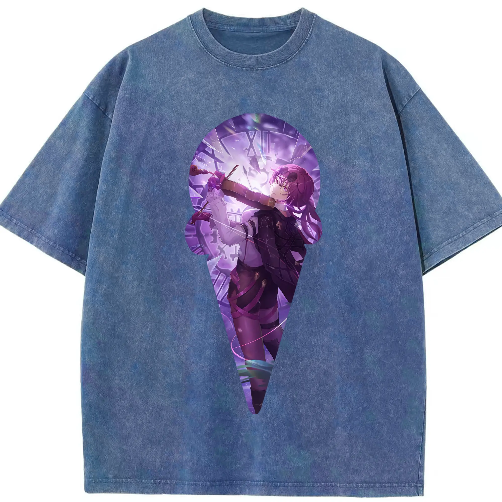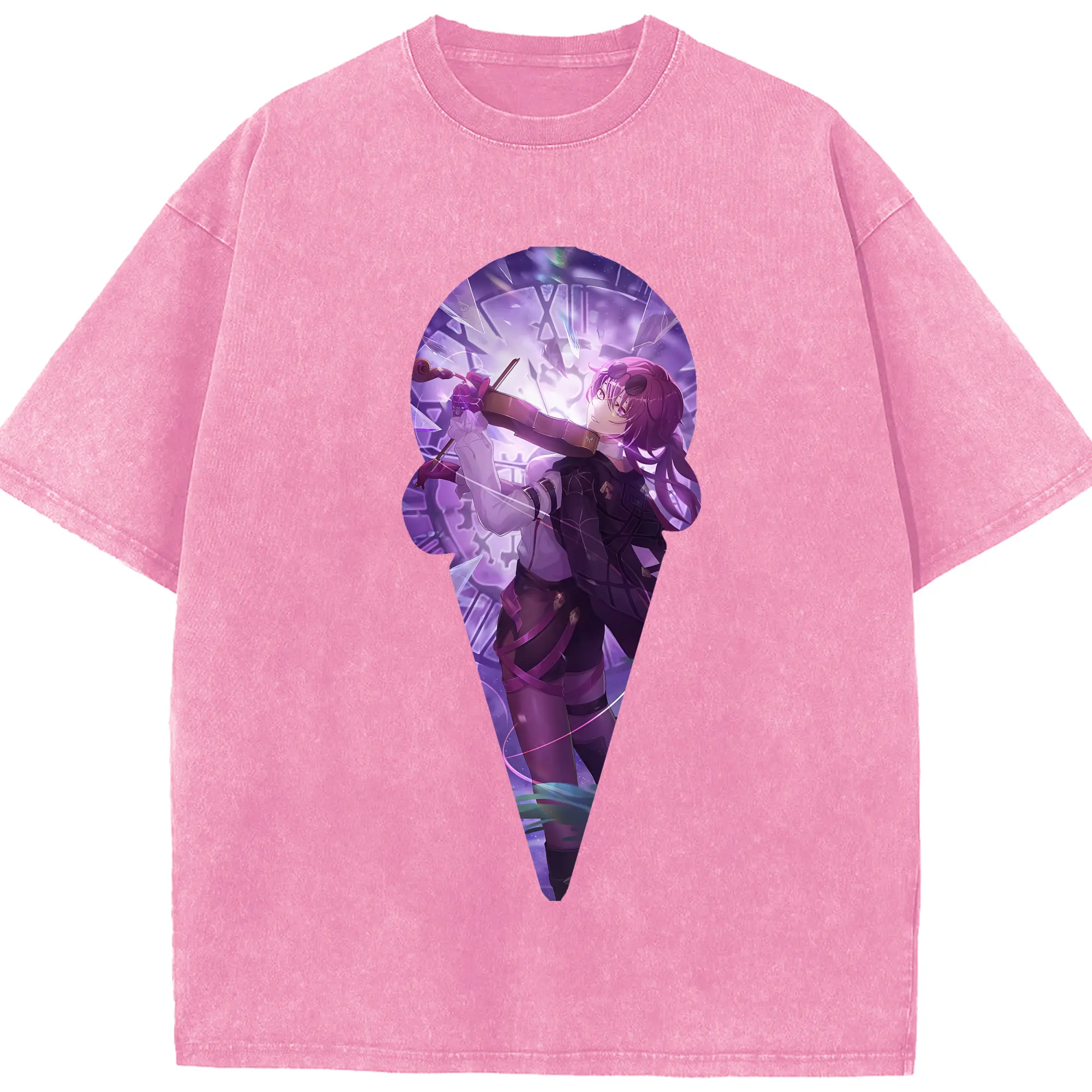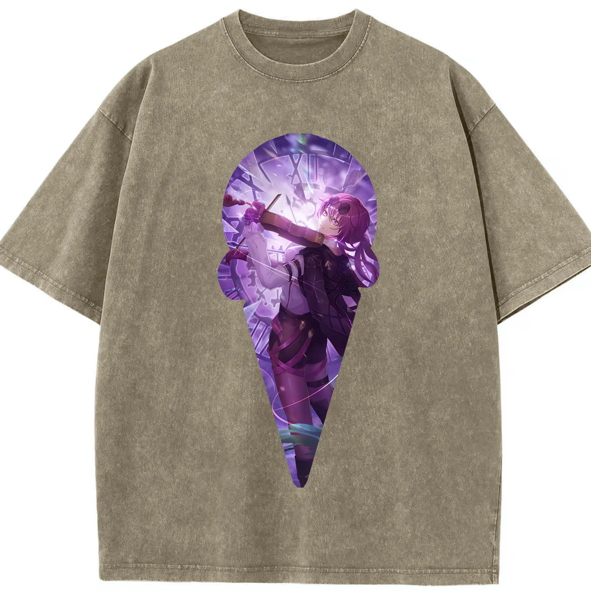 崩壊:スターレイル グッズ カフカ - 綿100% ヴィンテージ風 半袖Tシャツ ・ 背面プリント ・ 柔らか肌触り ・ 通気性 快適 ・ スポーツ カジュアル 外出用