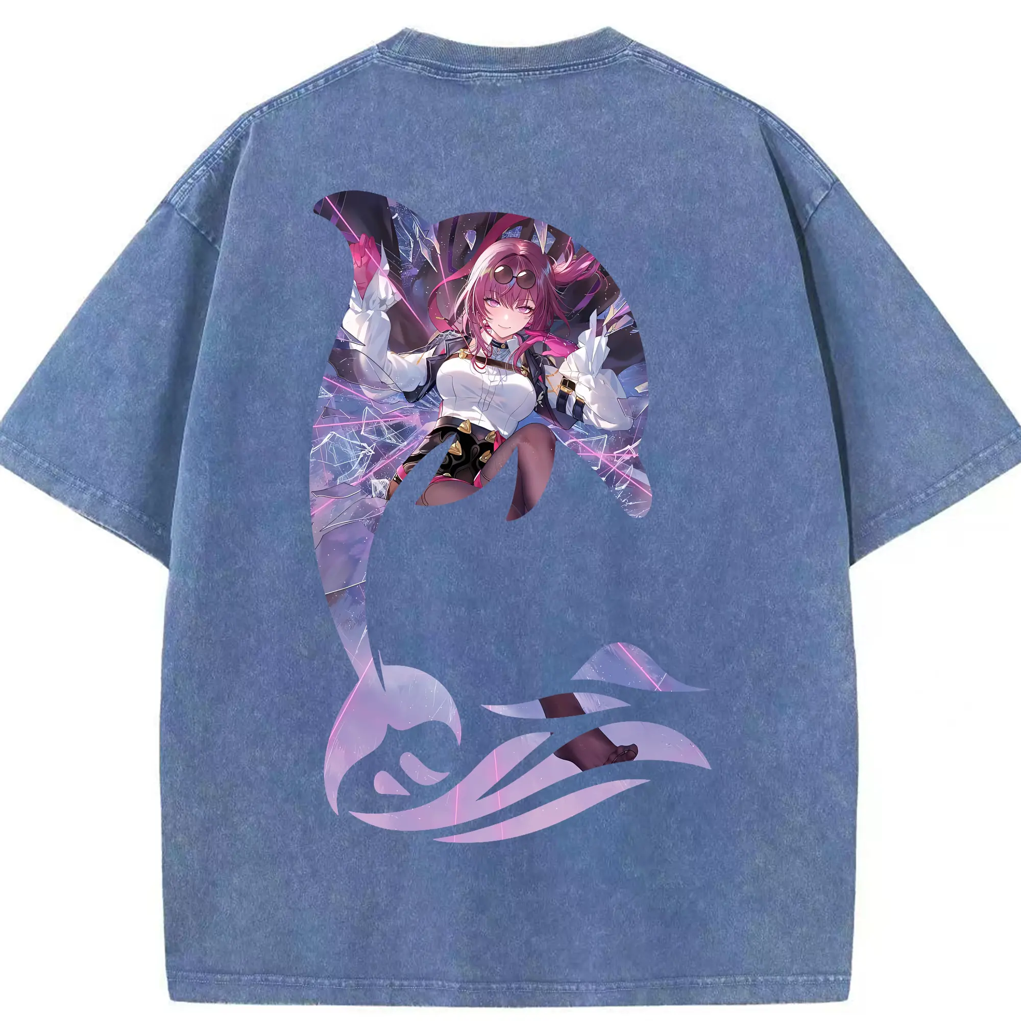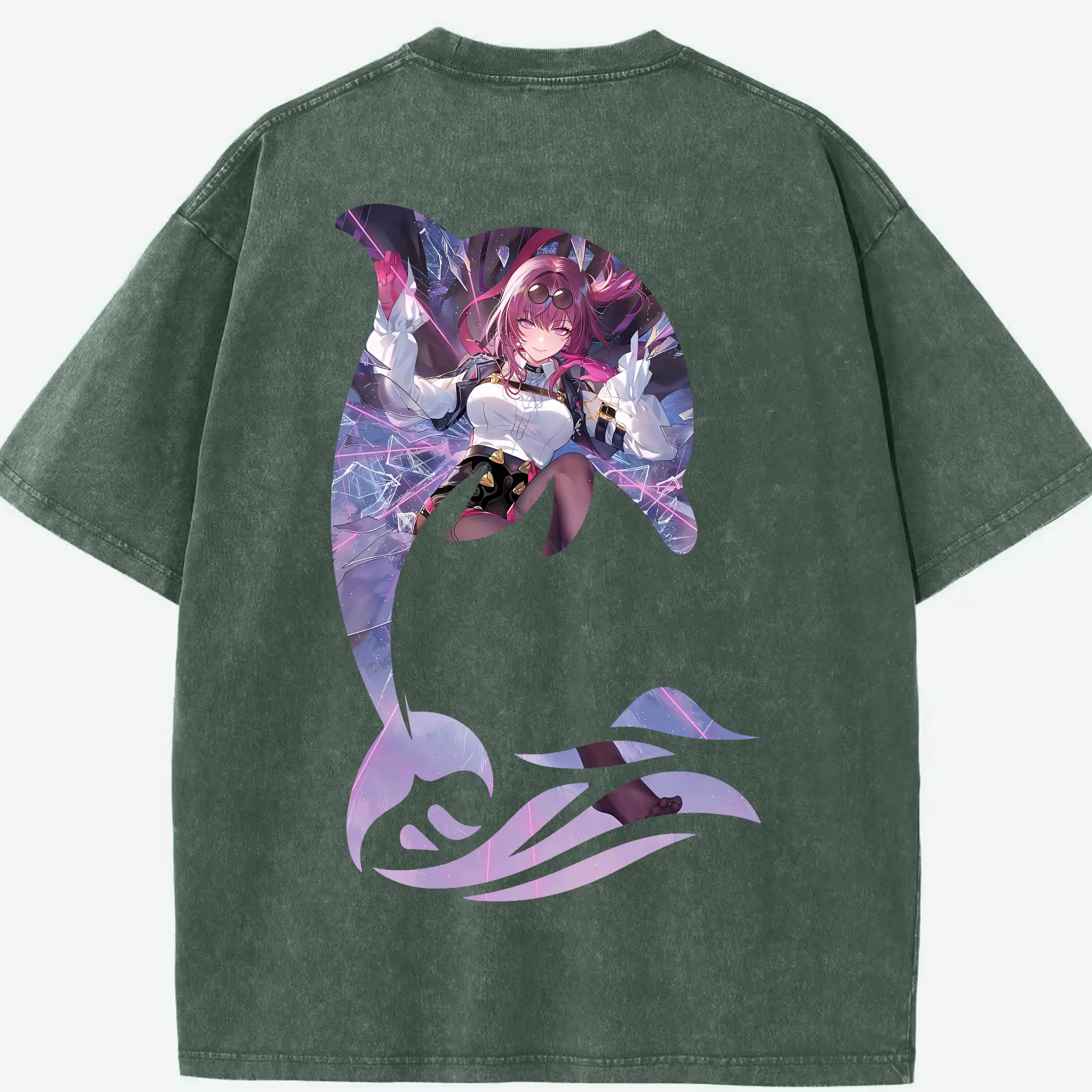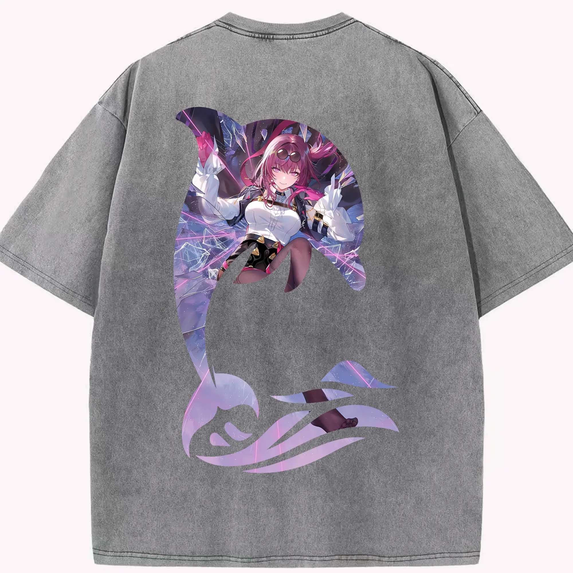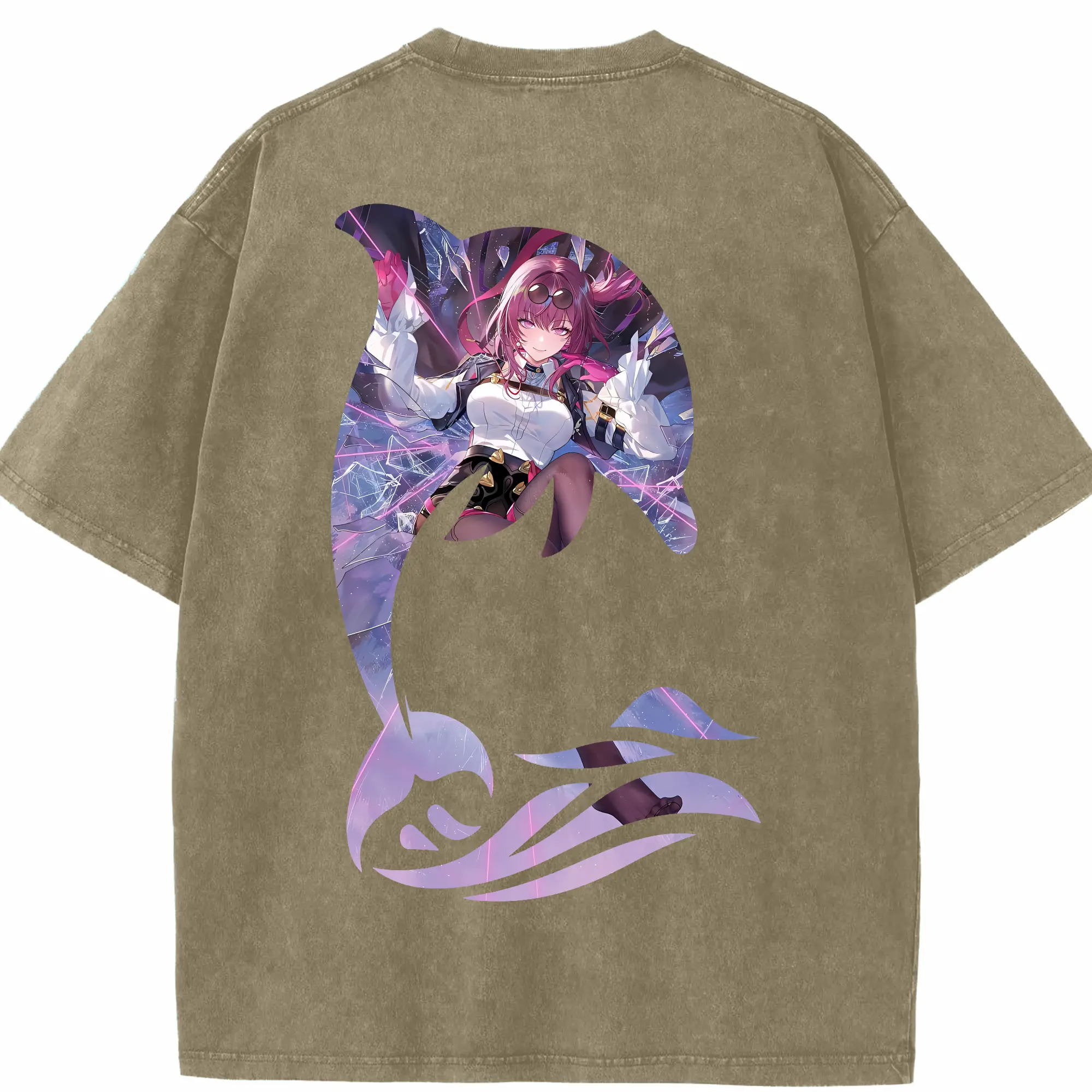崩壊:スターレイル グッズ カフカ - 綿100% ヴィンテージ風 半袖Tシャツ ・ フロントプリント ・ 柔らか肌触り ・ 通気性 快適 ・ スポーツ カジュアル 外出用