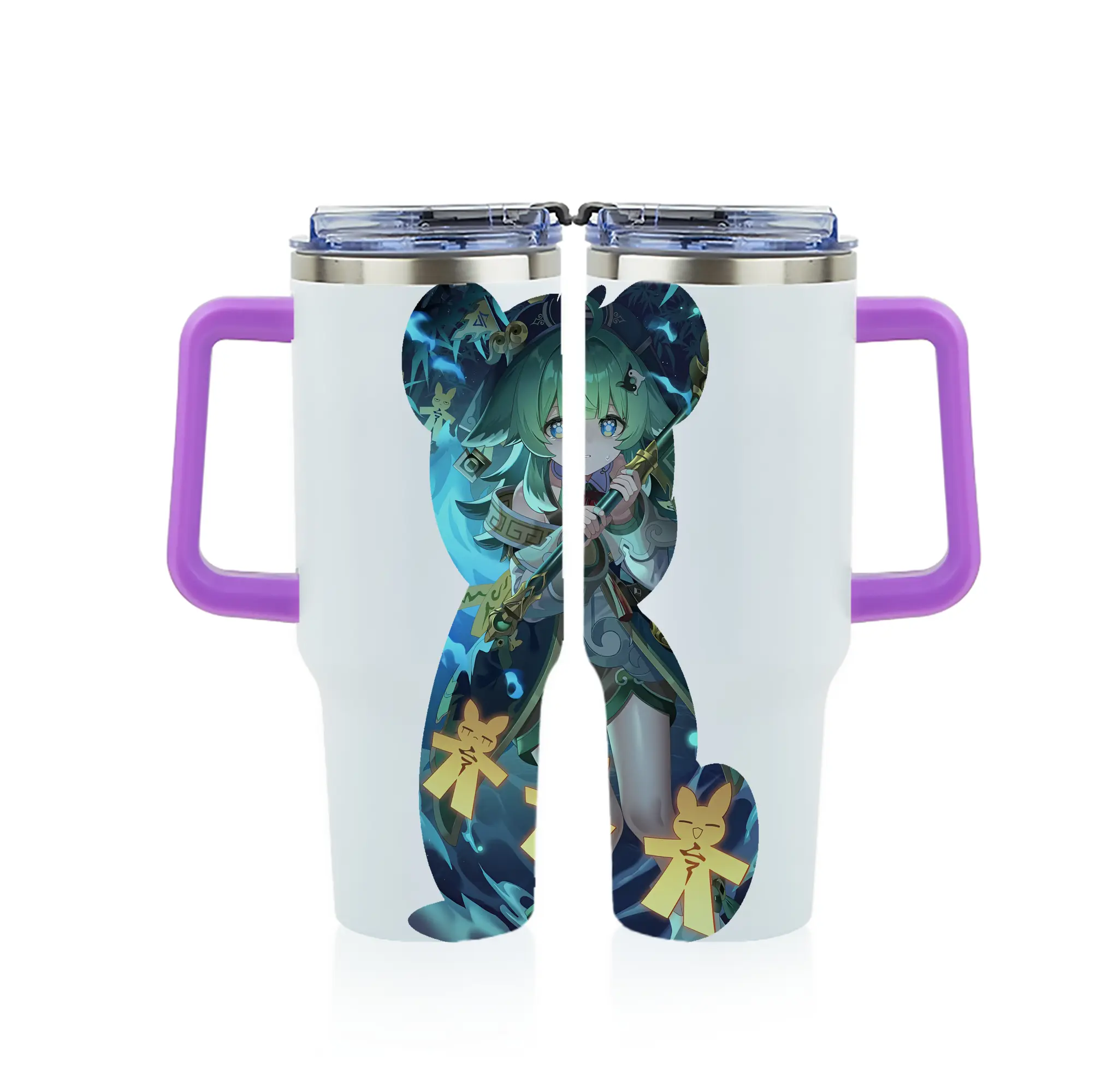 崩壊:スターレイル グッズ フォフォ - 1200mL フルプリント車用タンブラー ・ 304ステンレス 内側 ・ 201ステンレス 外側 ・ 保温 保冷 ・ 通勤 ドライブ アウトドア用