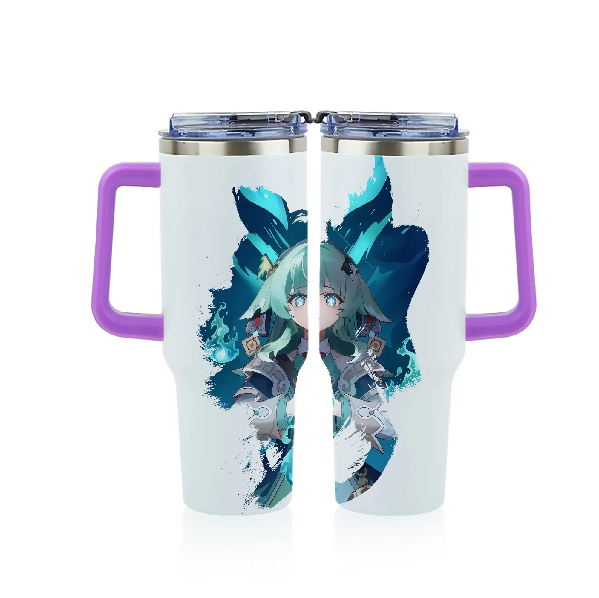 崩壊:スターレイル グッズ フォフォ - 1200mL フルプリント車用タンブラー ・ 304ステンレス 内側 ・ 201ステンレス 外側 ・ 保温 保冷 ・ 通勤 ドライブ アウトドア用