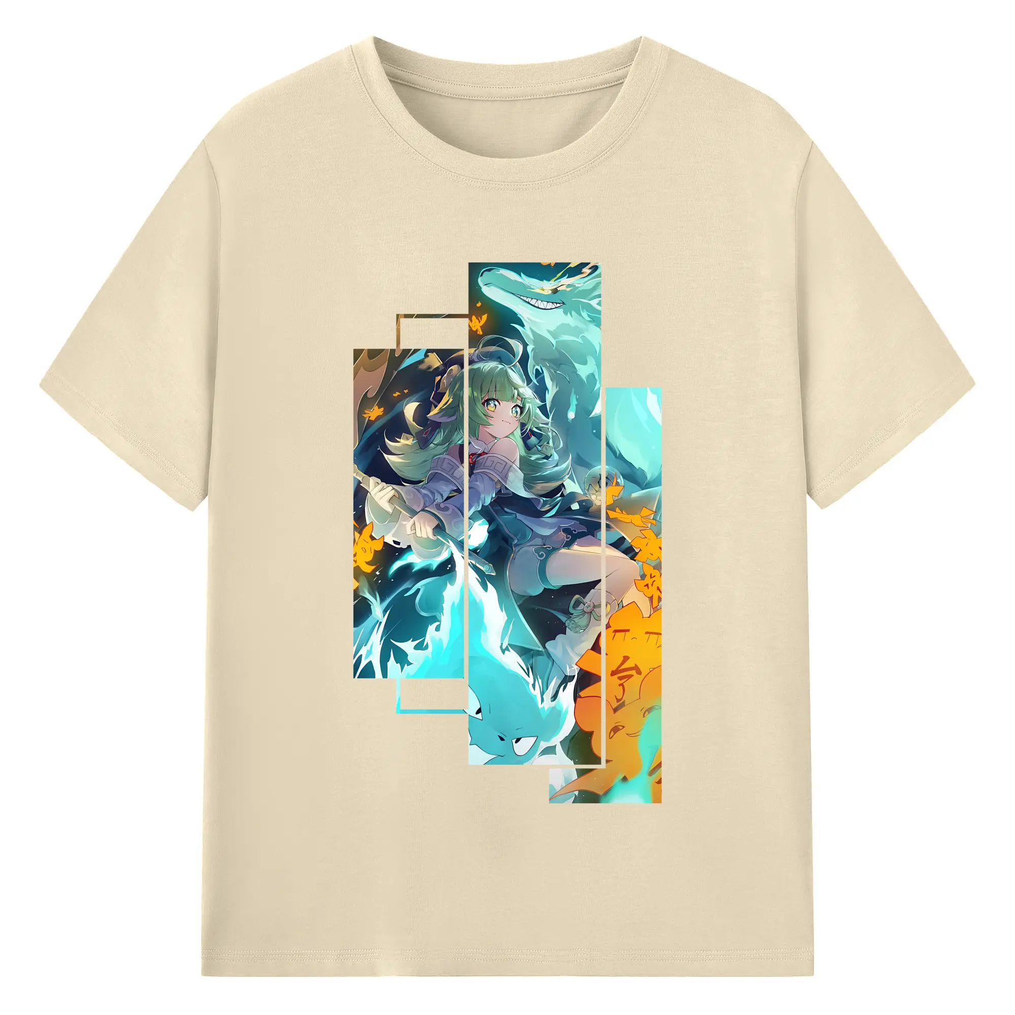 原 神 グッズ フリンズ - 綿100% 半袖Tシャツ ・ フロントプリント ・ 快適 通気性 ・ 日常使い 散歩 スポーツ用