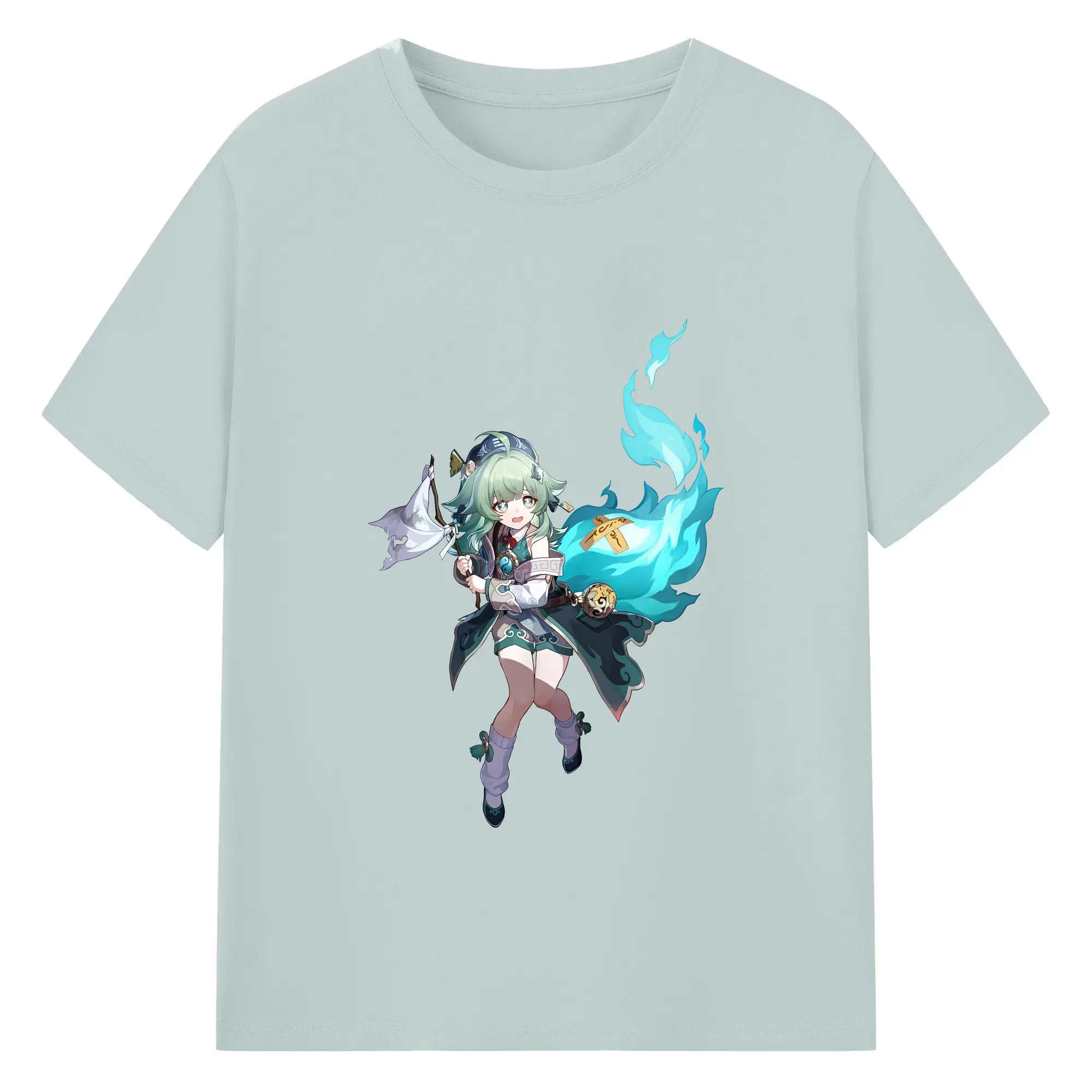 崩壊:スターレイル グッズ フォフォ - 綿100% 半袖Tシャツ ・ バックプリント ・ 快適 通気性 ・ 日常使い 散歩 スポーツ用
