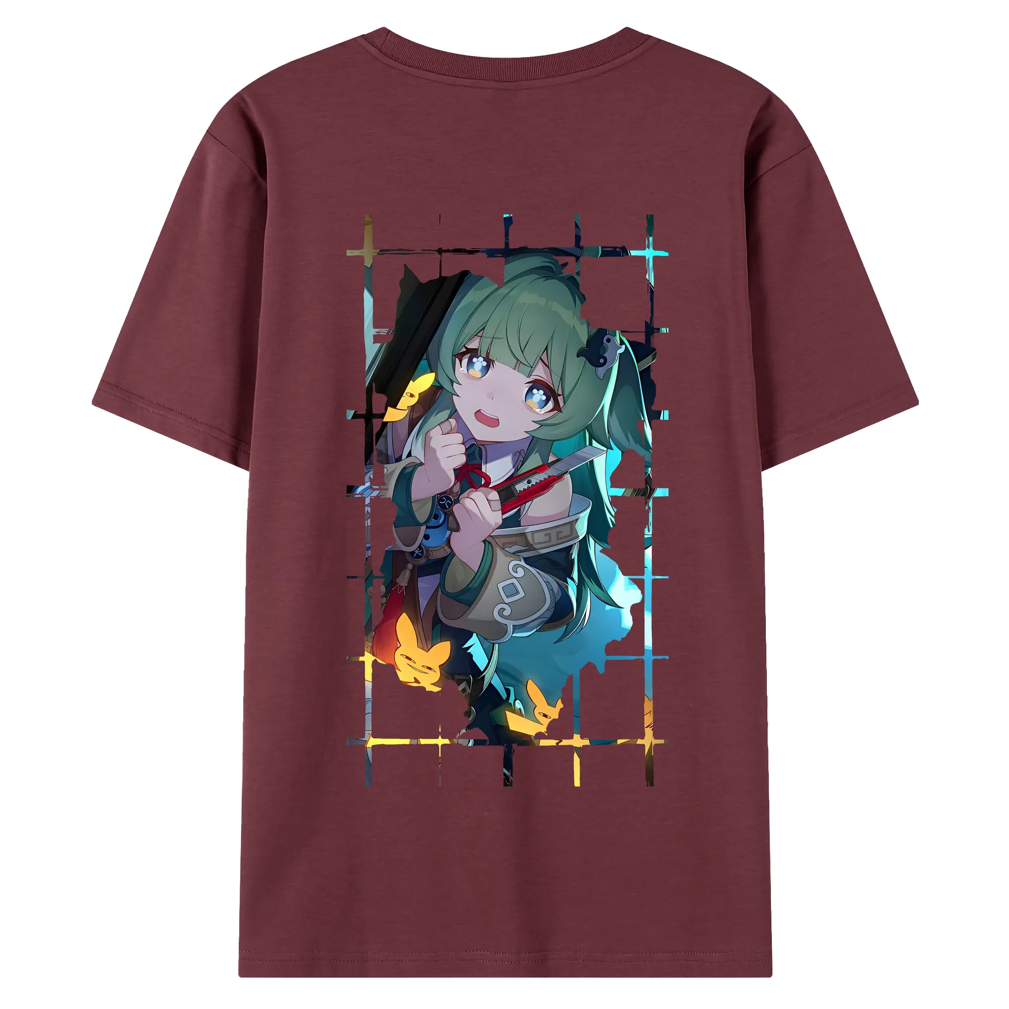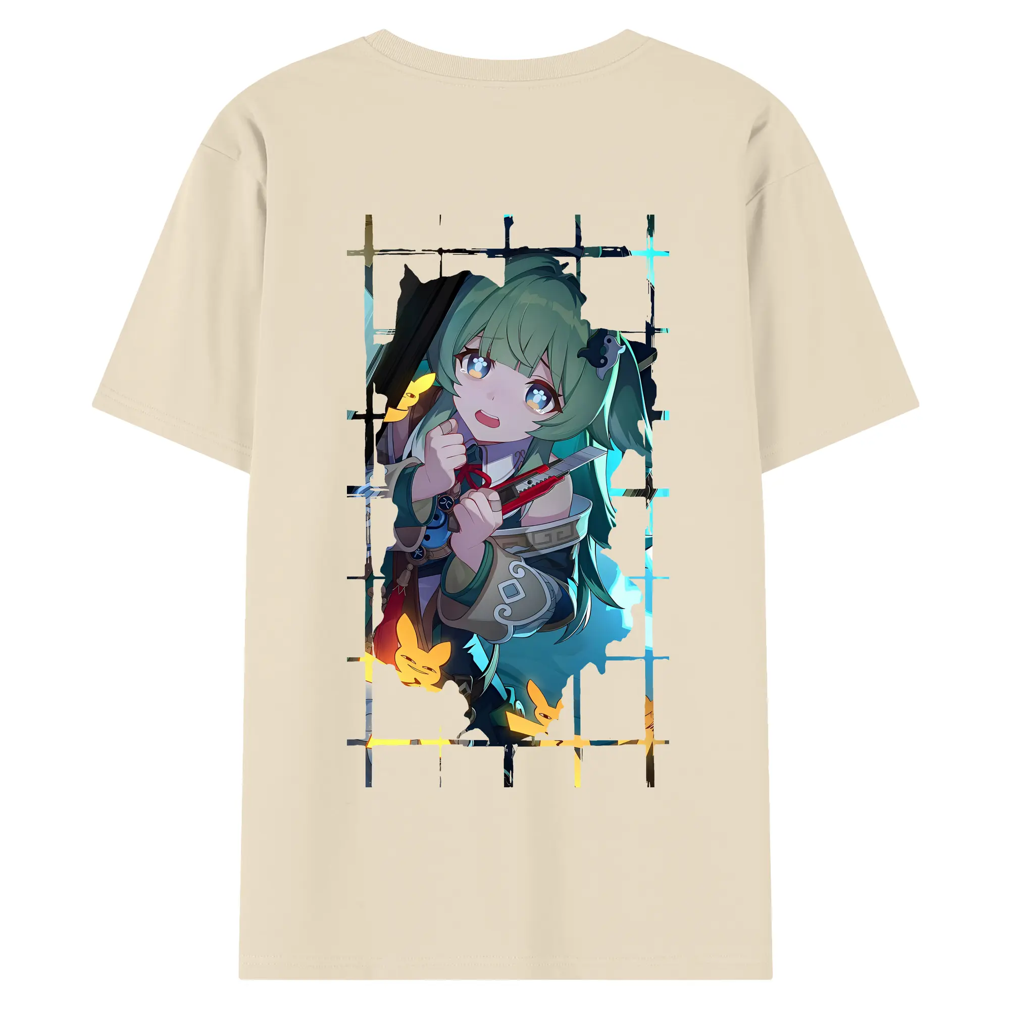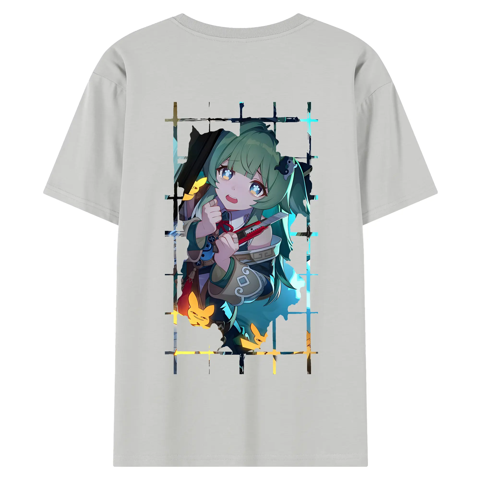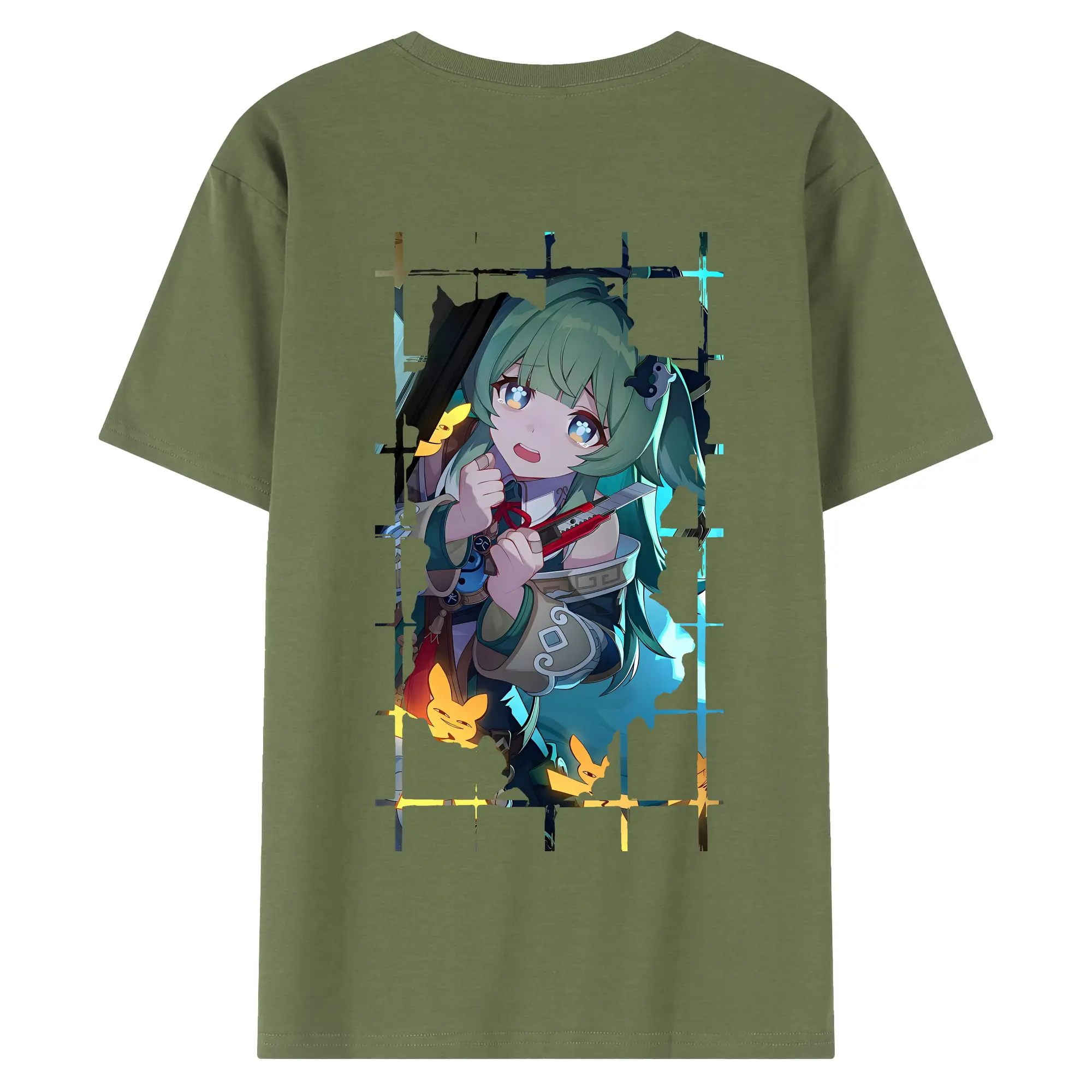 崩壊:スターレイル グッズ フォフォ - 綿100% ヴィンテージ風 半袖Tシャツ ・ 背面プリント ・ 柔らか肌触り ・ 通気性 快適 ・ スポーツ カジュアル 外出用