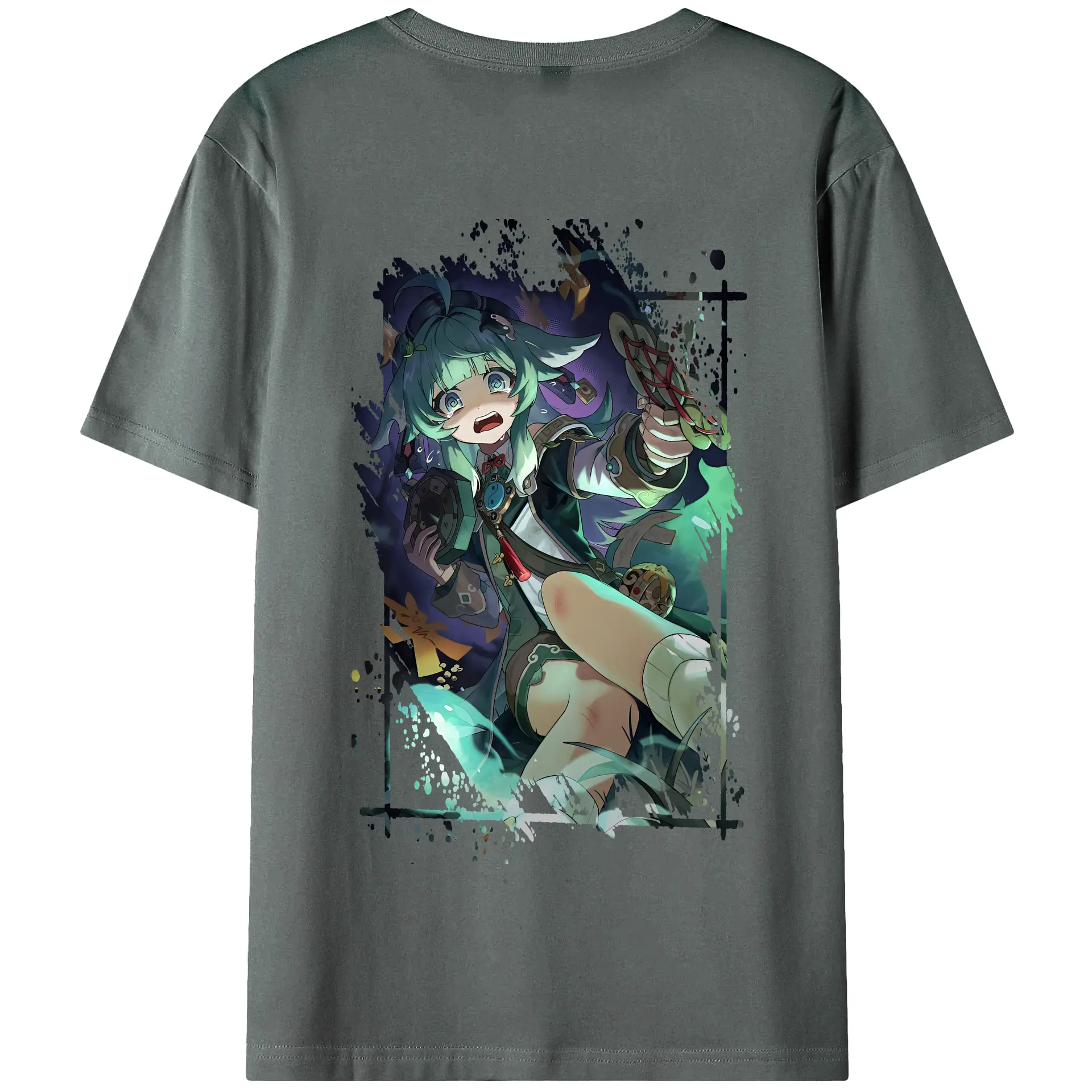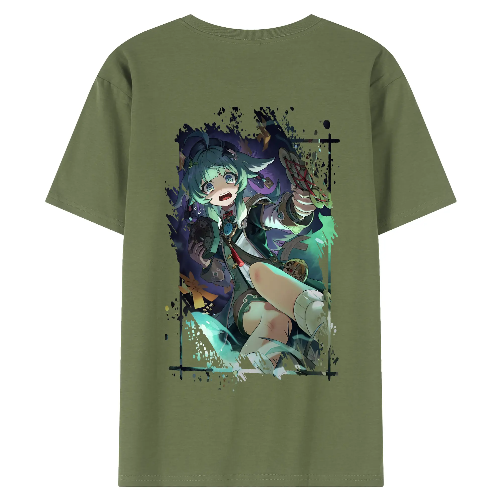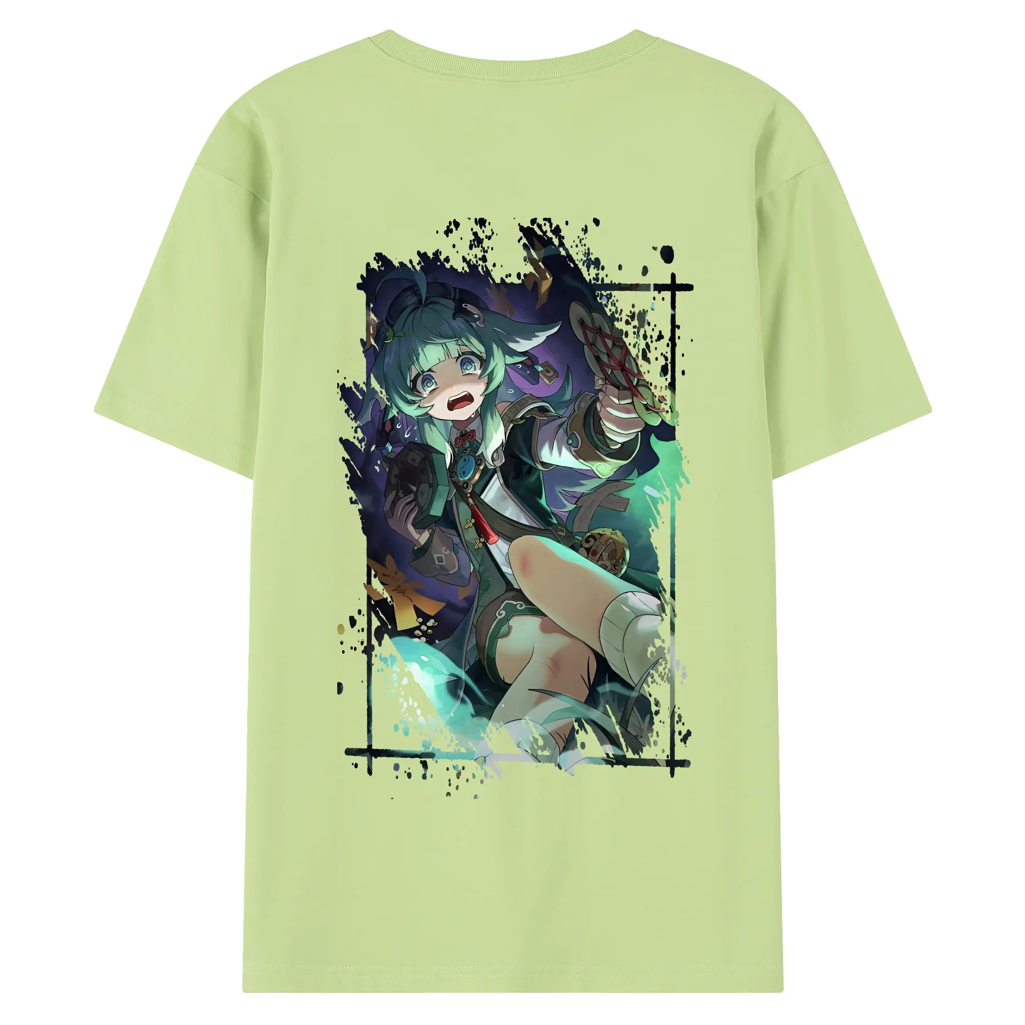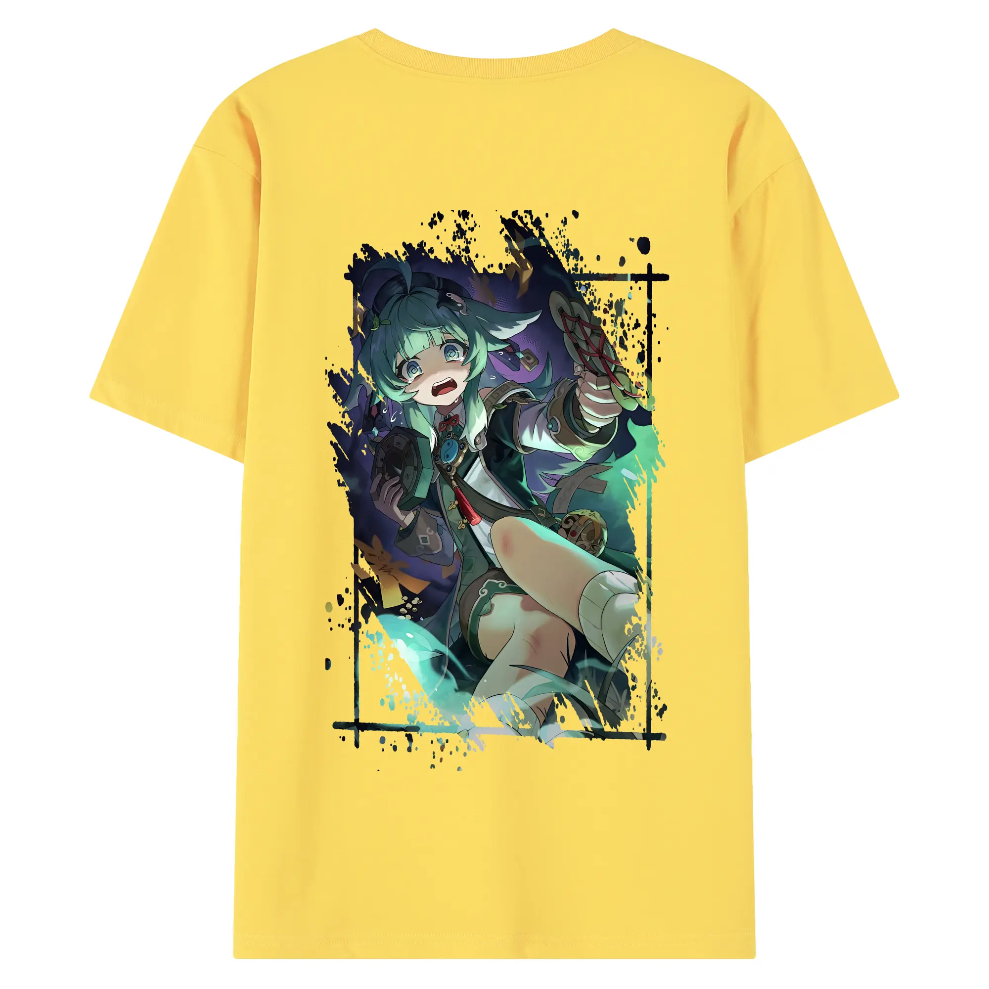 崩壊:スターレイル グッズ フォフォ - 綿100% ヴィンテージ風 半袖Tシャツ ・ 背面プリント ・ 柔らか肌触り ・ 通気性 快適 ・ スポーツ カジュアル 外出用