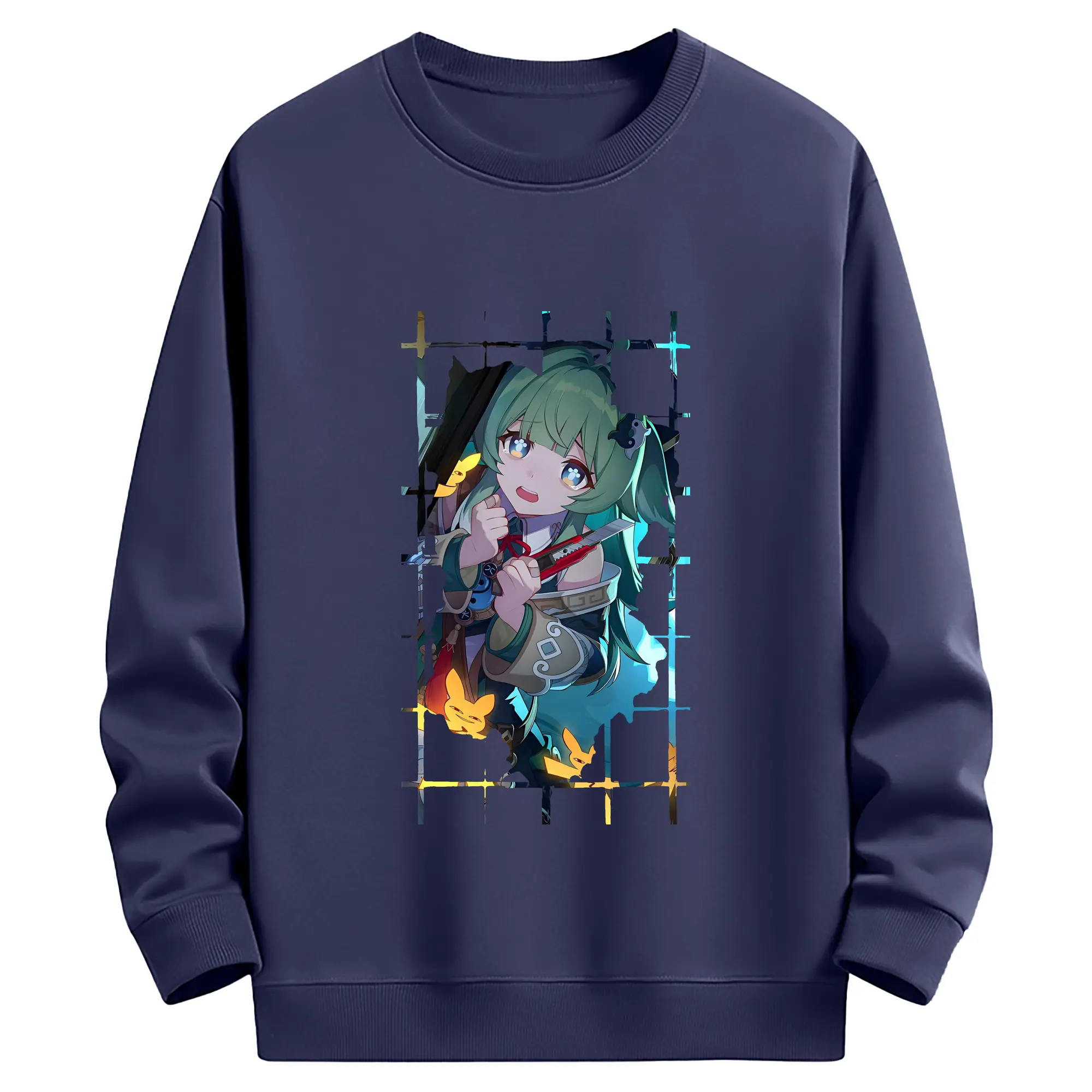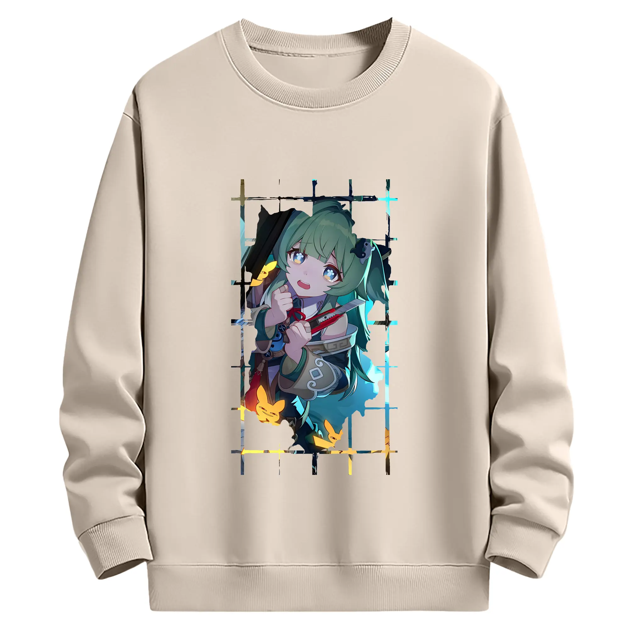崩壊:スターレイル グッズ フォフォ - 薄手 クルーネック スウェット 裏毛260g · ポリエステル 春秋向け カジュアル 男女兼用 · トレーナー デイリー スポーツ 散歩に最適