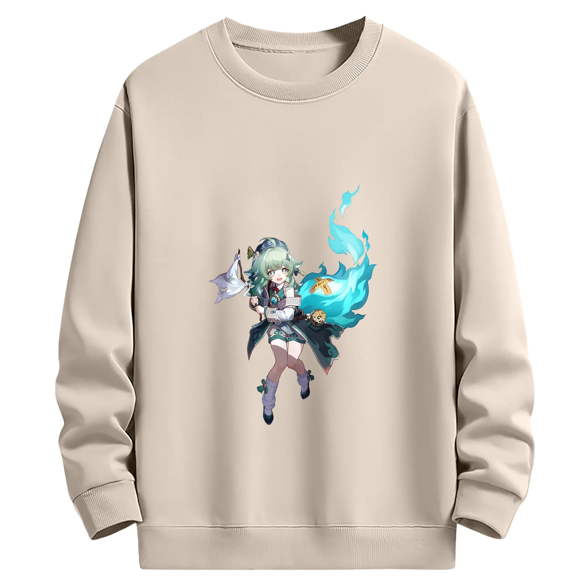 崩壊:スターレイル グッズ フォフォ - 薄手 クルーネック スウェット 裏毛260g · ポリエステル 春秋向け カジュアル 男女兼用 · トレーナー デイリー スポーツ 散歩に最適