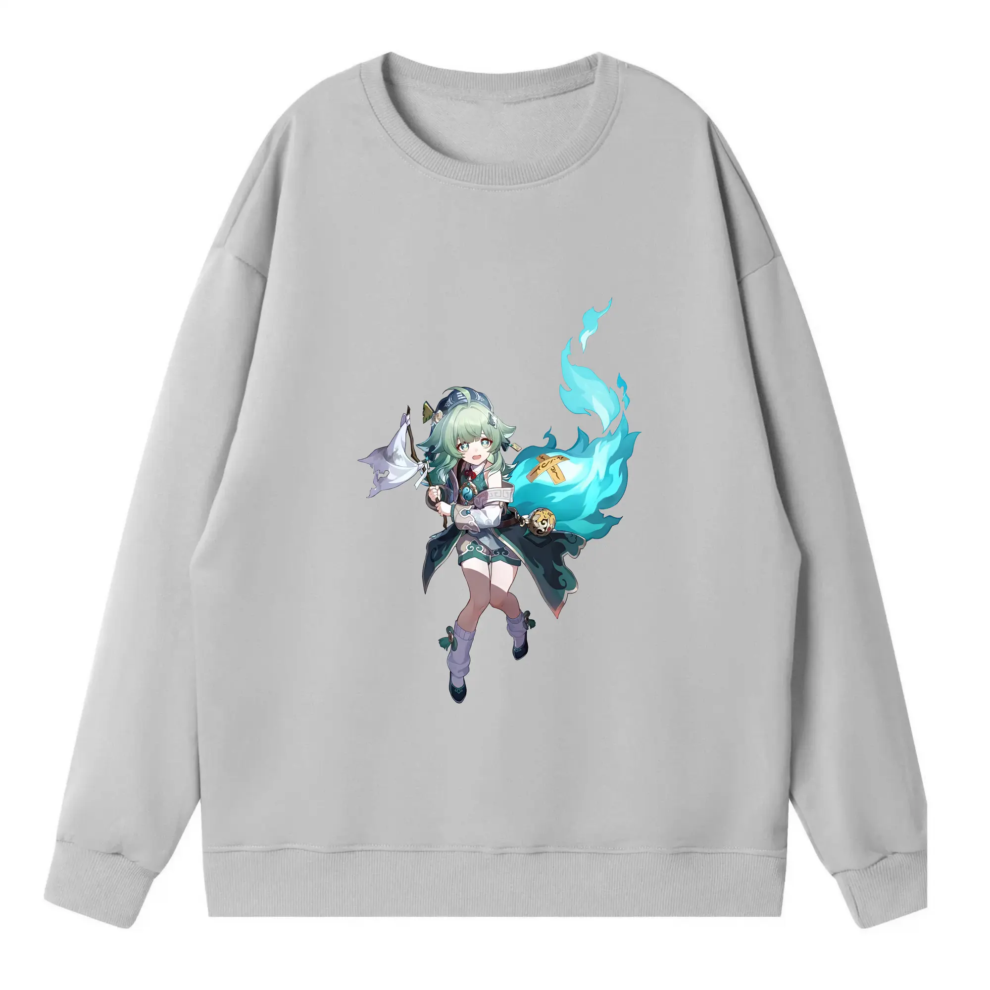 鳴潮 グッズ ザンニー - 薄手 クルーネック スウェット 裏毛260g · ポリエステル 春秋向け カジュアル 男女兼用 · トレーナー デイリー スポーツ 散歩に最適