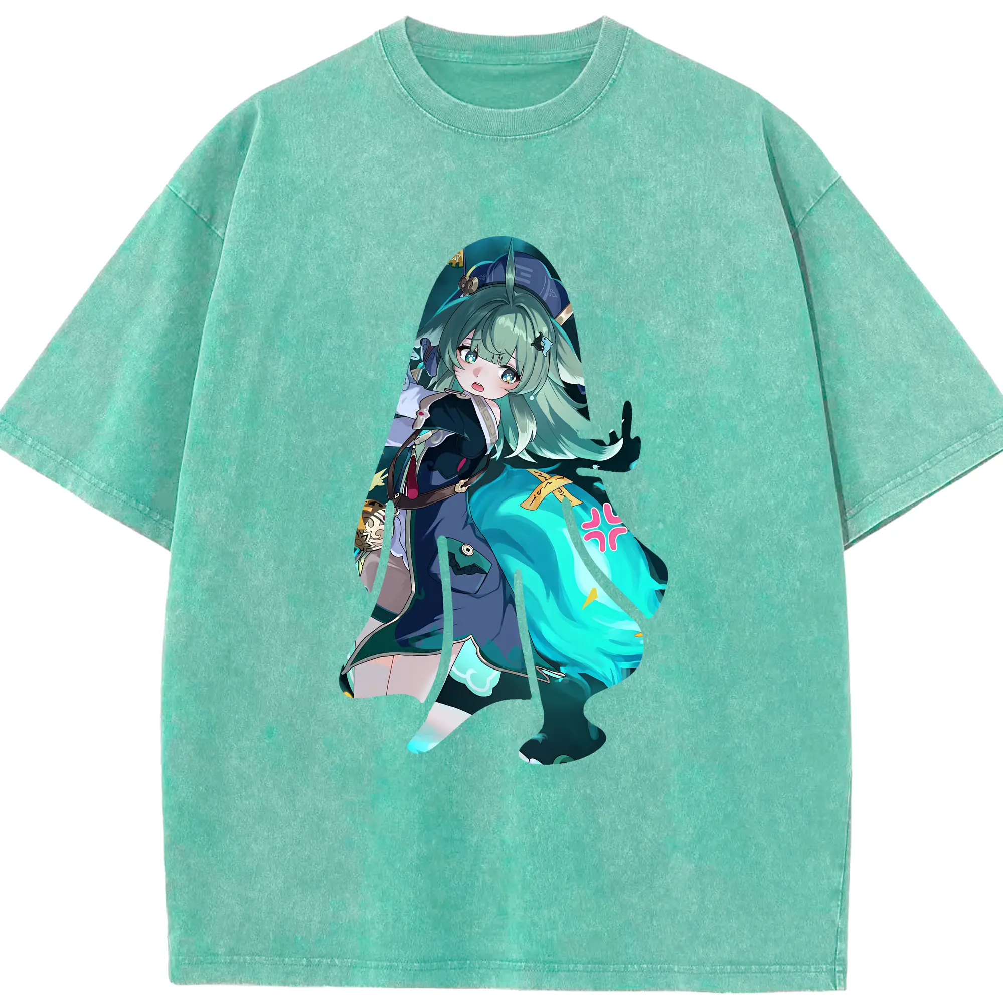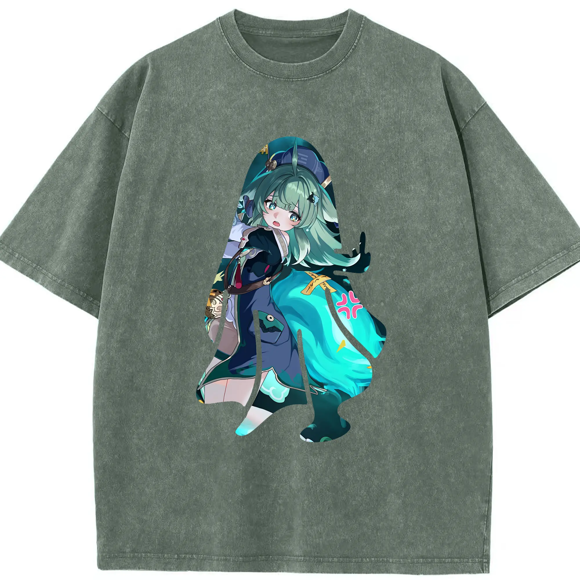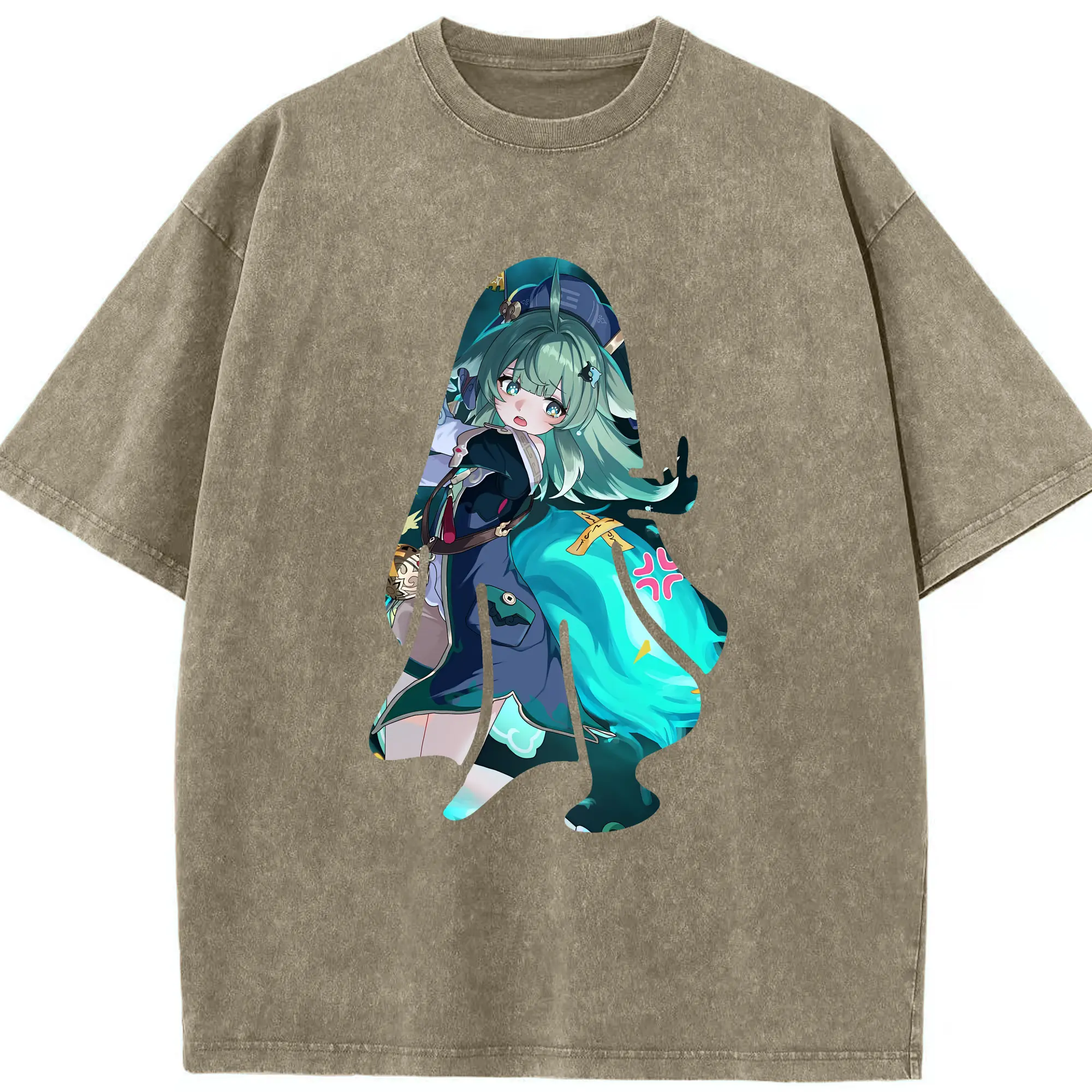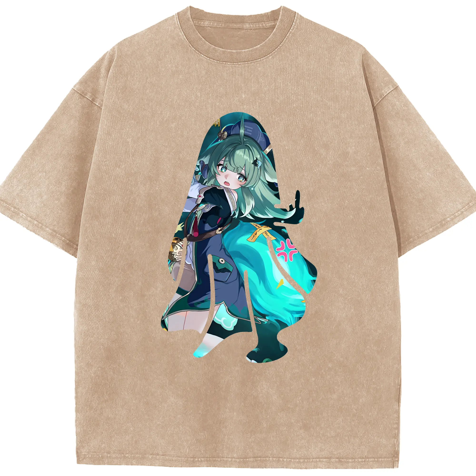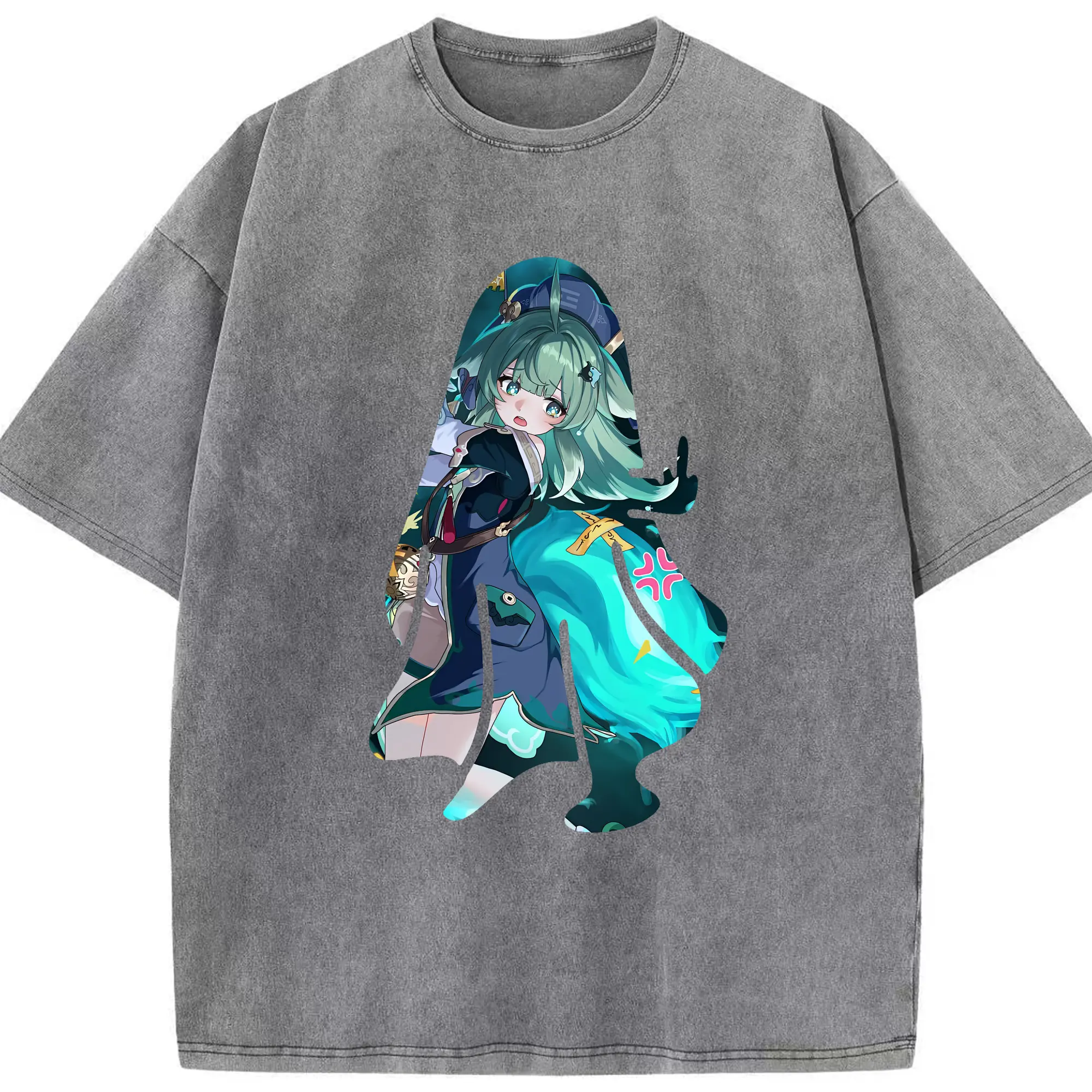 鳴潮 グッズ シャコンヌ - 綿100% ヴィンテージ風 半袖Tシャツ ・ フロントプリント ・ 柔らか肌触り ・ 通気性 快適 ・ スポーツ カジュアル 外出用