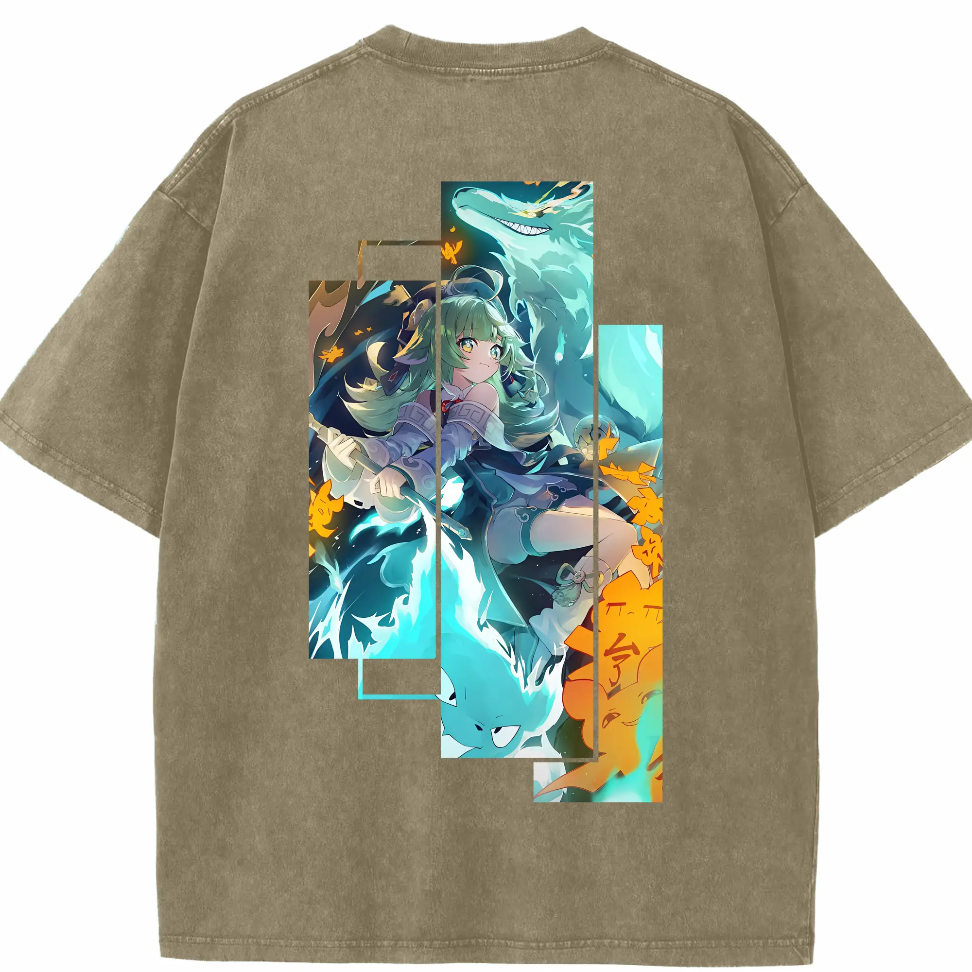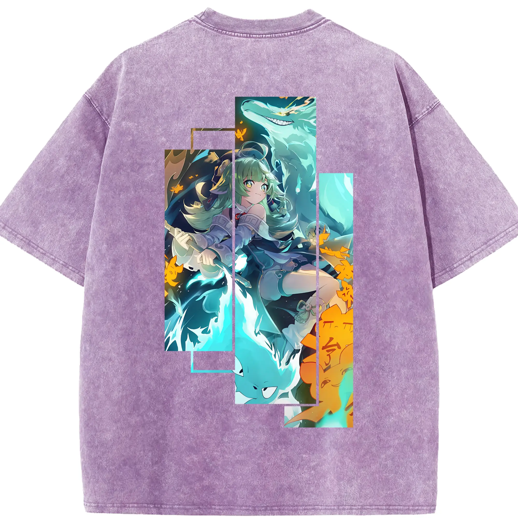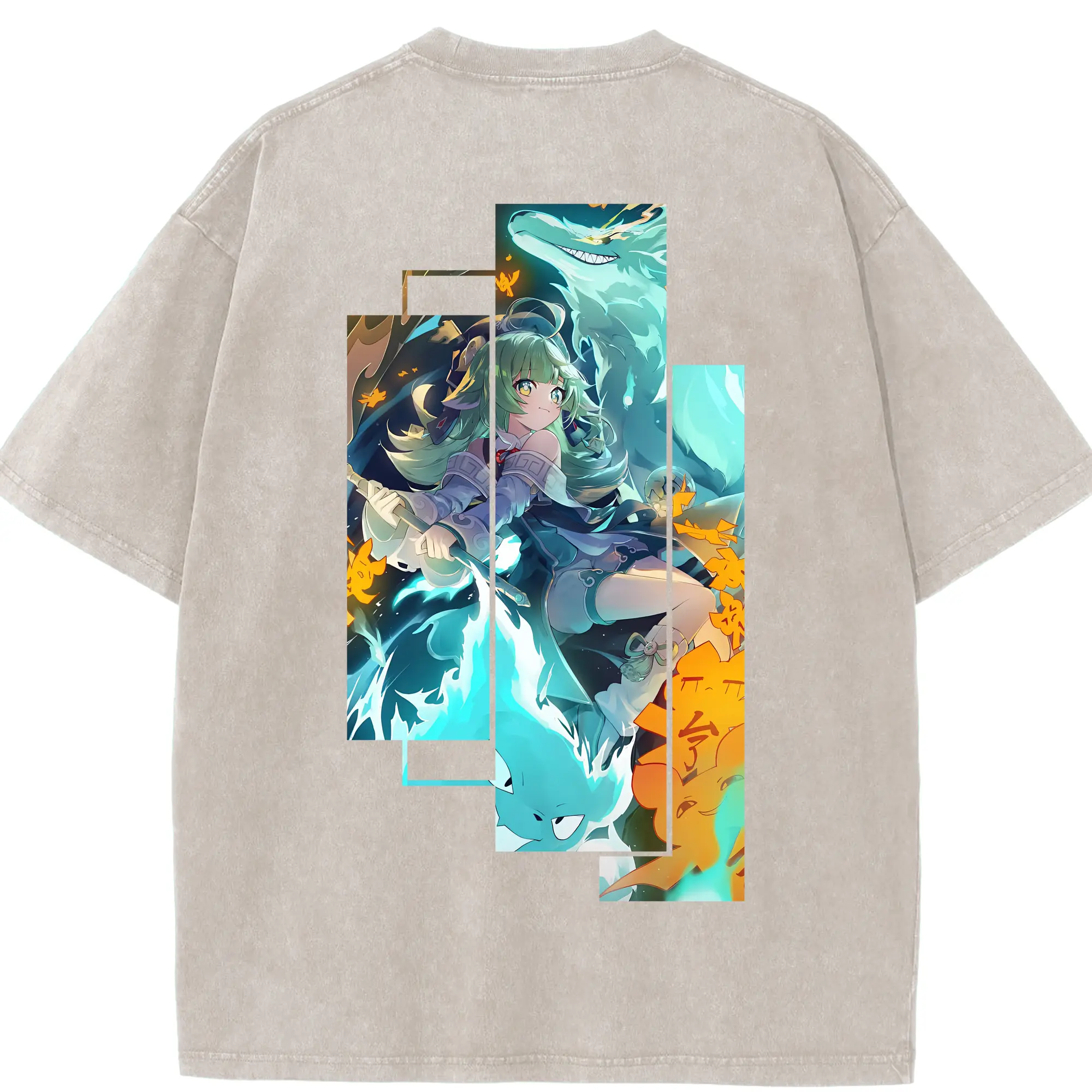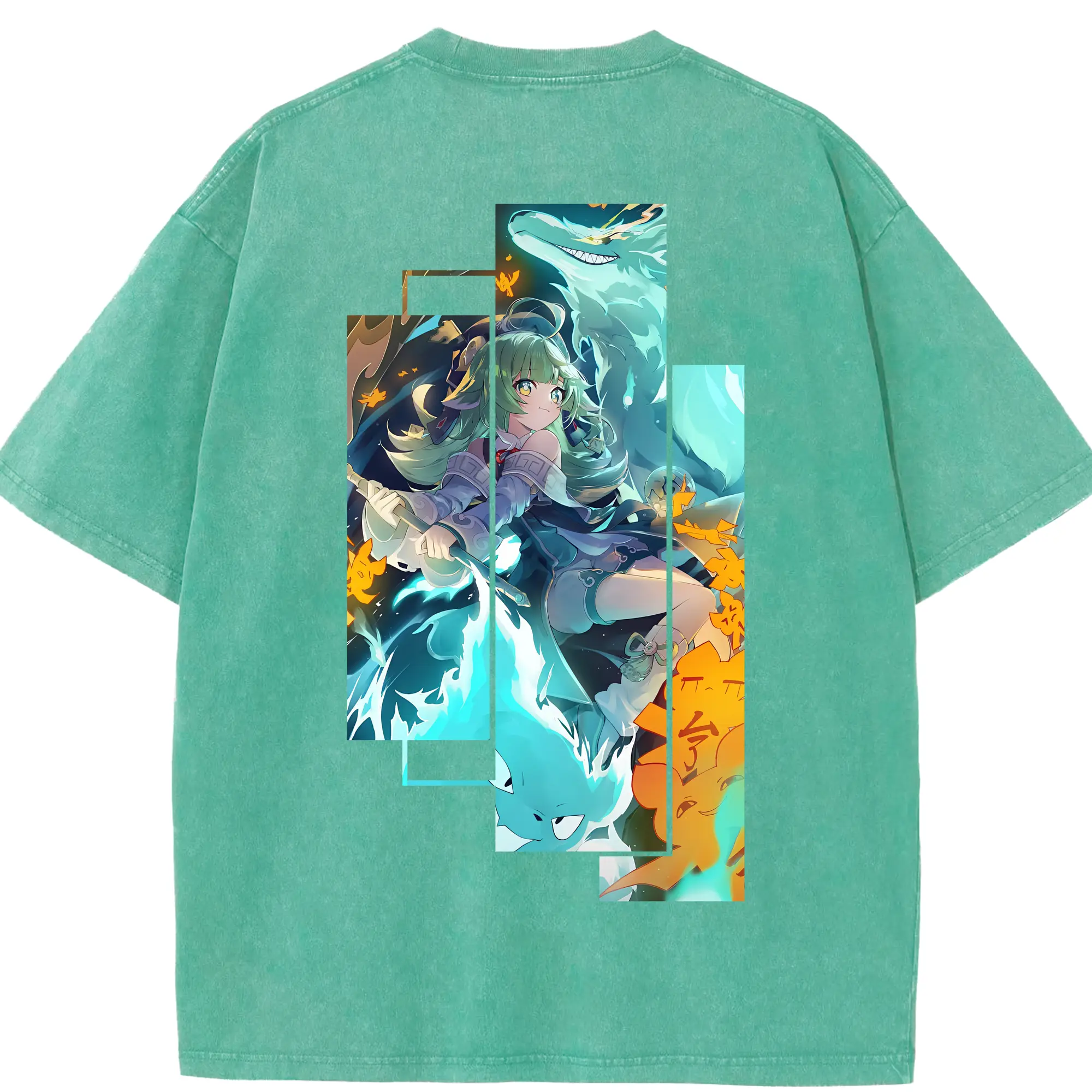 原 神 グッズ フリンズ - 綿100% ヴィンテージ風 半袖Tシャツ ・ 背面プリント ・ 柔らか肌触り ・ 通気性 快適 ・ スポーツ カジュアル 外出用
