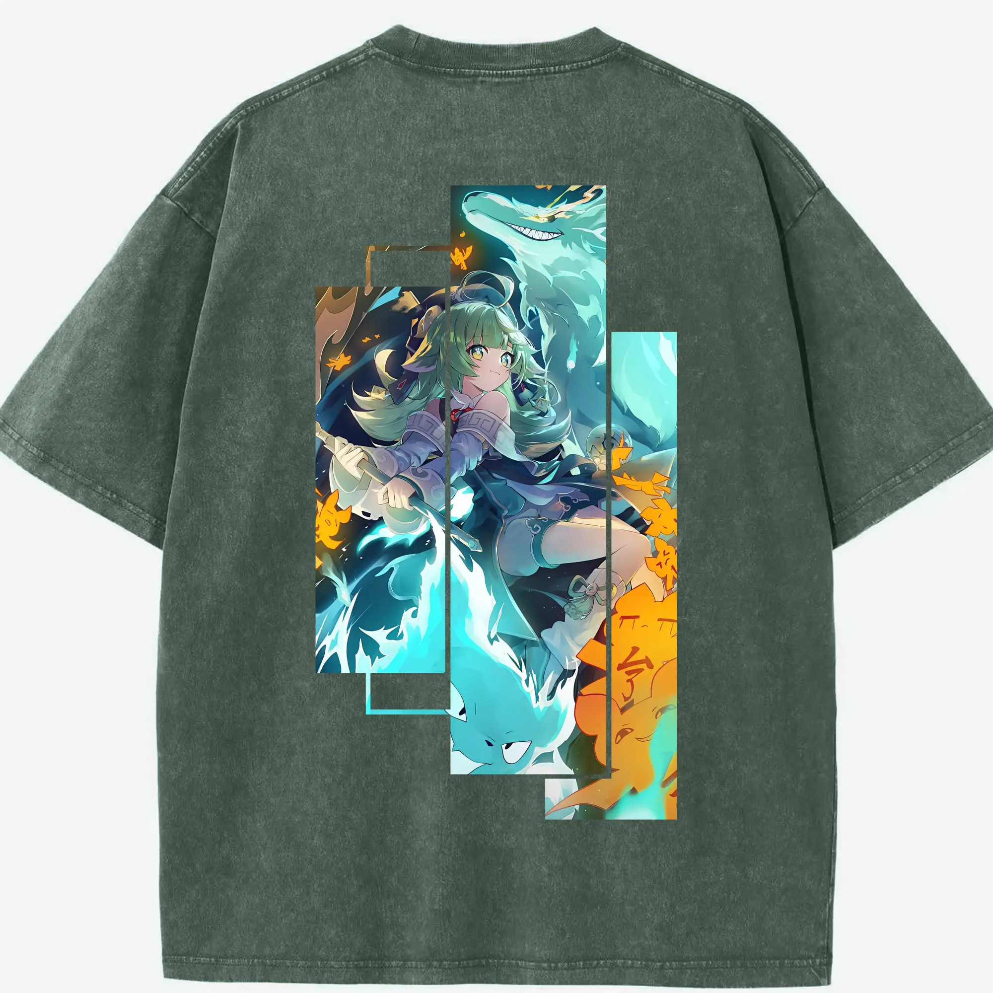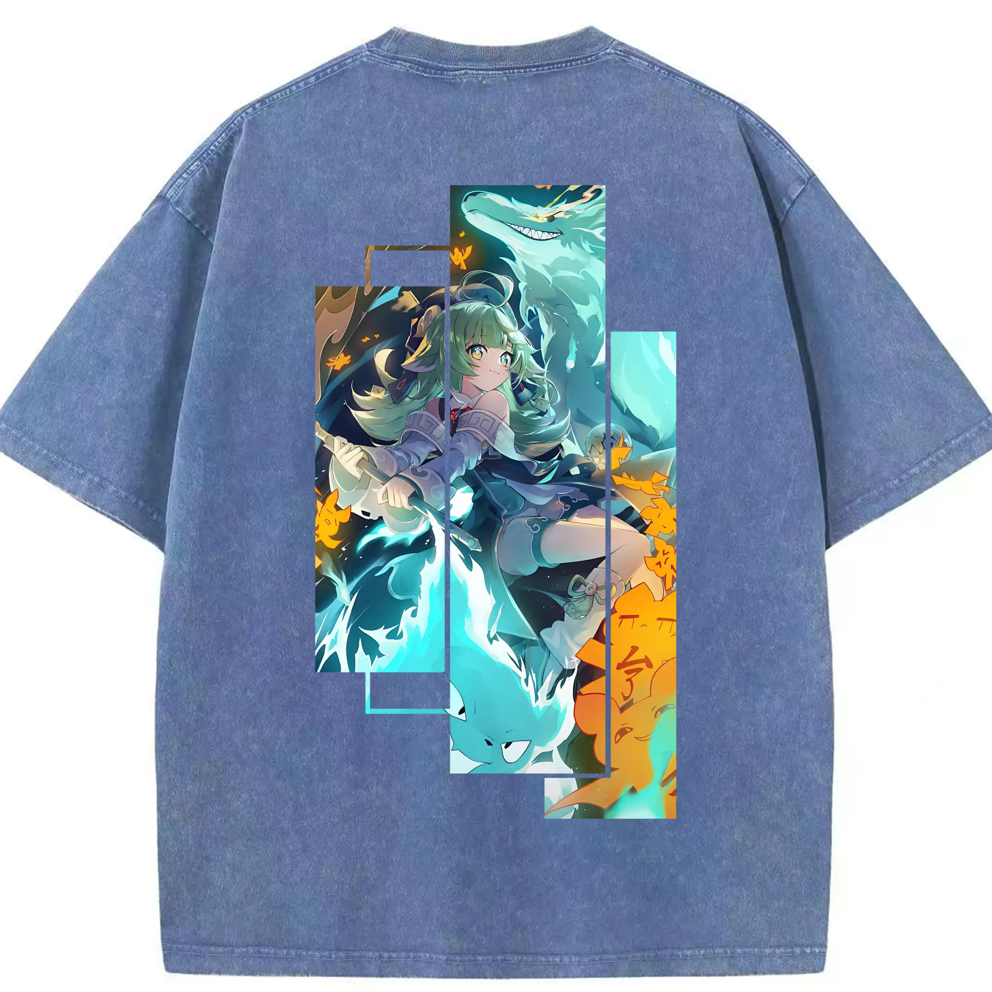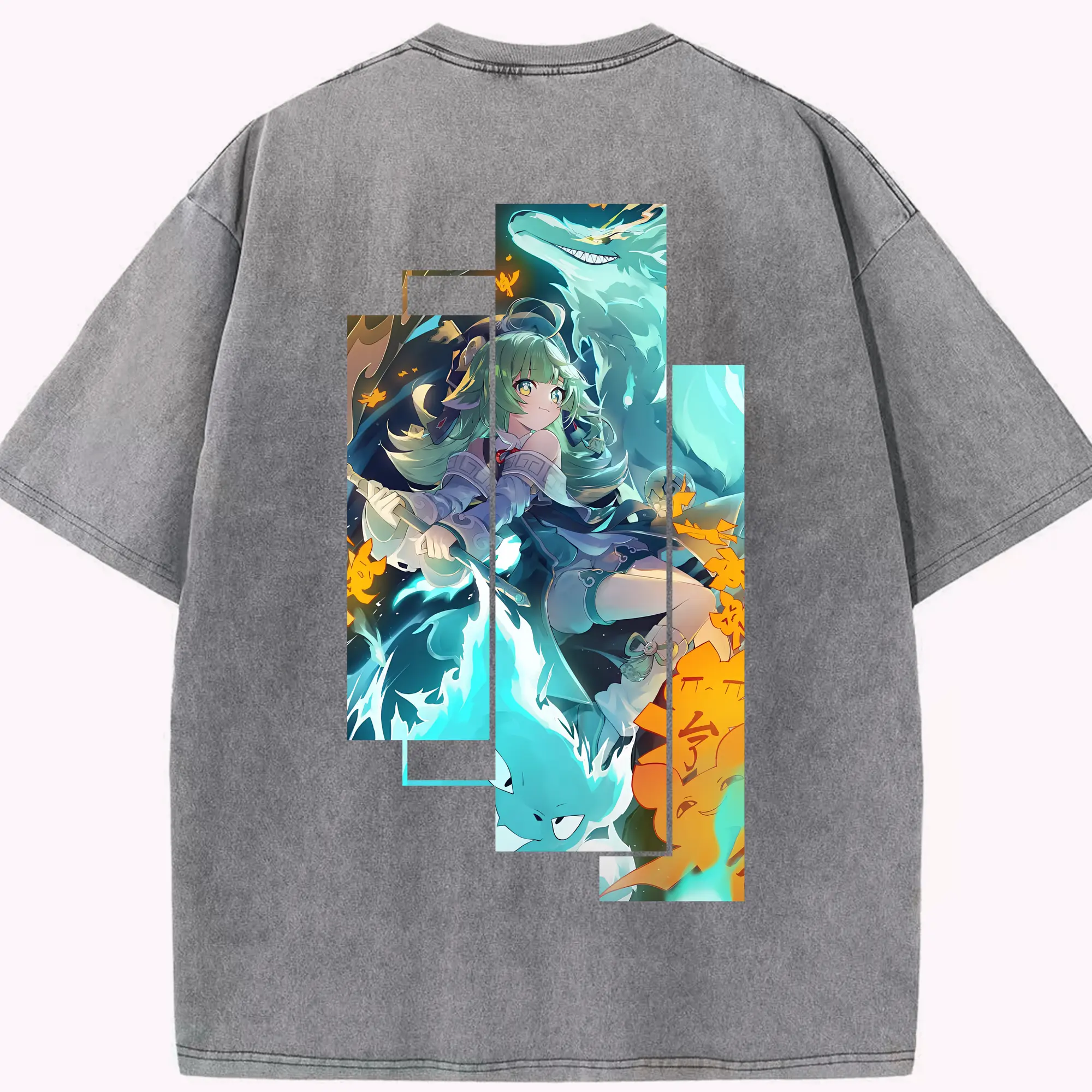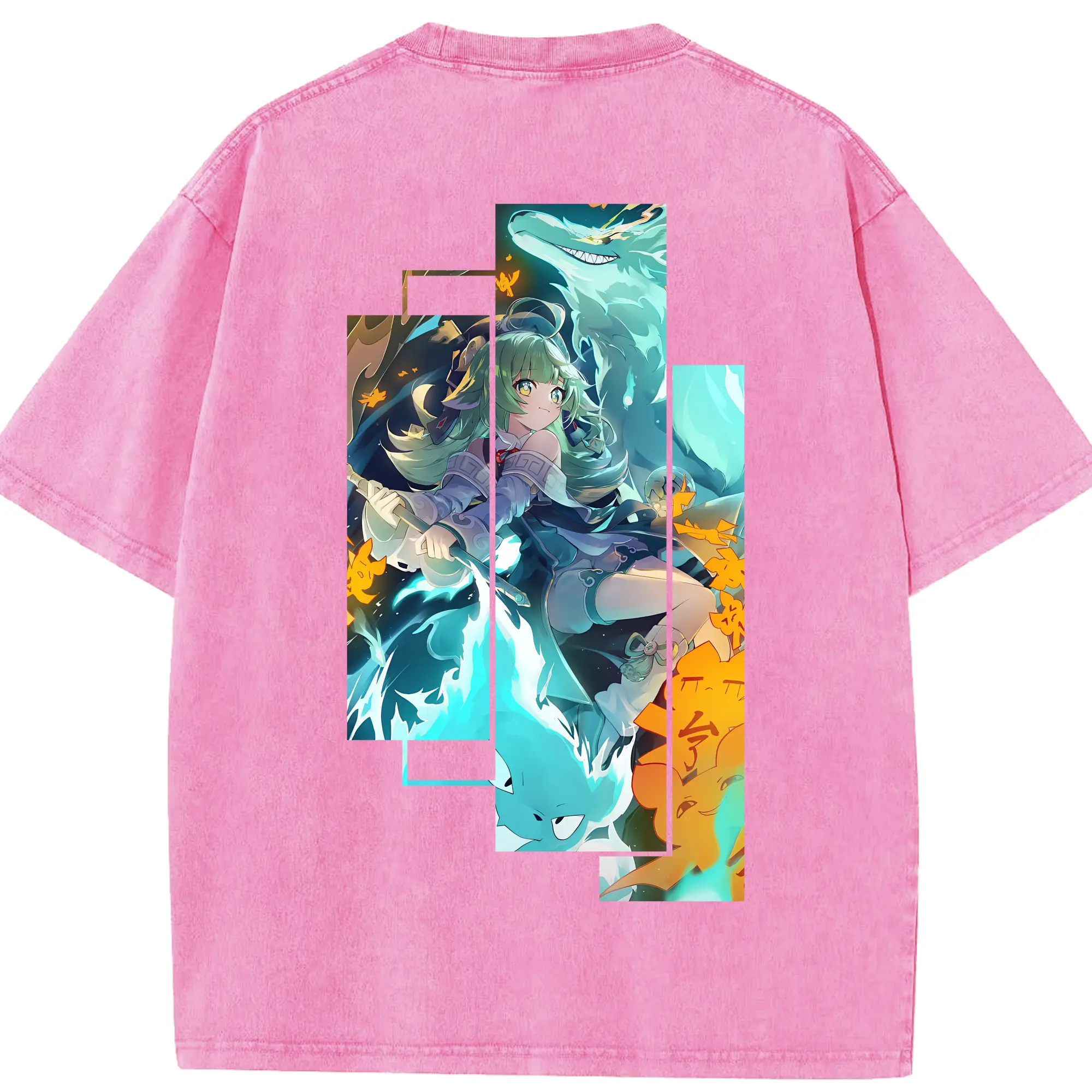 原 神 グッズ フリンズ - 綿100% ヴィンテージ風 半袖Tシャツ ・ 背面プリント ・ 柔らか肌触り ・ 通気性 快適 ・ スポーツ カジュアル 外出用