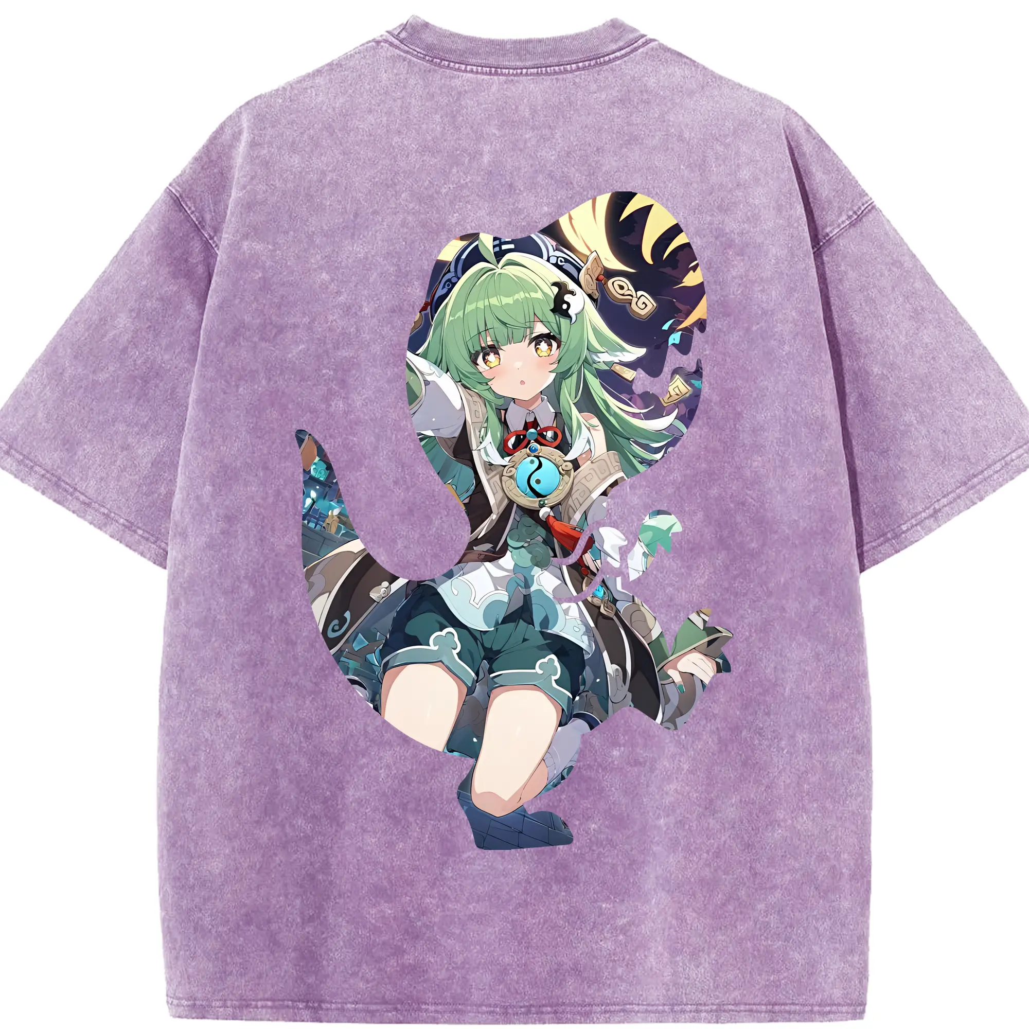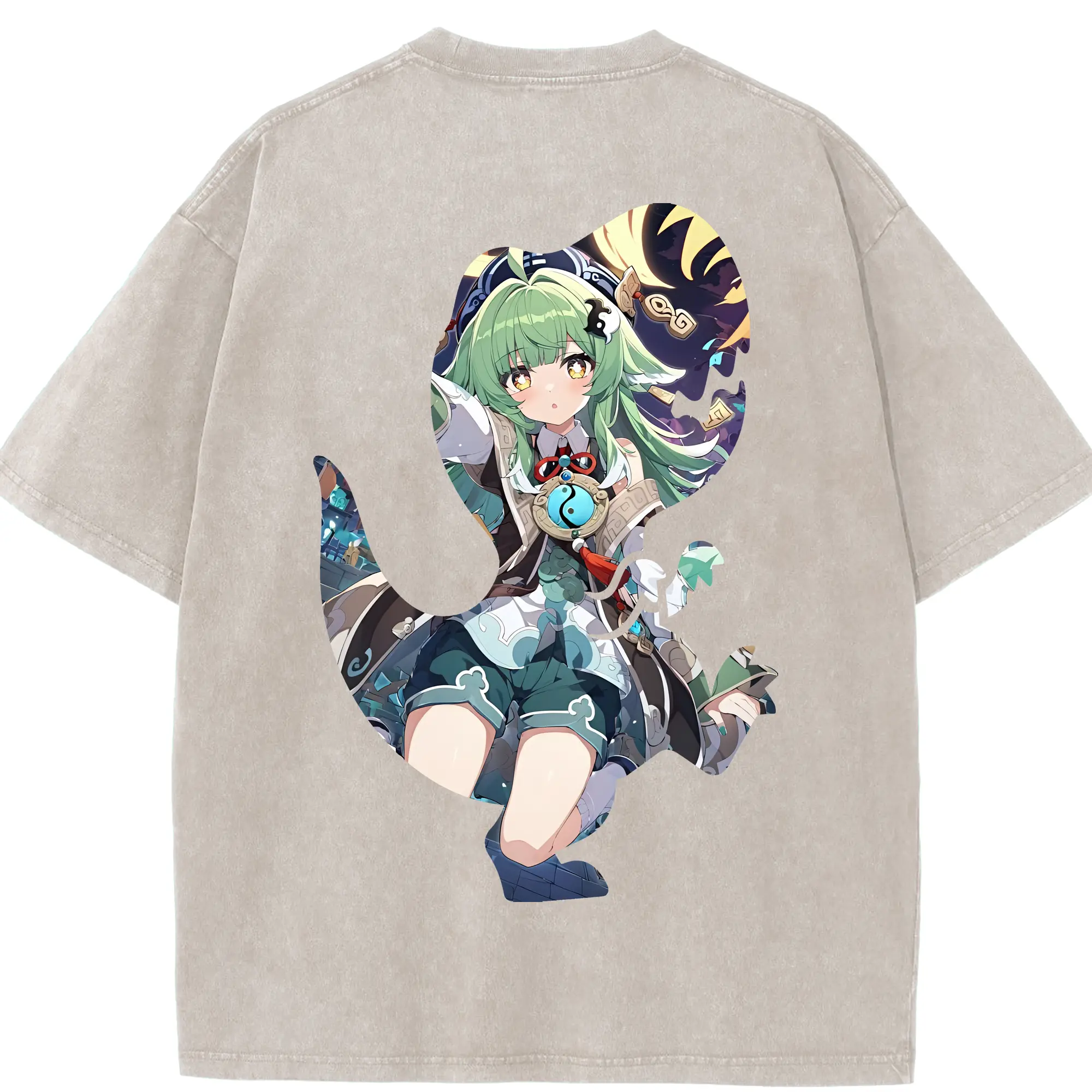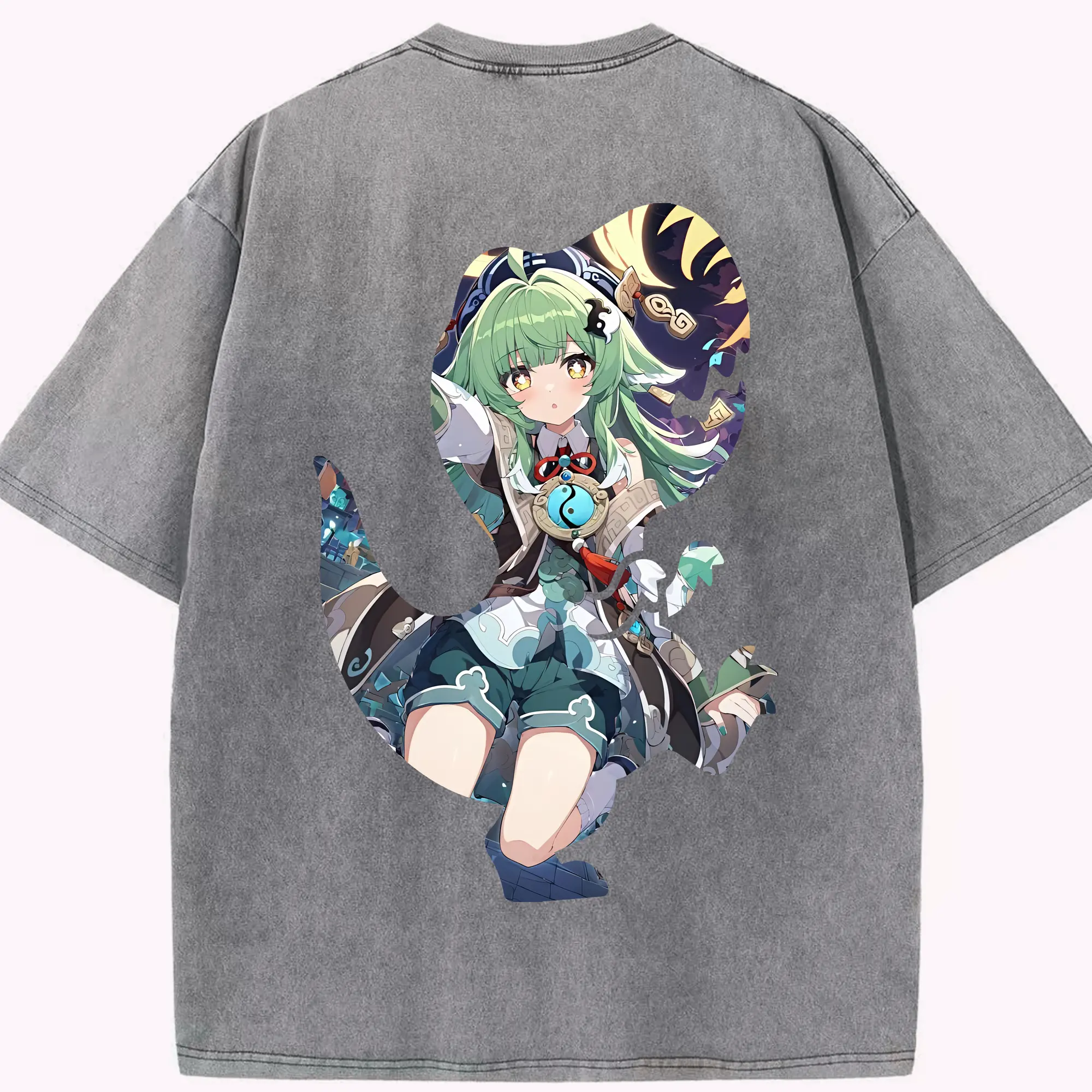 崩壊:スターレイル グッズ カフカ - 綿100% ヴィンテージ風 半袖Tシャツ ・ 背面プリント ・ 柔らか肌触り ・ 通気性 快適 ・ スポーツ カジュアル 外出用