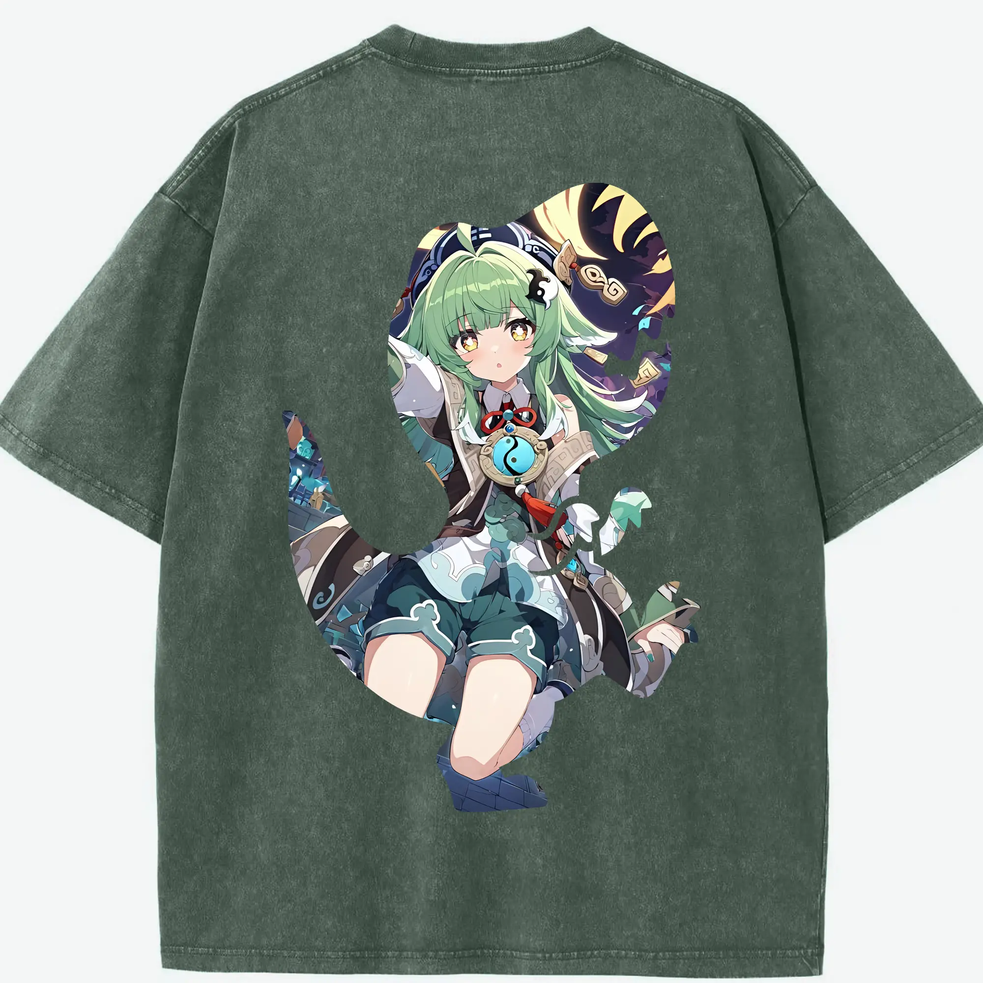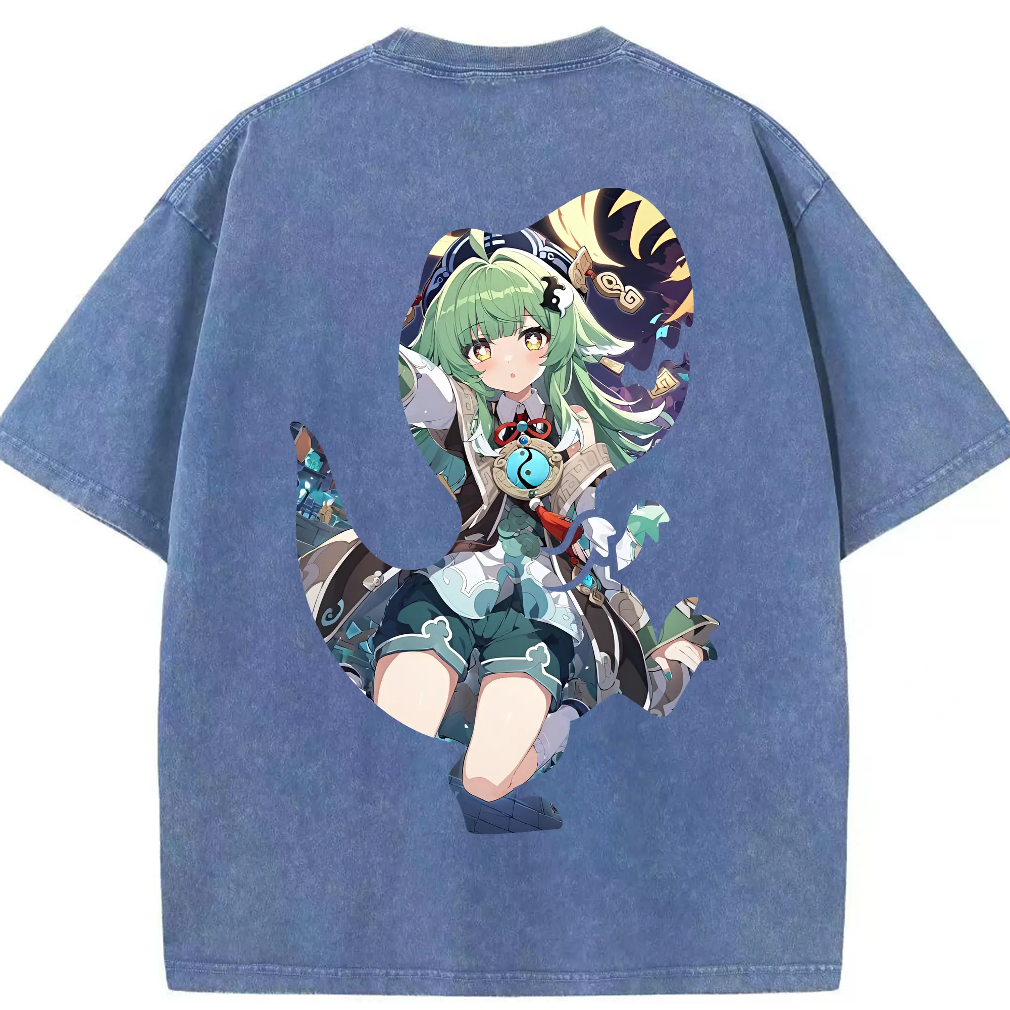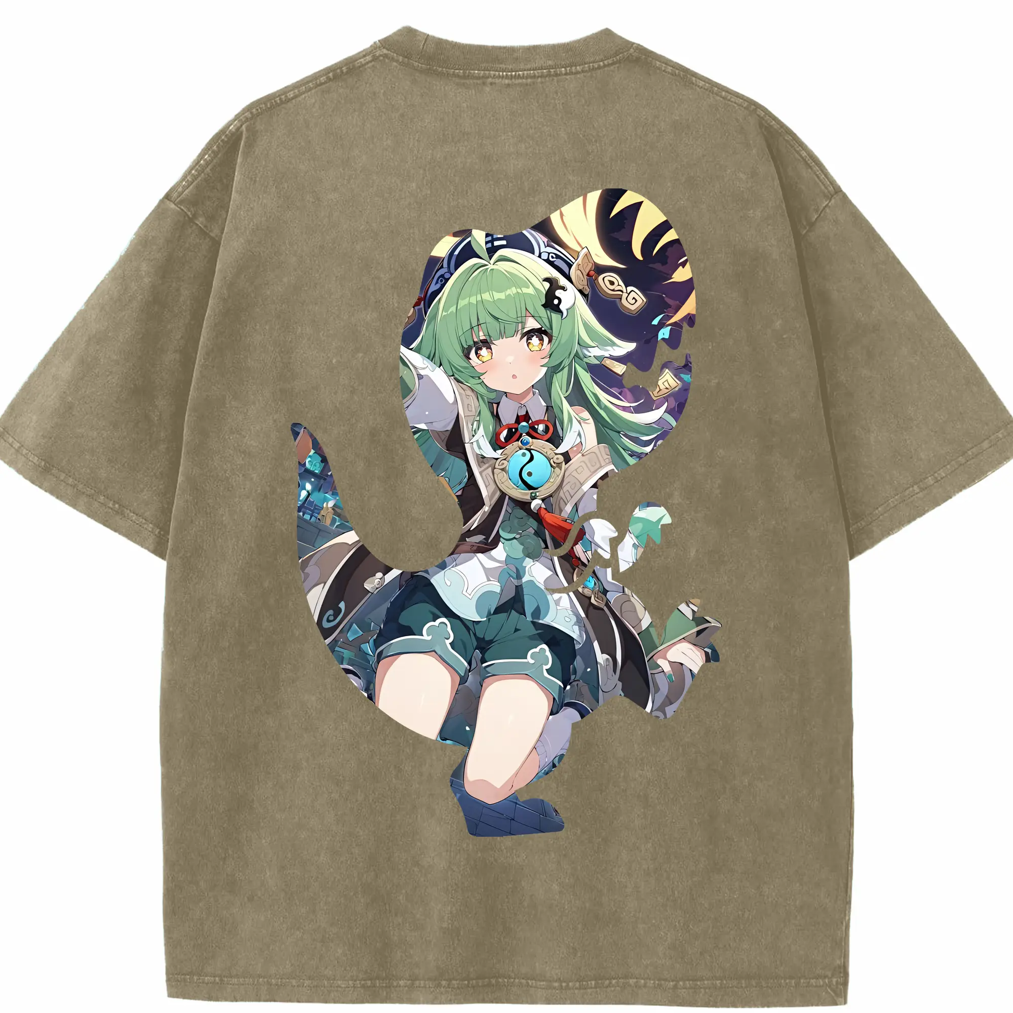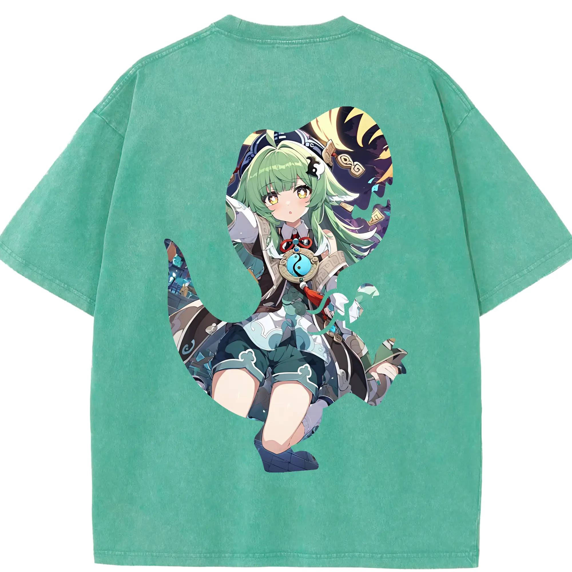 崩壊:スターレイル グッズ カフカ - 綿100% ヴィンテージ風 半袖Tシャツ ・ 背面プリント ・ 柔らか肌触り ・ 通気性 快適 ・ スポーツ カジュアル 外出用