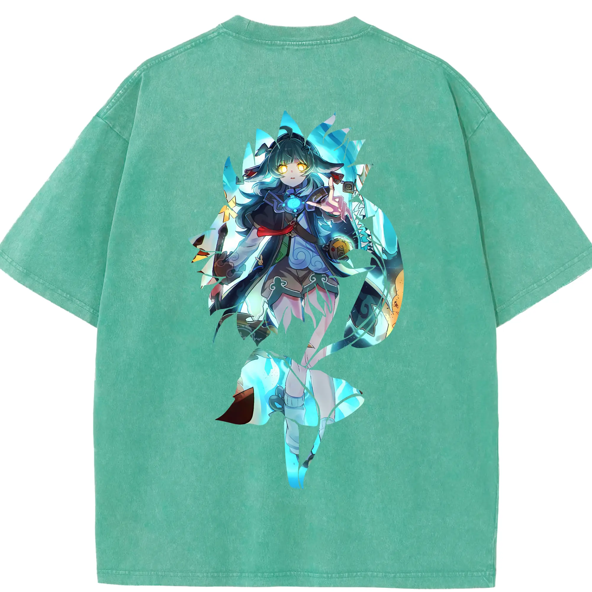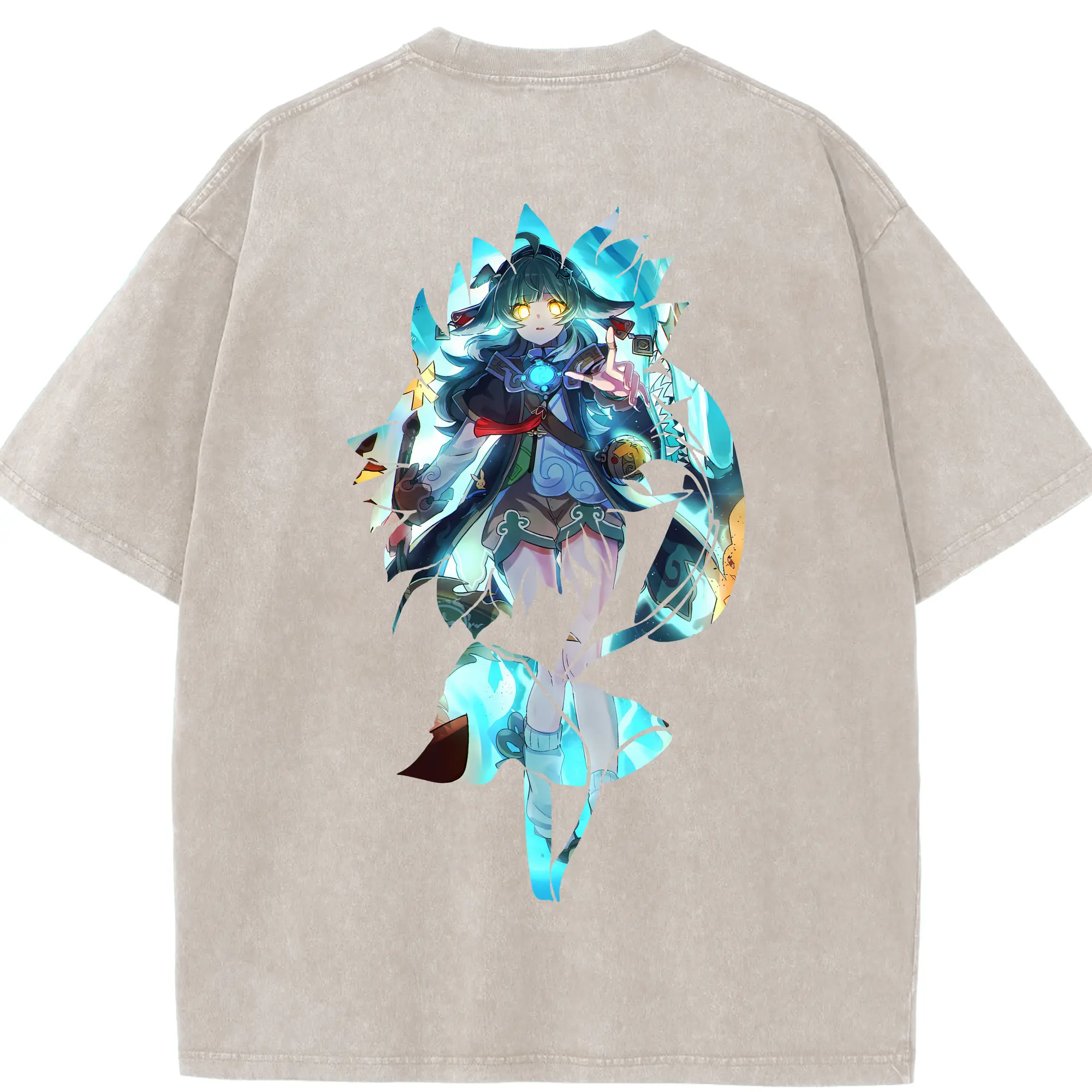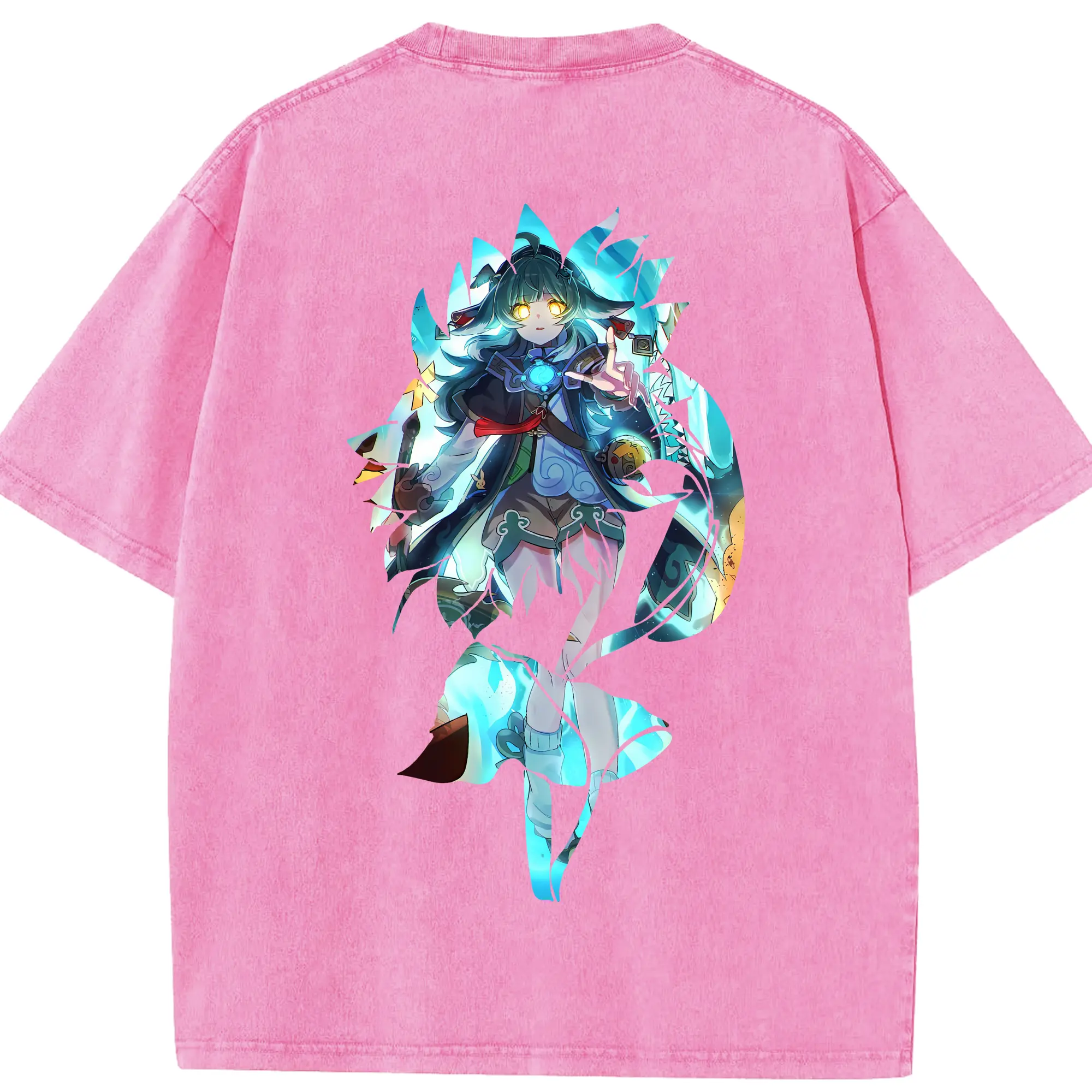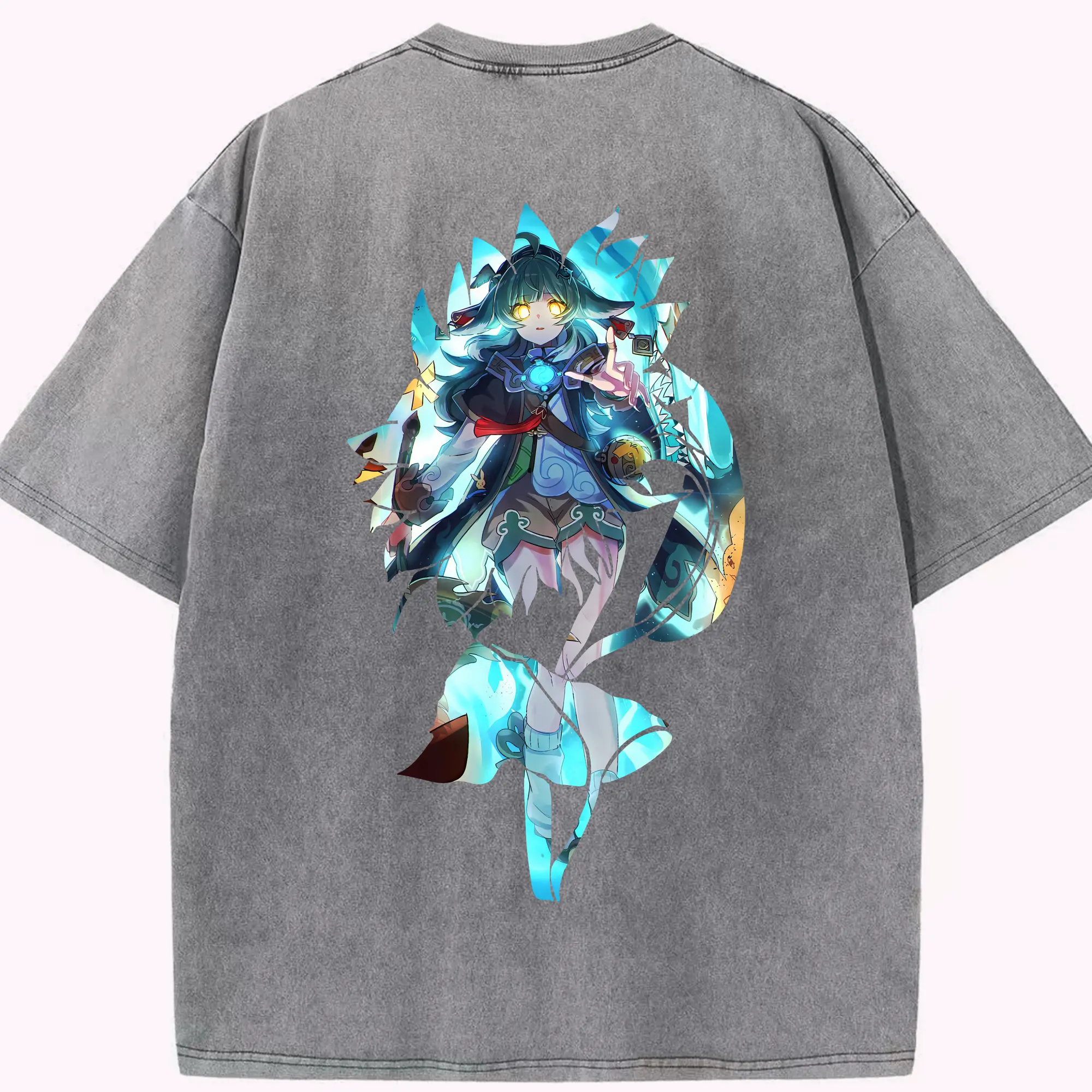 原 神 グッズ ディルック - 綿100% ヴィンテージ風 半袖Tシャツ ・ 背面プリント ・ 柔らか肌触り ・ 通気性 快適 ・ スポーツ カジュアル 外出用