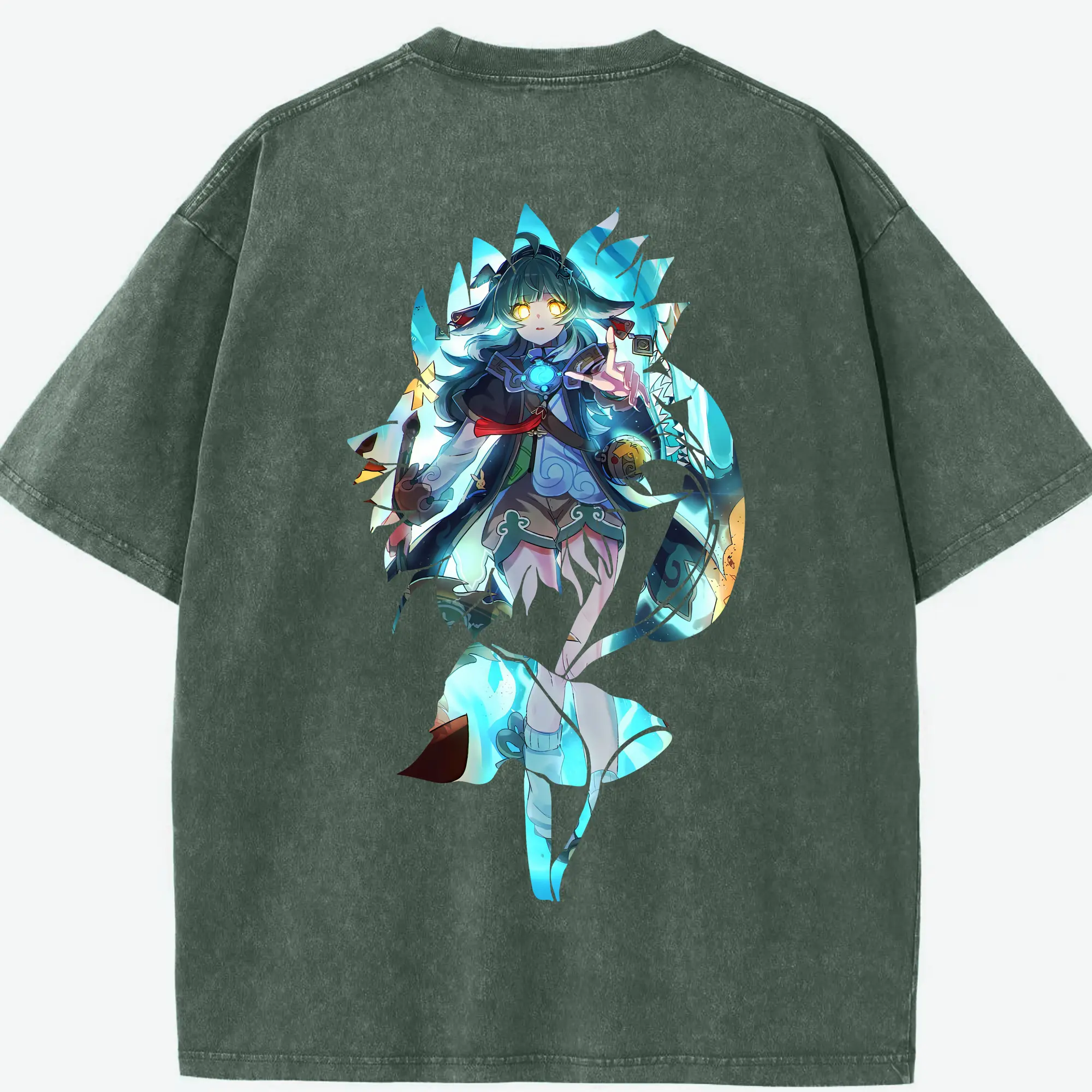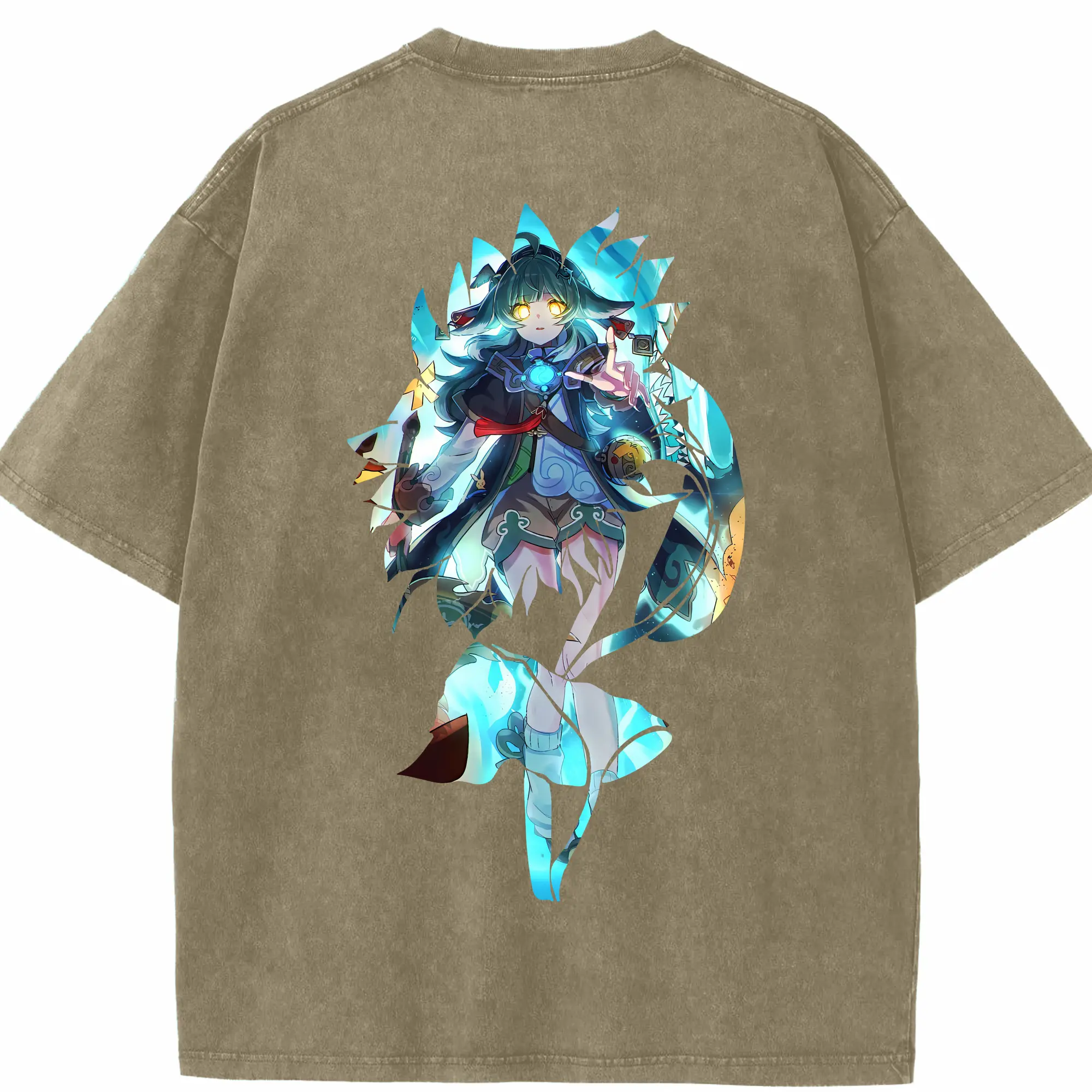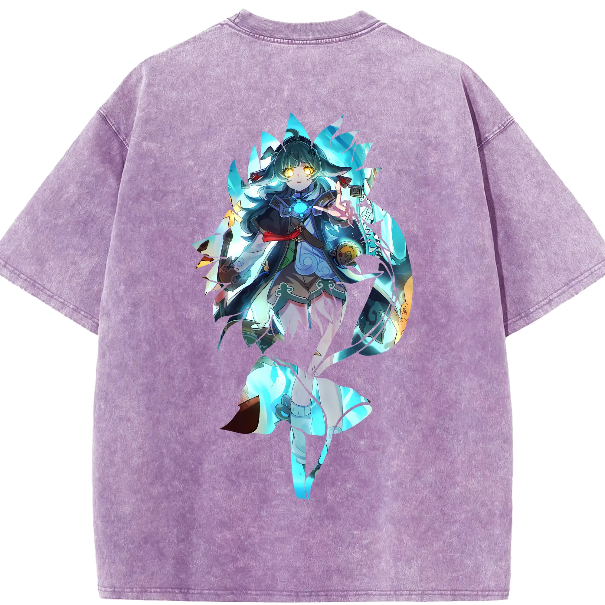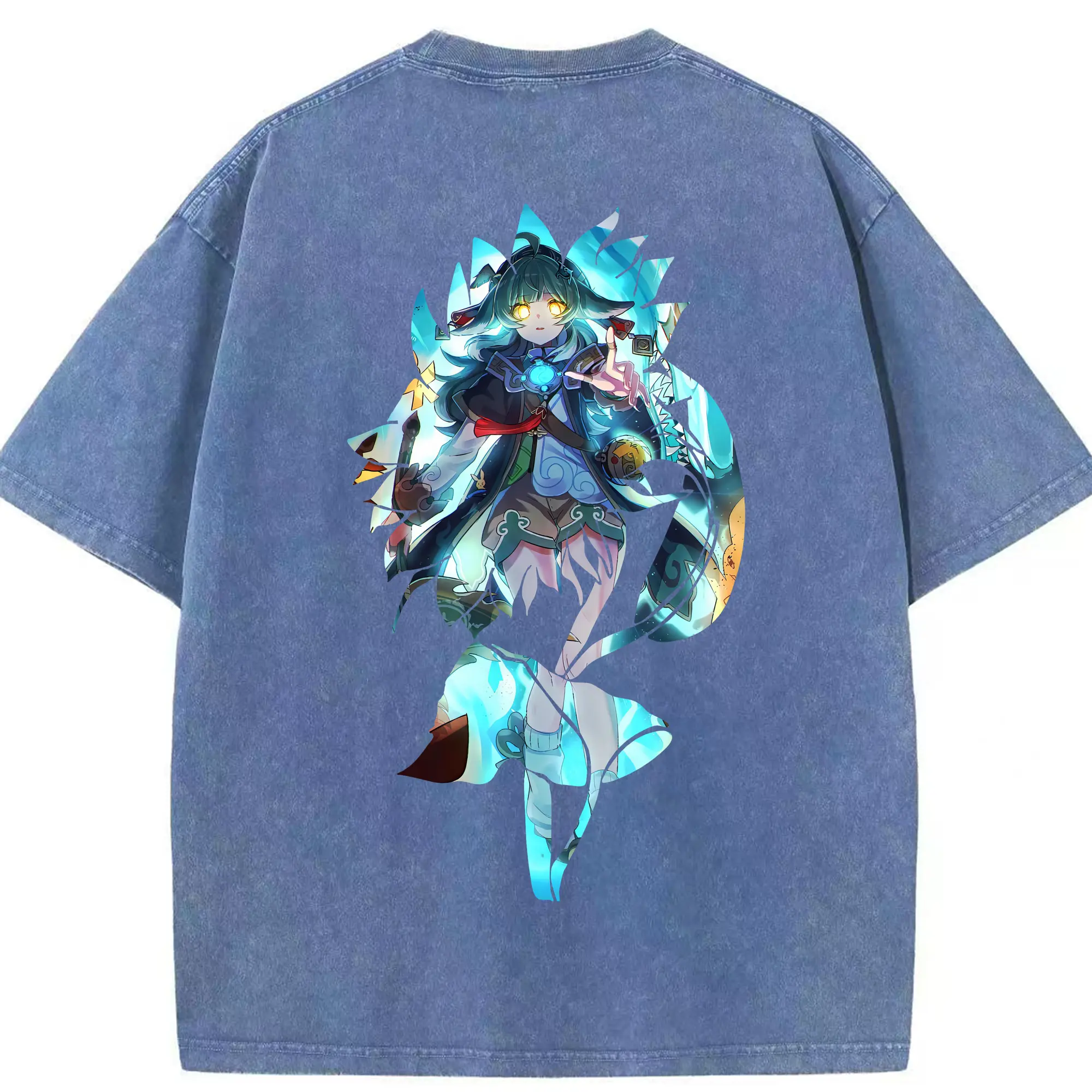 原 神 グッズ ディルック - 綿100% ヴィンテージ風 半袖Tシャツ ・ 背面プリント ・ 柔らか肌触り ・ 通気性 快適 ・ スポーツ カジュアル 外出用