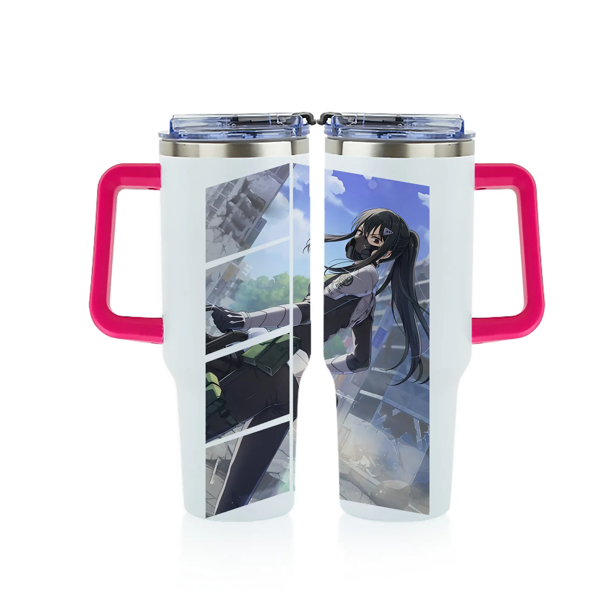 怪獣8号 グッズ,亜白ミナ - 1200mL フルプリント車用タンブラー ・ 304ステンレス 内側 ・ 201ステンレス 外側 ・ 保温 保冷 ・ 通勤 ドライブ アウトドア用