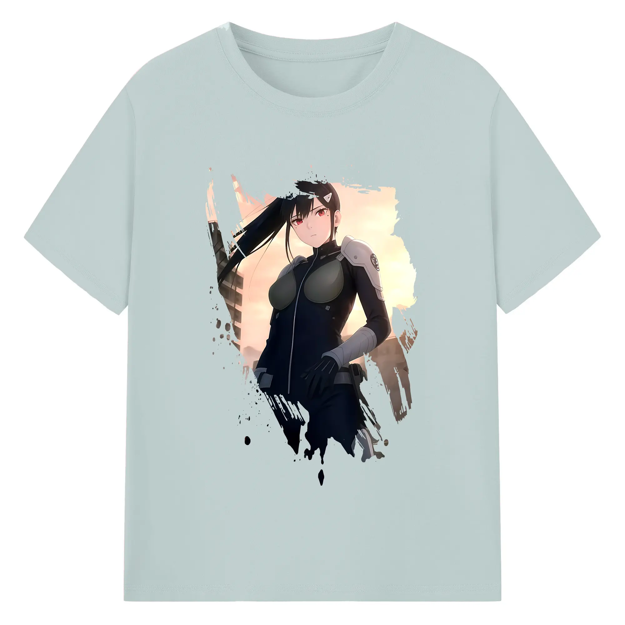 怪獣8号 グッズ,亜白ミナ - 綿100% ヴィンテージ風 半袖Tシャツ ・ 背面プリント ・ 柔らか肌触り ・ 通気性 快適 ・ スポーツ カジュアル 外出用