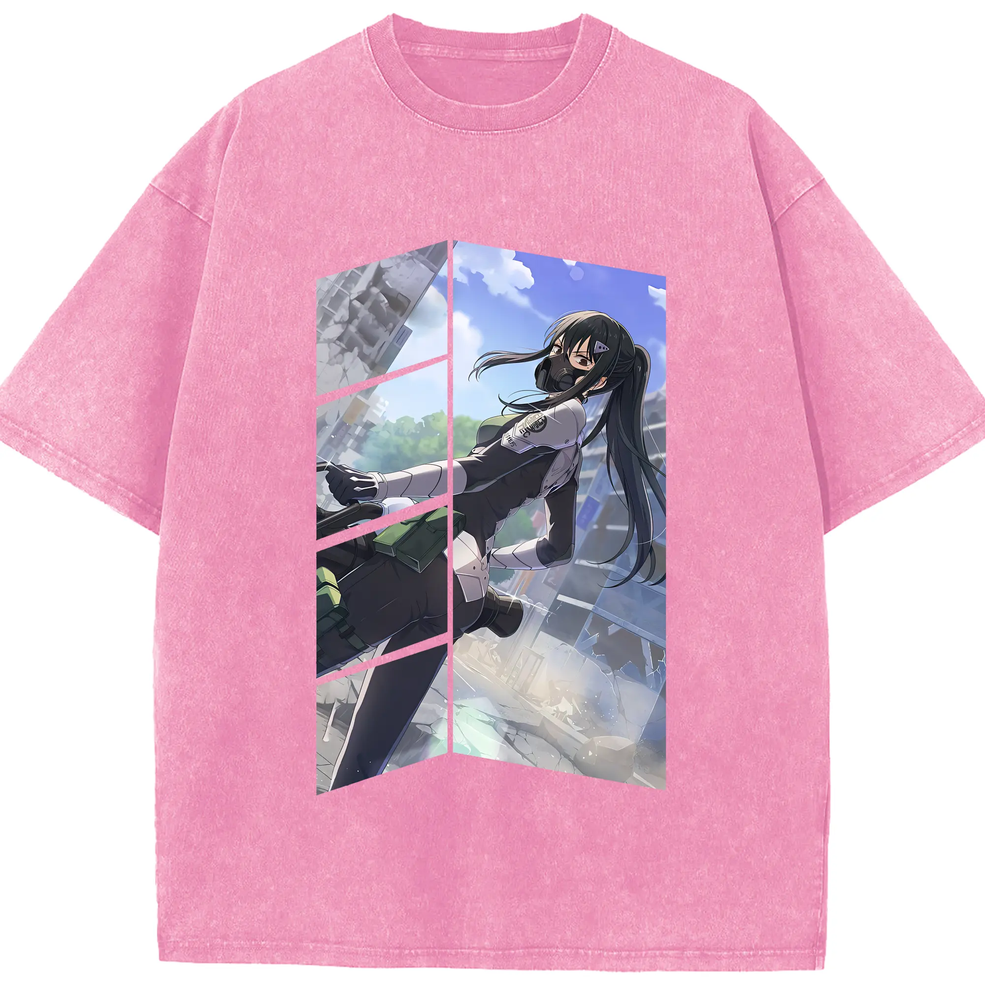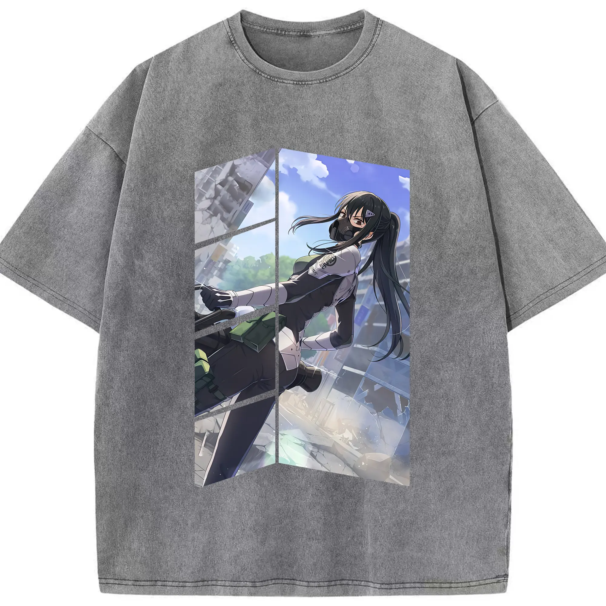 怪獣8号 グッズ,亜白ミナ - 綿100% ヴィンテージ風 半袖Tシャツ ・ 背面プリント ・ 柔らか肌触り ・ 通気性 快適 ・ スポーツ カジュアル 外出用