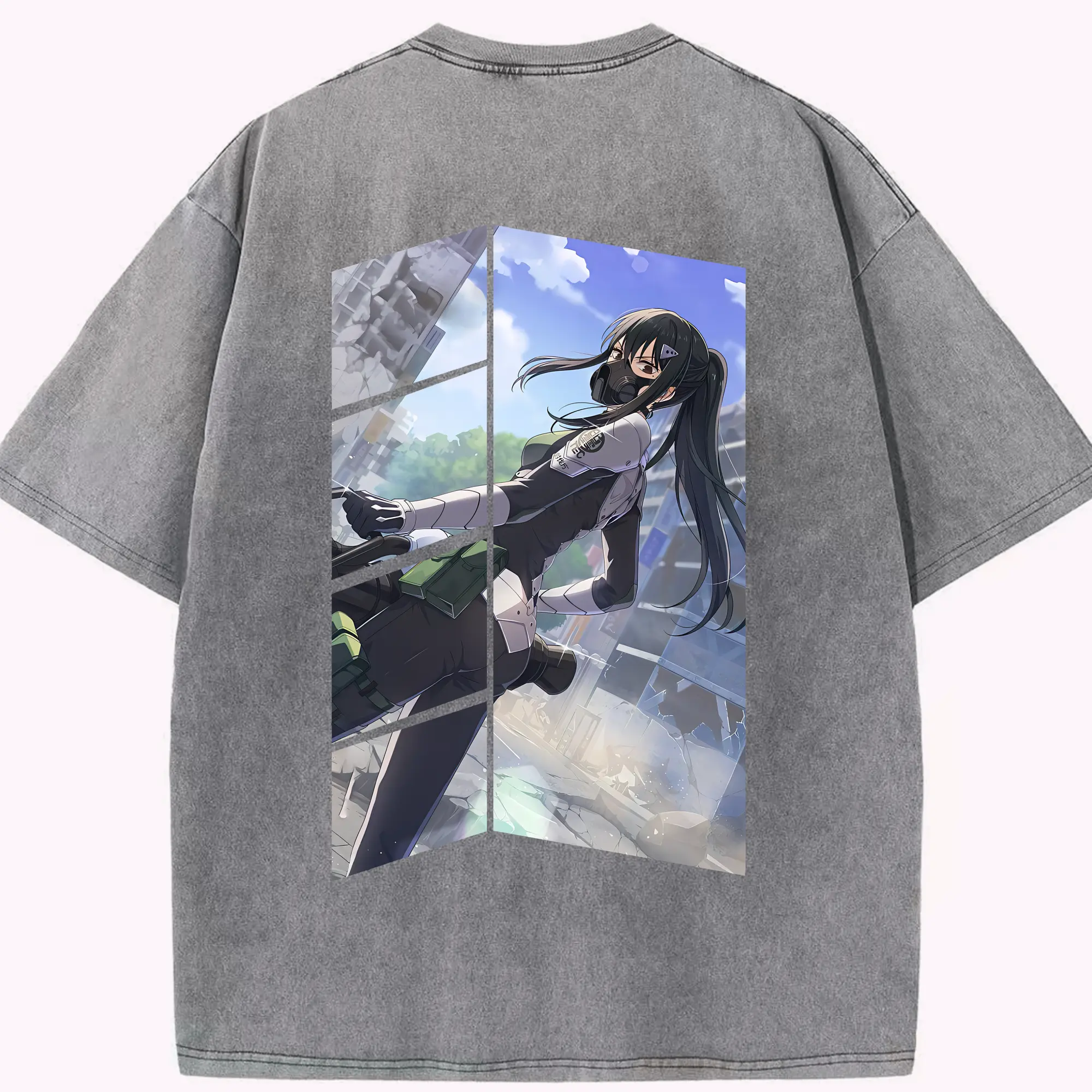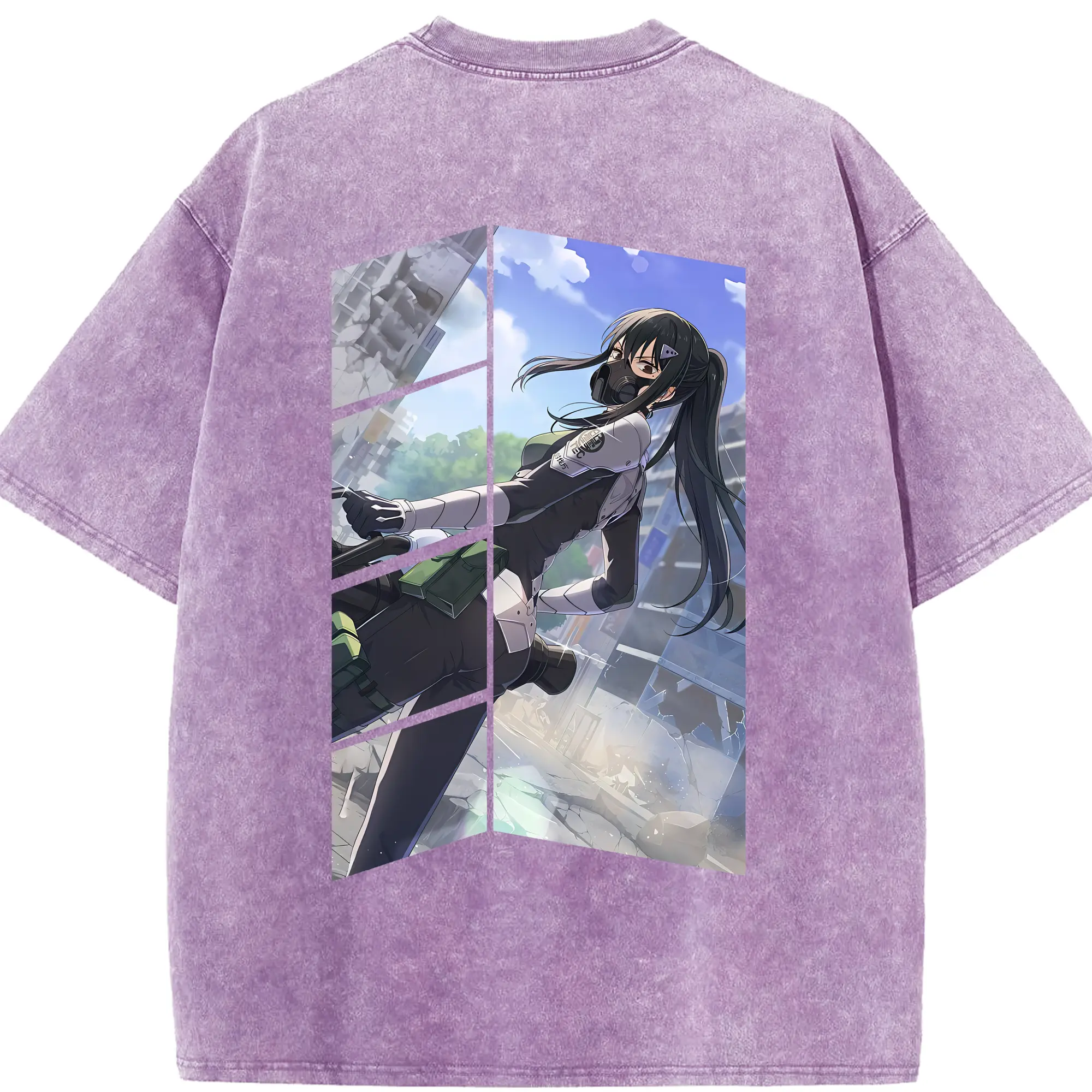 銀魂 グッズ 神楽 - 綿100% ヴィンテージ風 半袖Tシャツ ・ 背面プリント ・ 柔らか肌触り ・ 通気性 快適 ・ スポーツ カジュアル 外出用