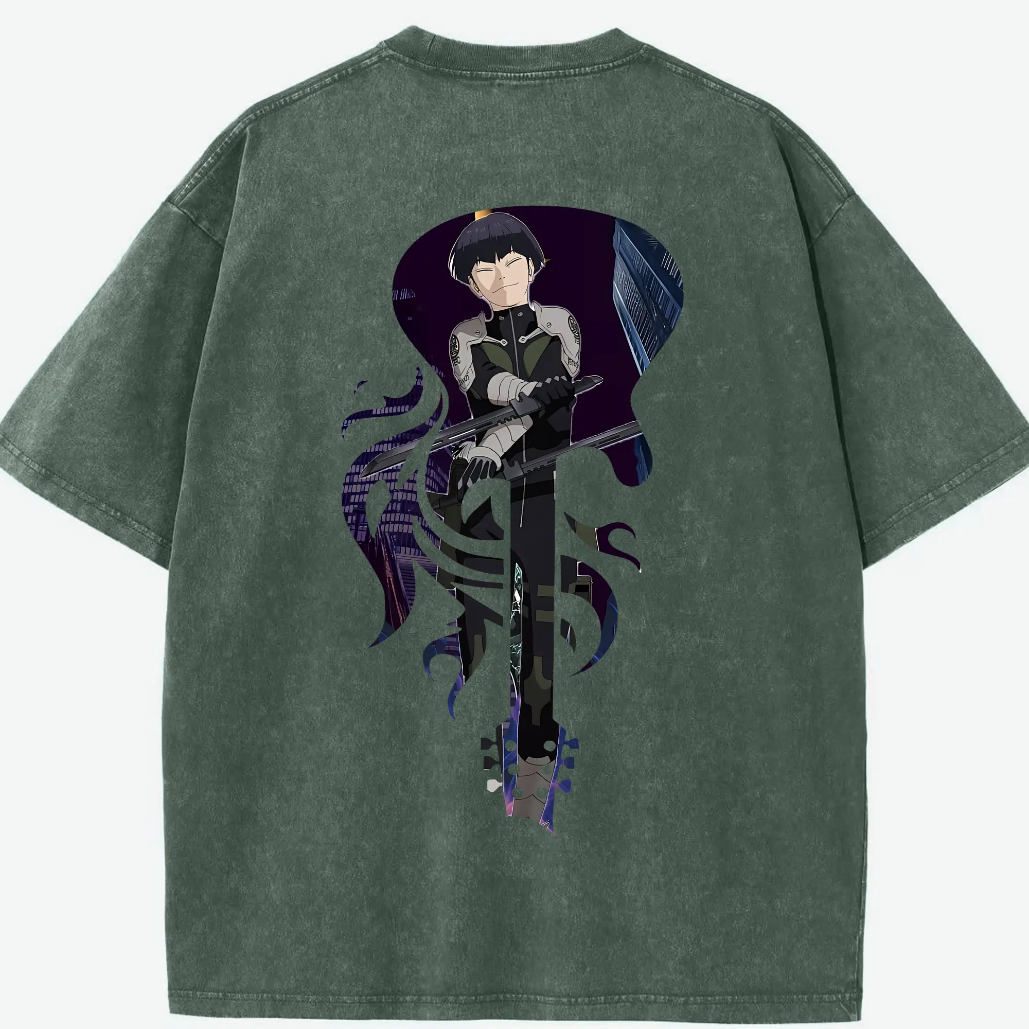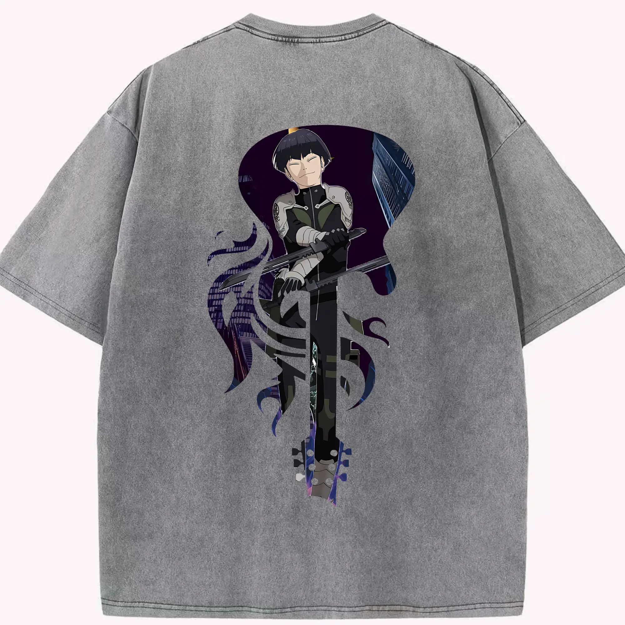 銀魂 グッズ 神楽 - 綿100% ヴィンテージ風 半袖Tシャツ ・ 背面プリント ・ 柔らか肌触り ・ 通気性 快適 ・ スポーツ カジュアル 外出用