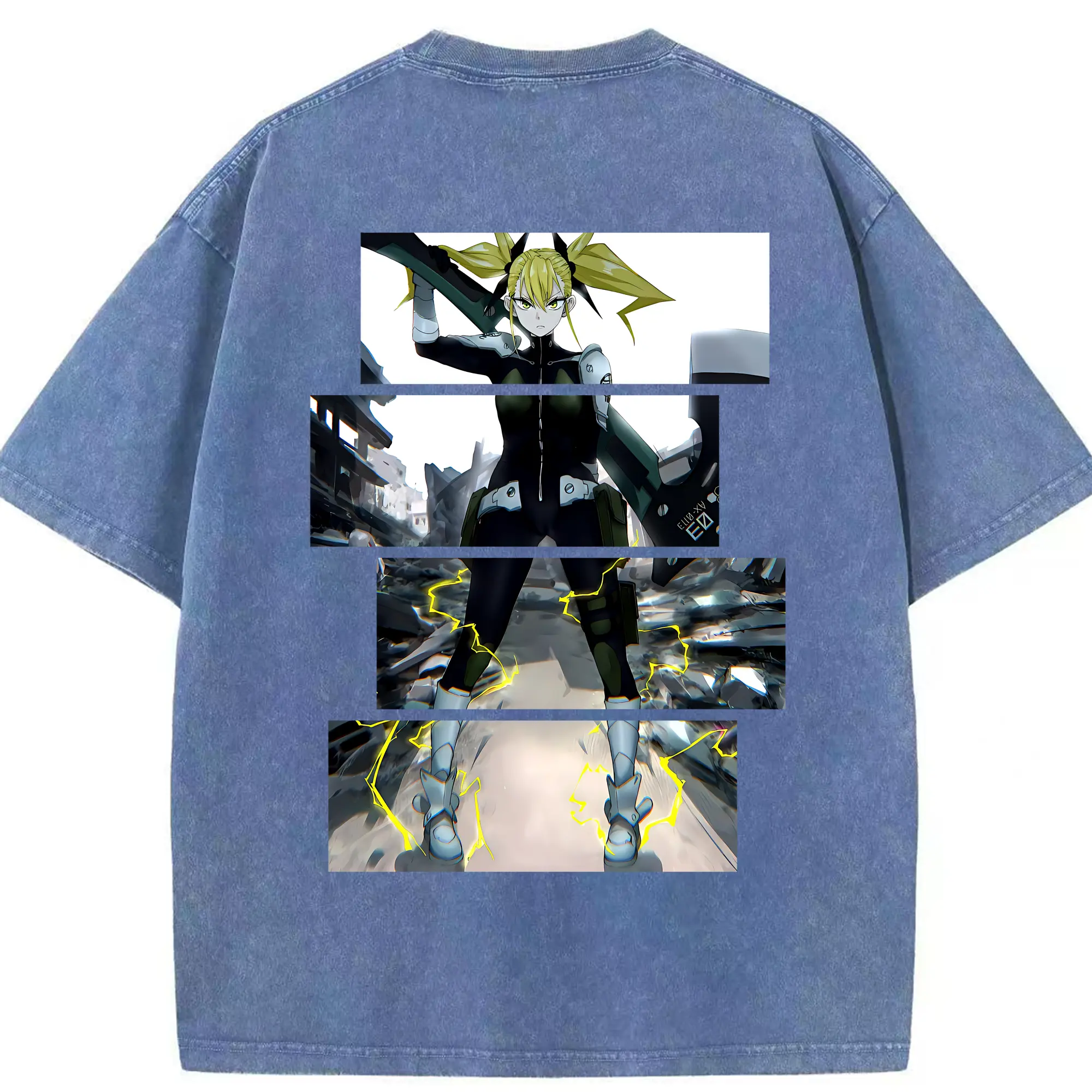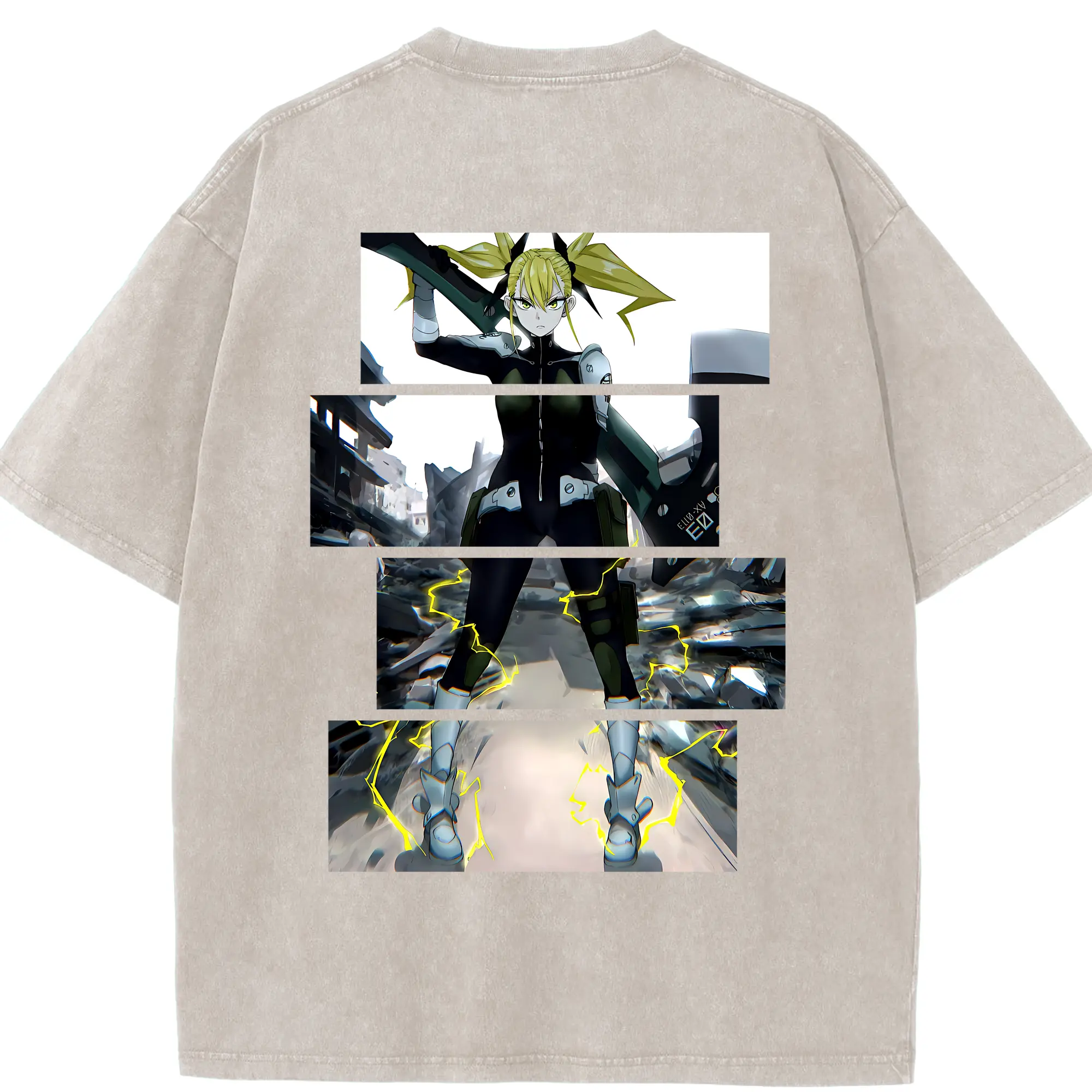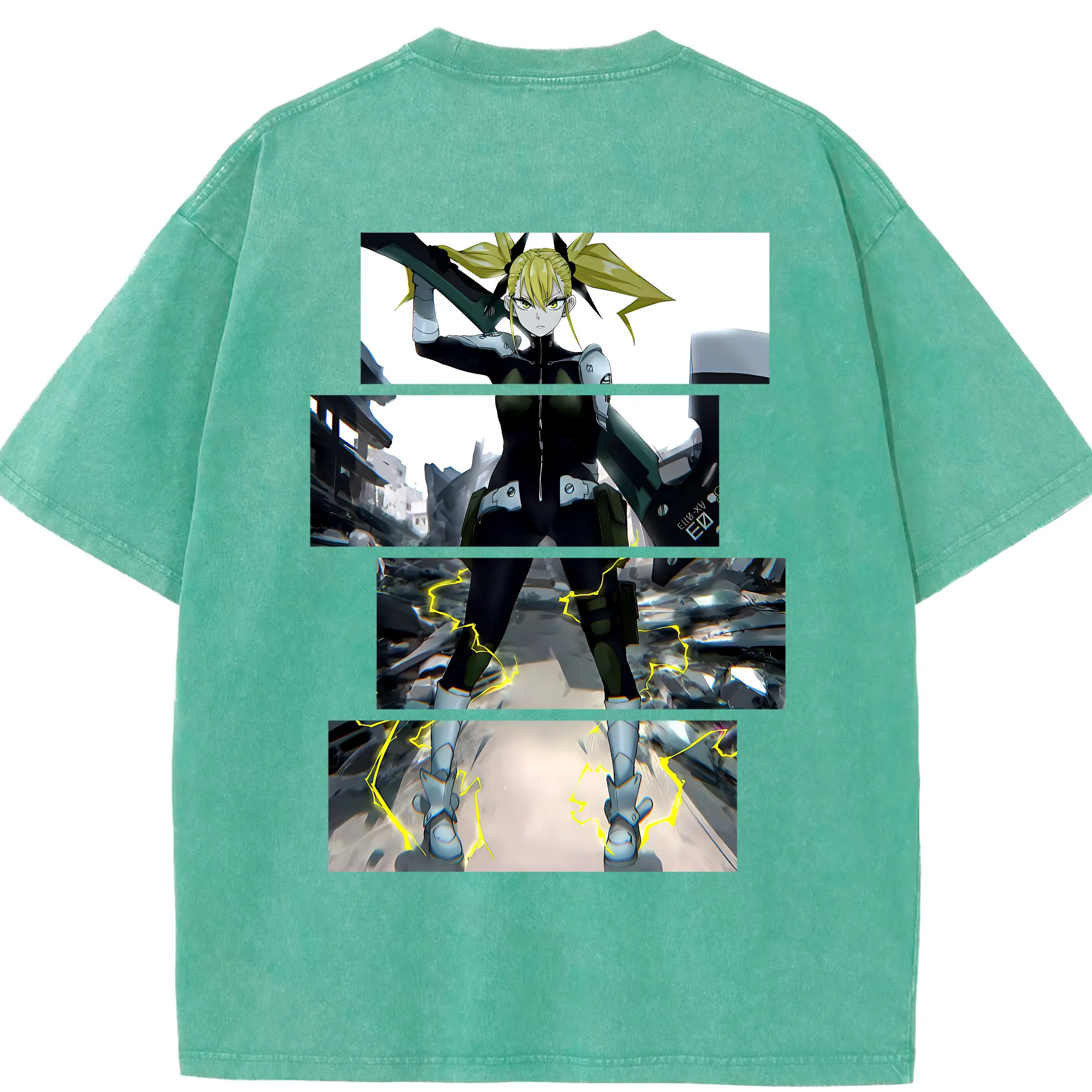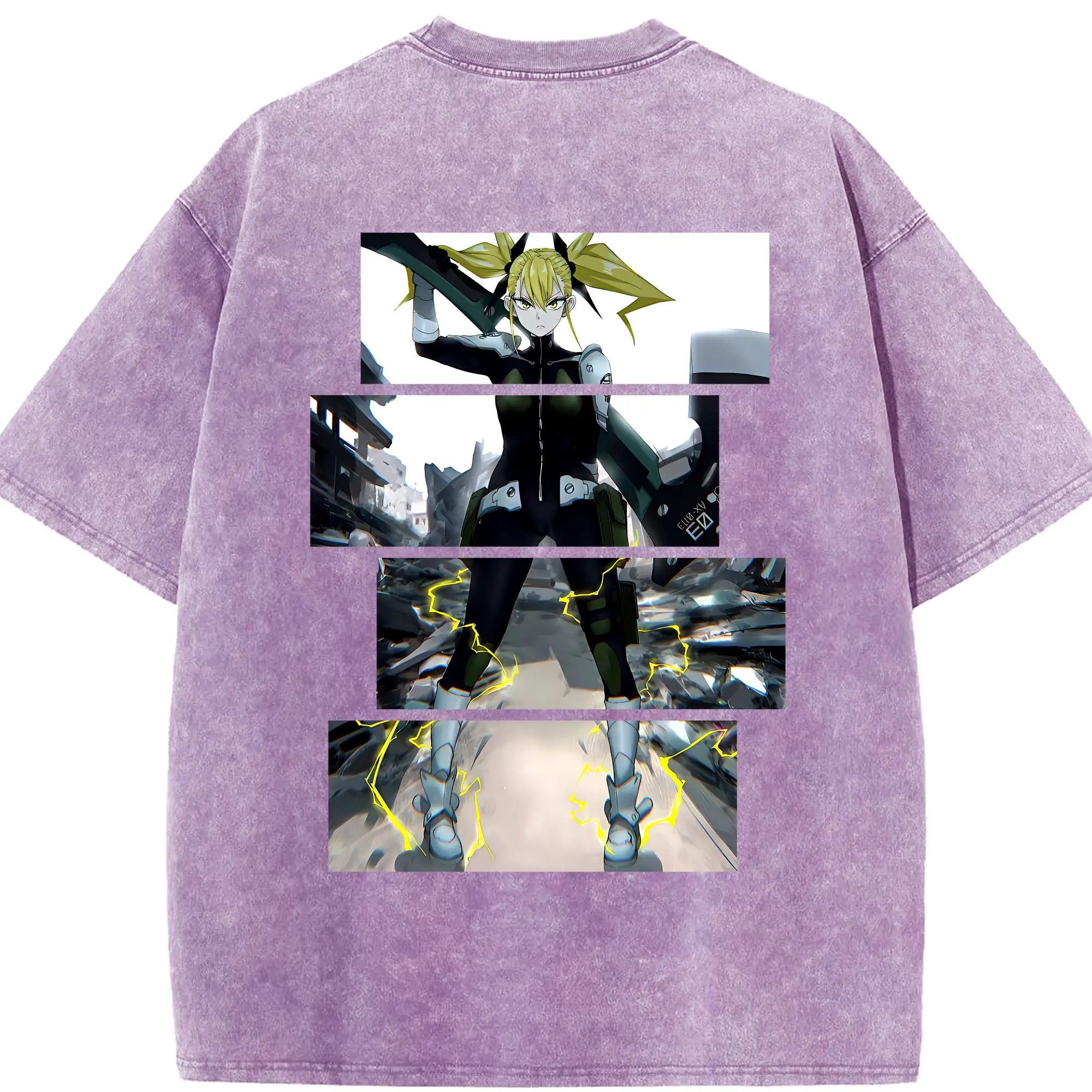 鳴潮 グッズ フィービー - 綿100% ヴィンテージ風 半袖Tシャツ ・ 背面プリント ・ 柔らか肌触り ・ 通気性 快適 ・ スポーツ カジュアル 外出用