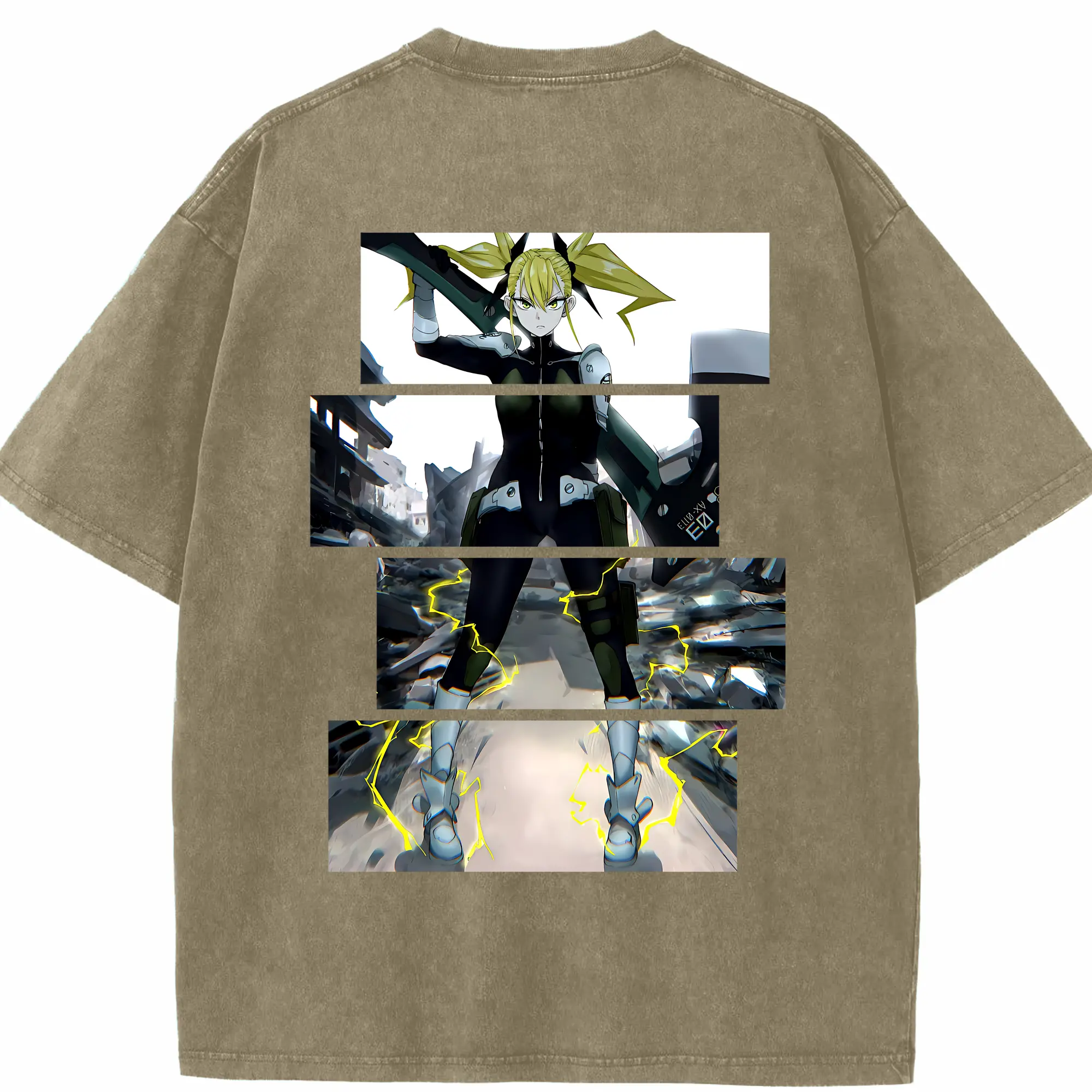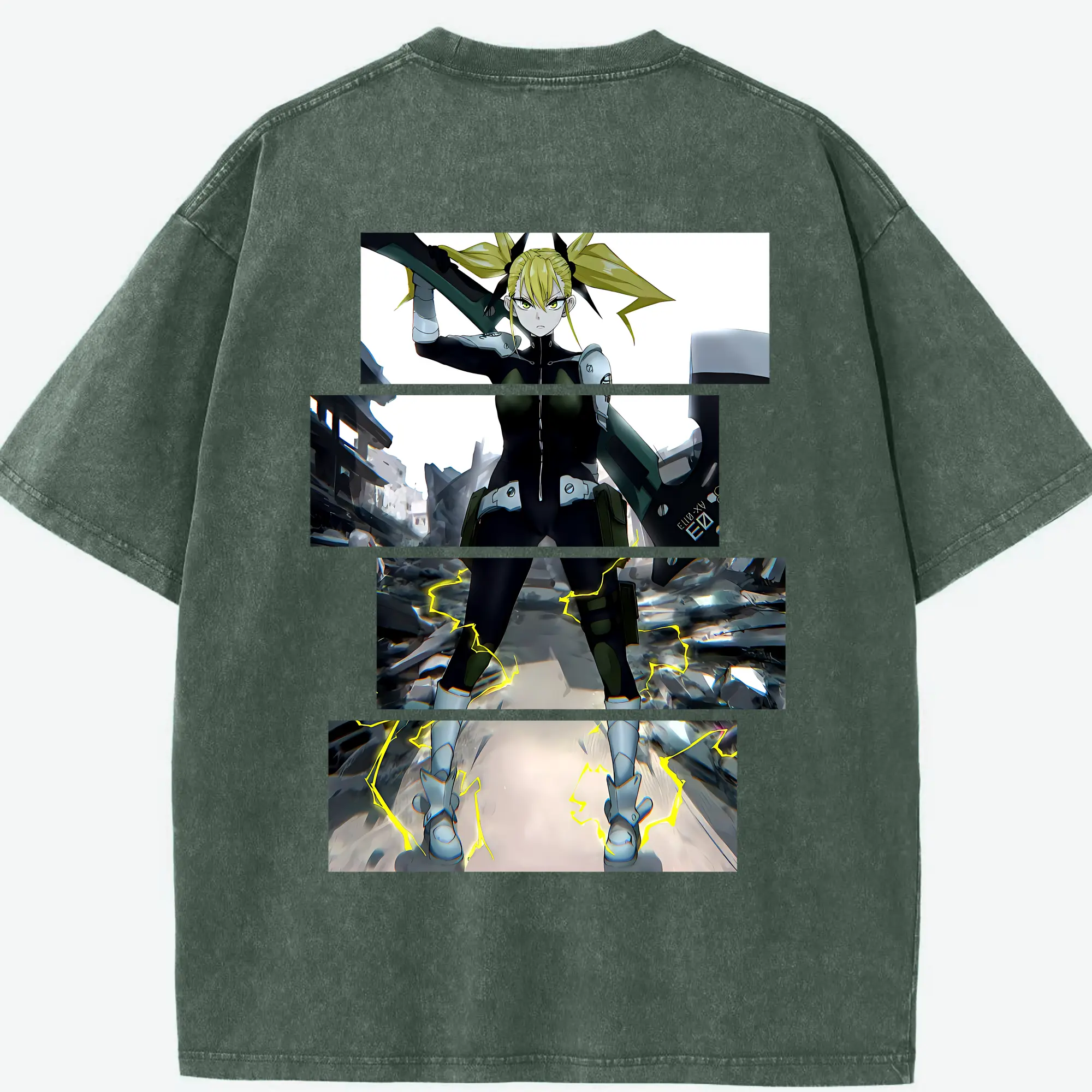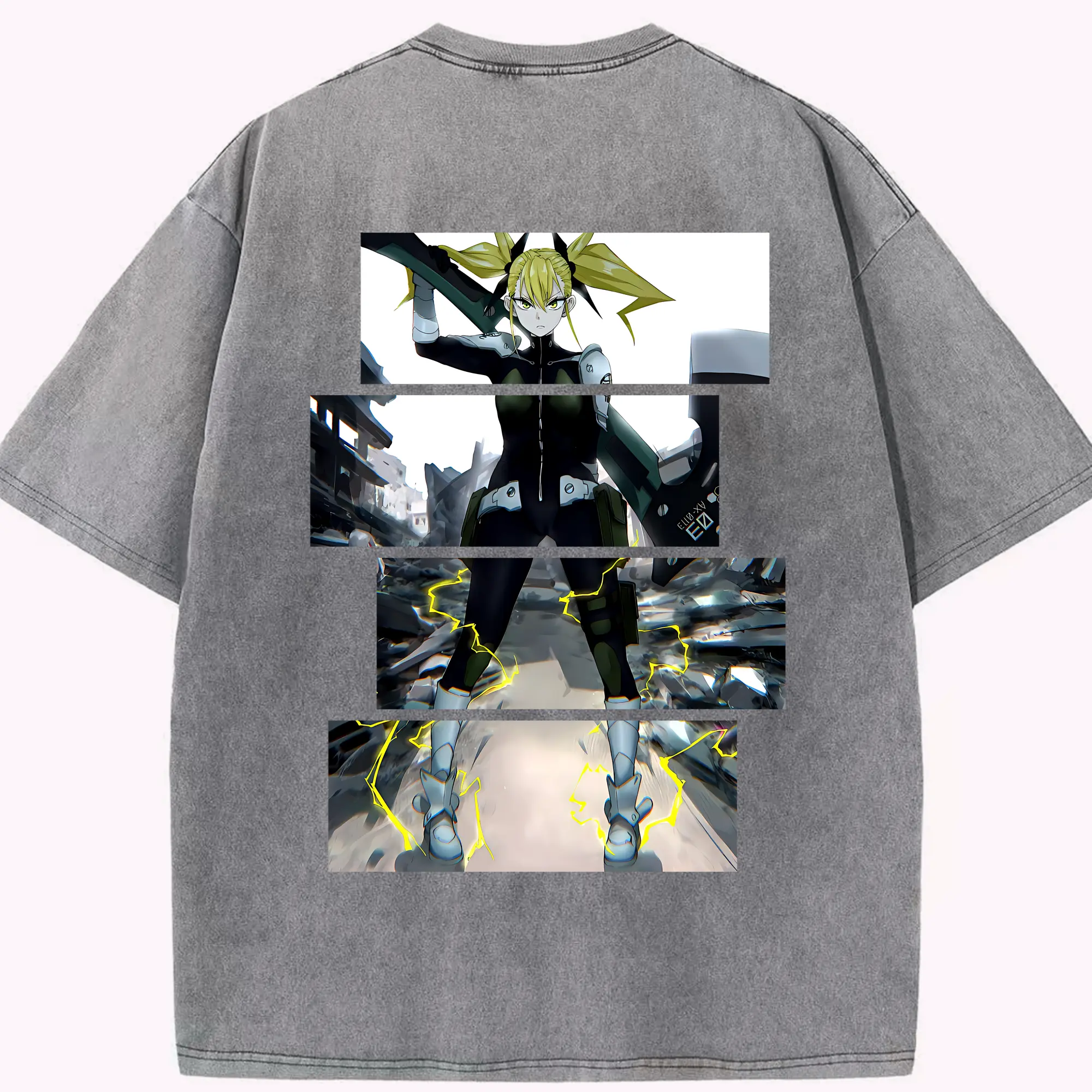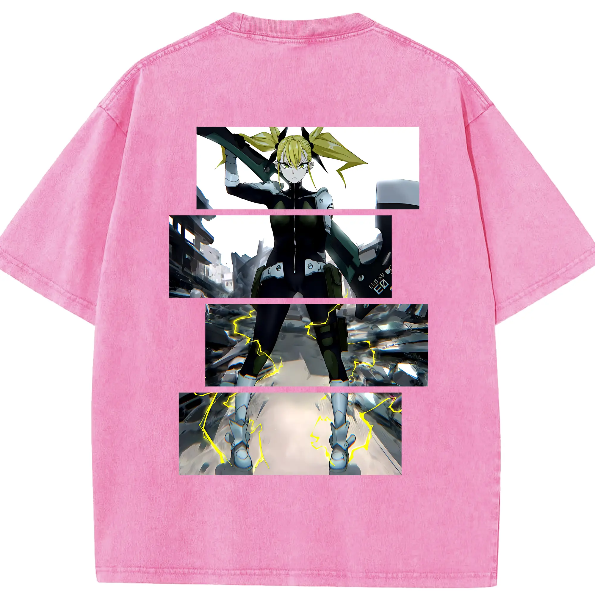 鳴潮 グッズ フィービー - 綿100% ヴィンテージ風 半袖Tシャツ ・ 背面プリント ・ 柔らか肌触り ・ 通気性 快適 ・ スポーツ カジュアル 外出用