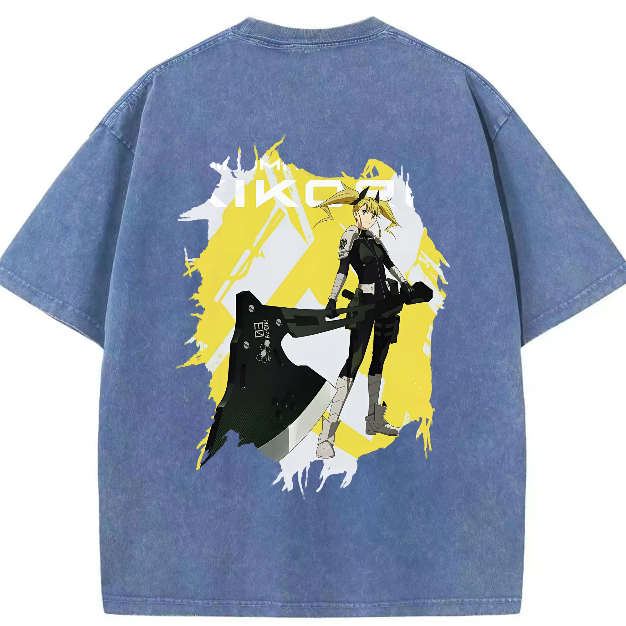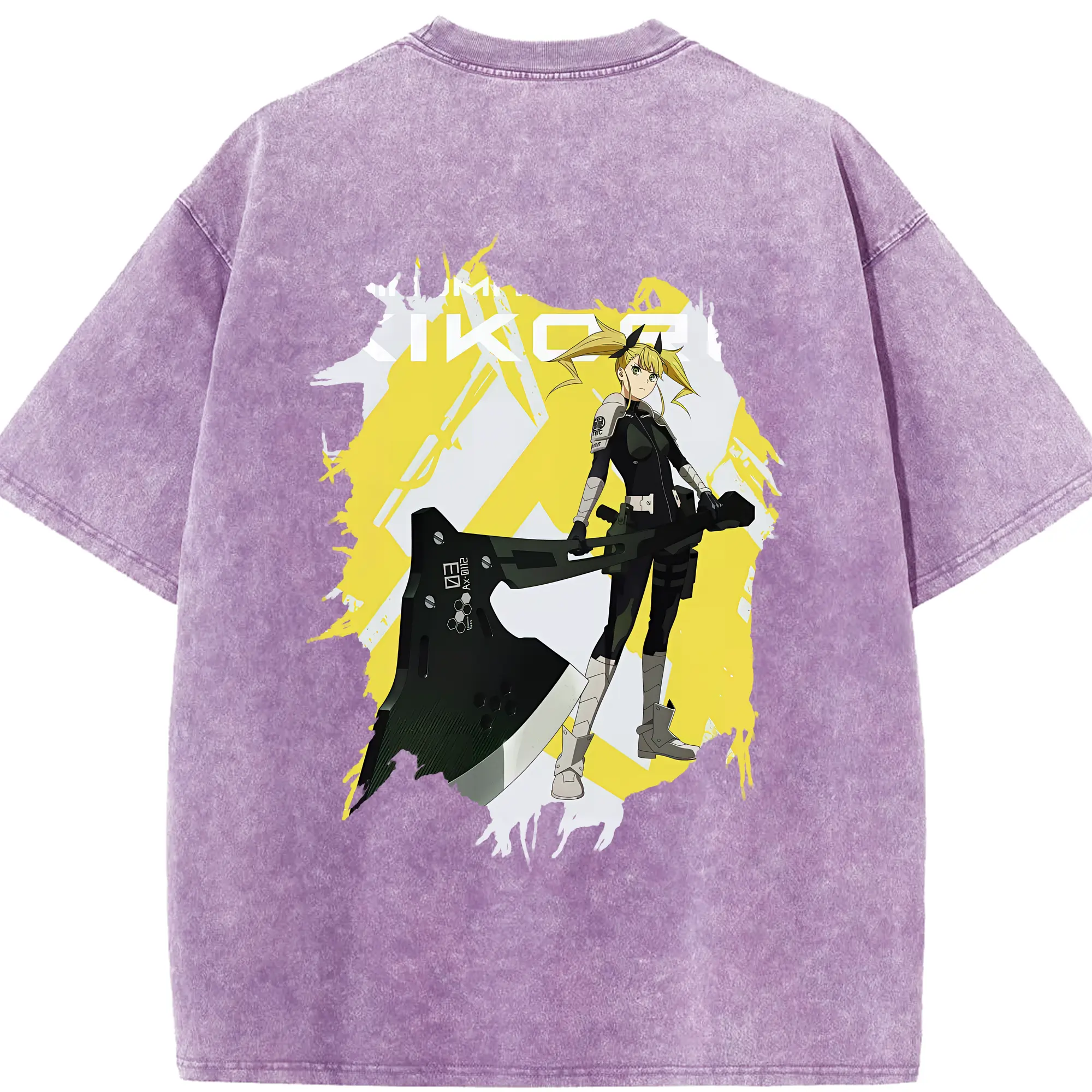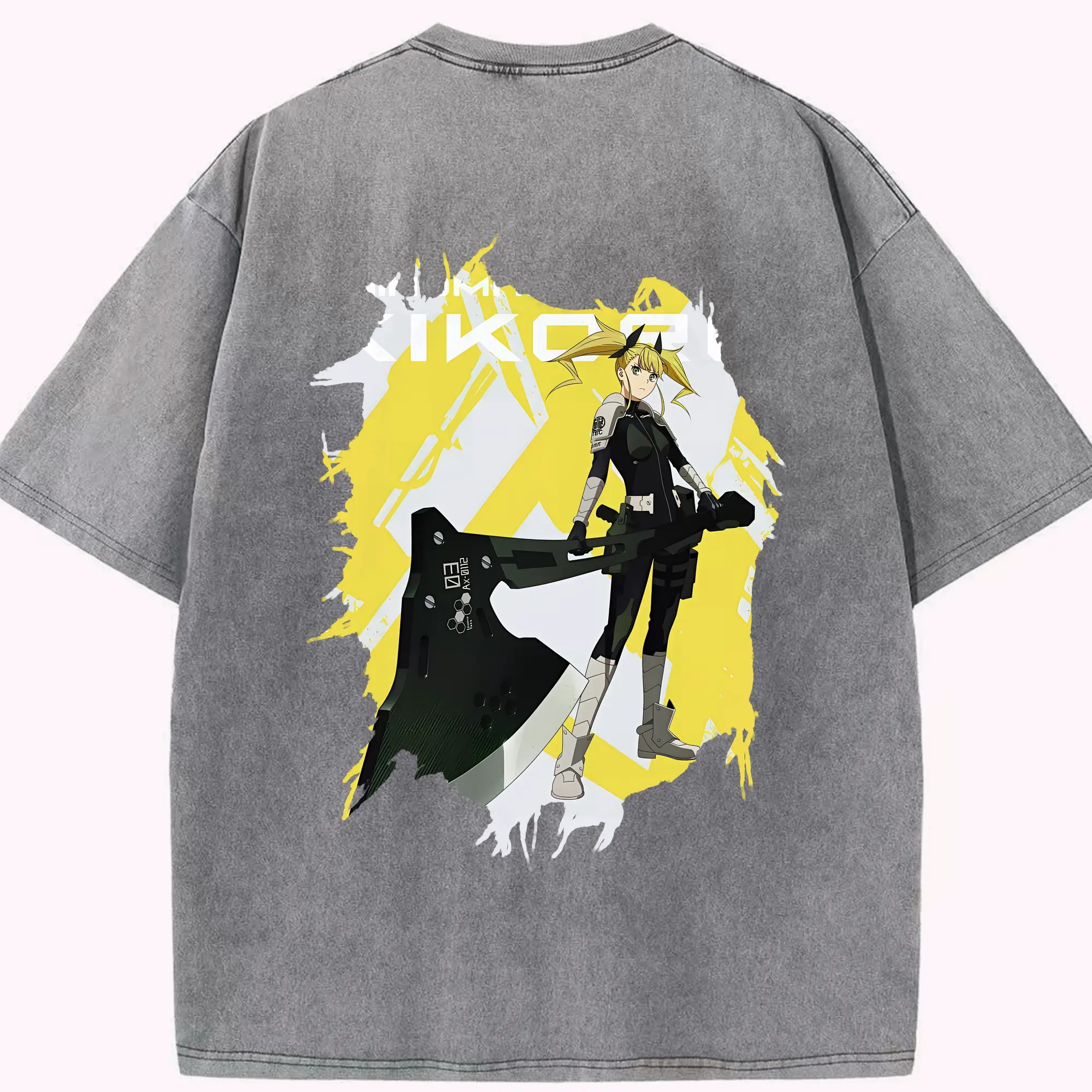 鳴潮 グッズ カンタレラ - 綿100% ヴィンテージ風 半袖Tシャツ ・ 背面プリント ・ 柔らか肌触り ・ 通気性 快適 ・ スポーツ カジュアル 外出用