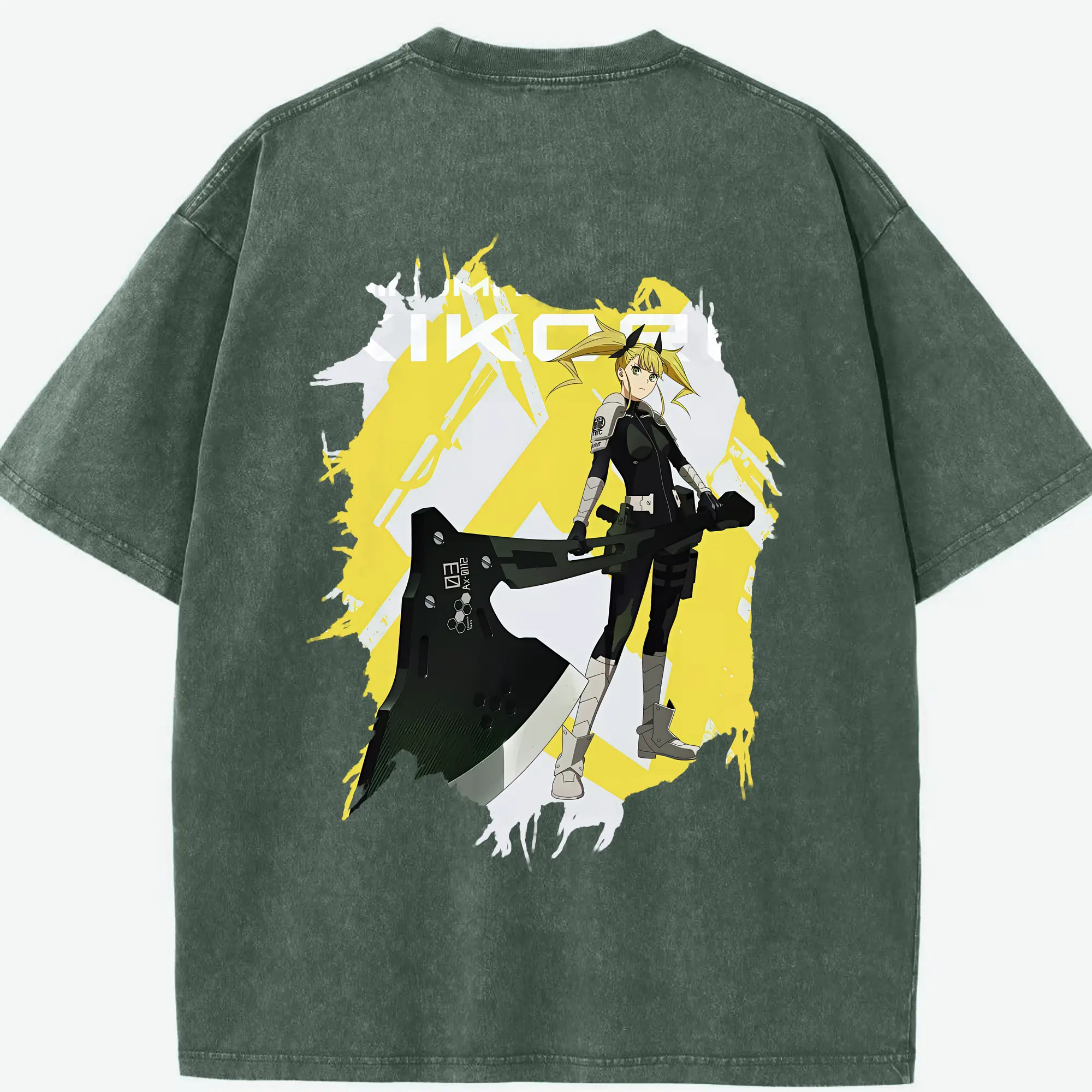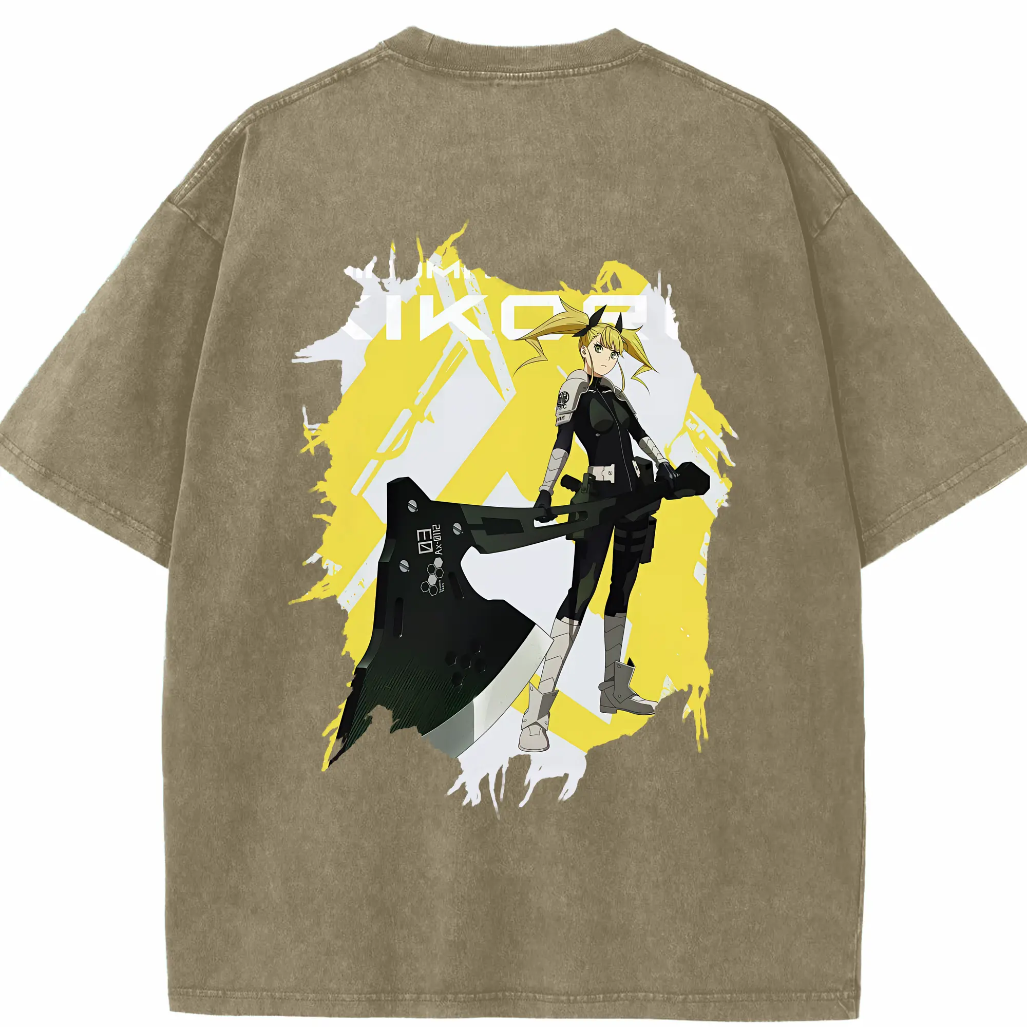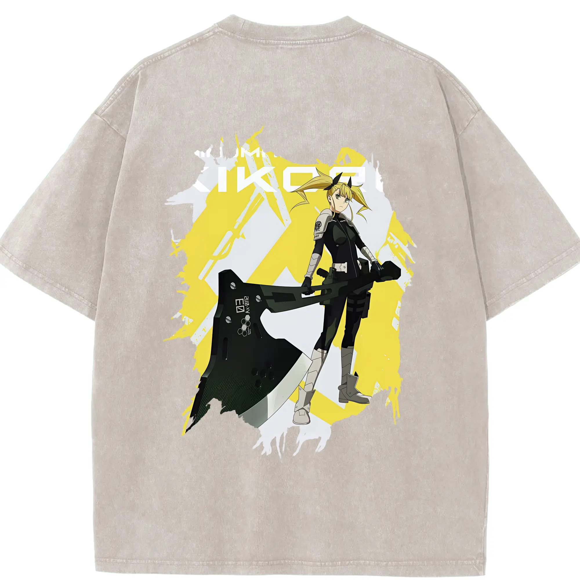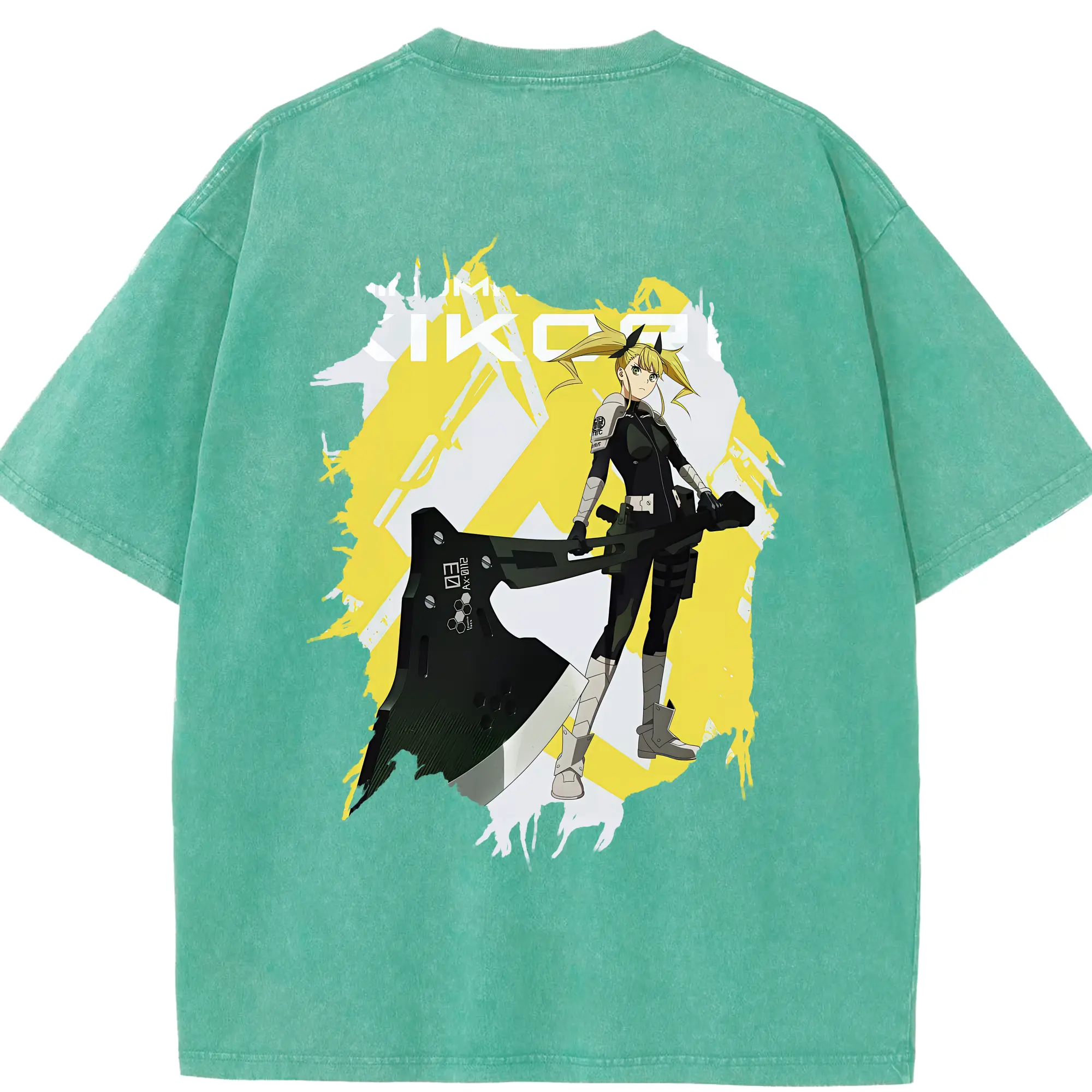 鳴潮 グッズ カンタレラ - 綿100% ヴィンテージ風 半袖Tシャツ ・ 背面プリント ・ 柔らか肌触り ・ 通気性 快適 ・ スポーツ カジュアル 外出用