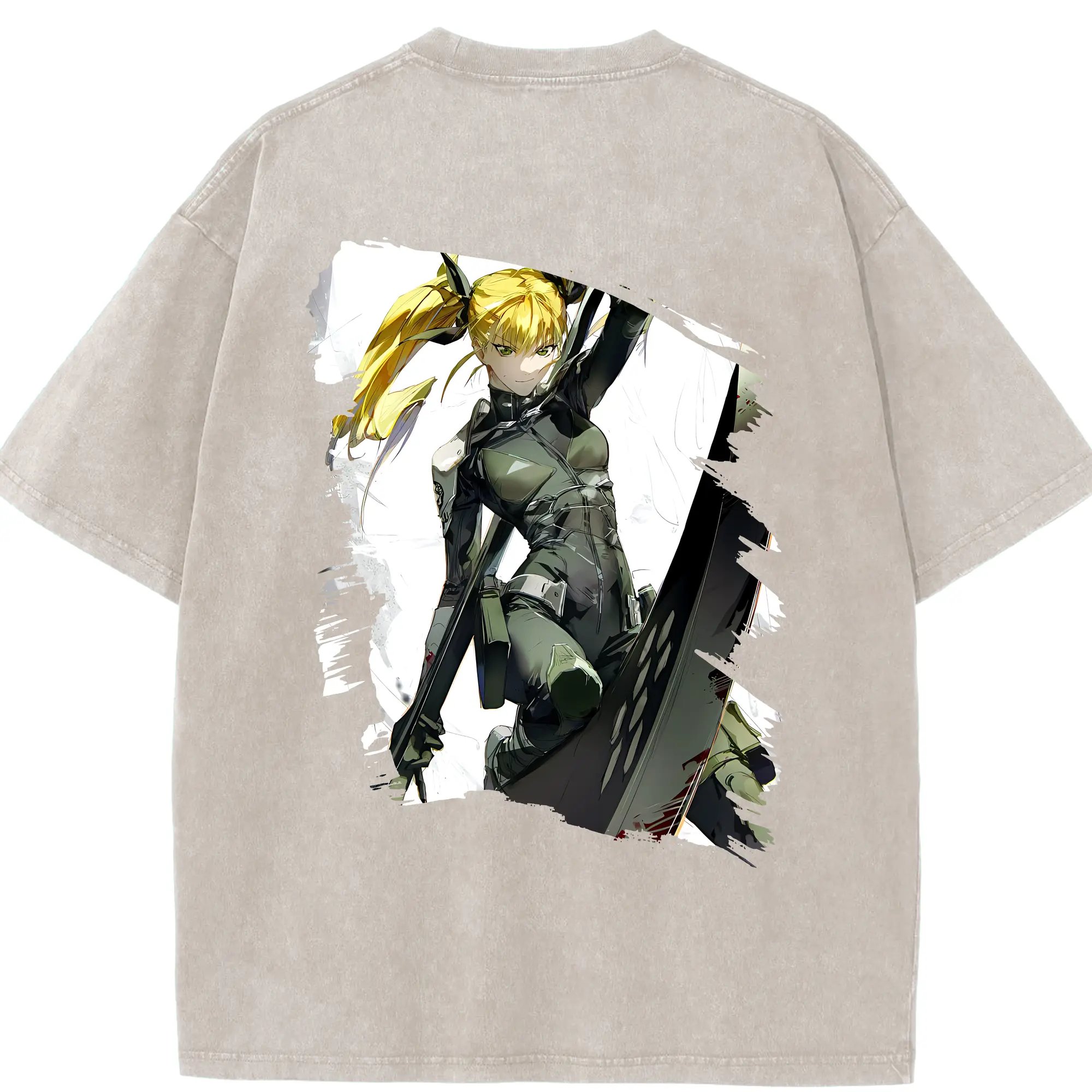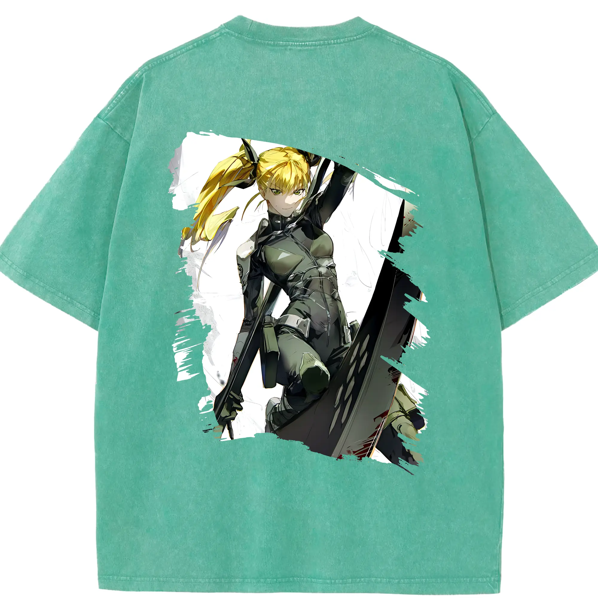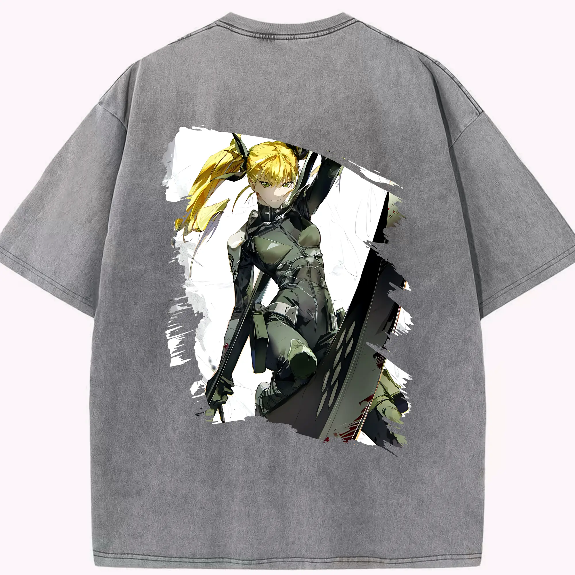 崩壊:スターレイル グッズ 銀狼 - 綿100% ヴィンテージ風 半袖Tシャツ ・ 背面プリント ・ 柔らか肌触り ・ 通気性 快適 ・ スポーツ カジュアル 外出用