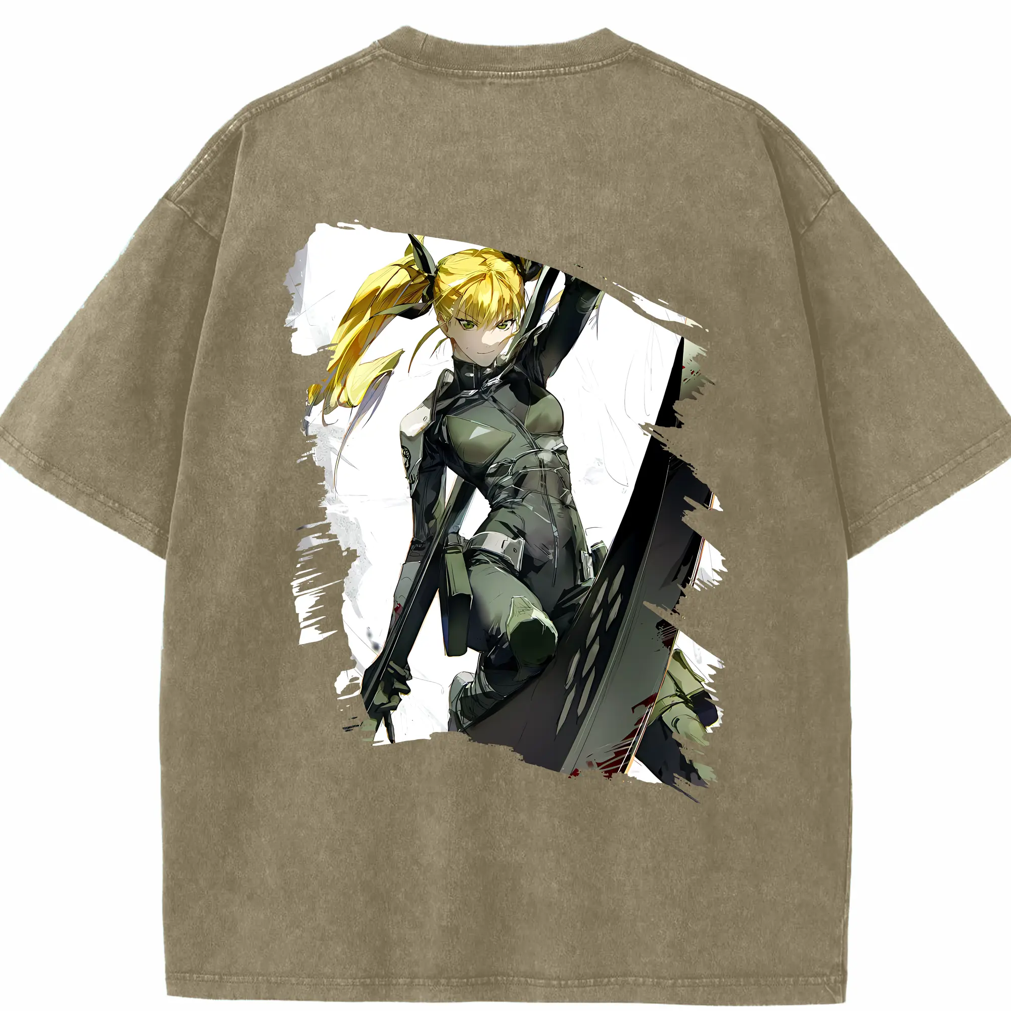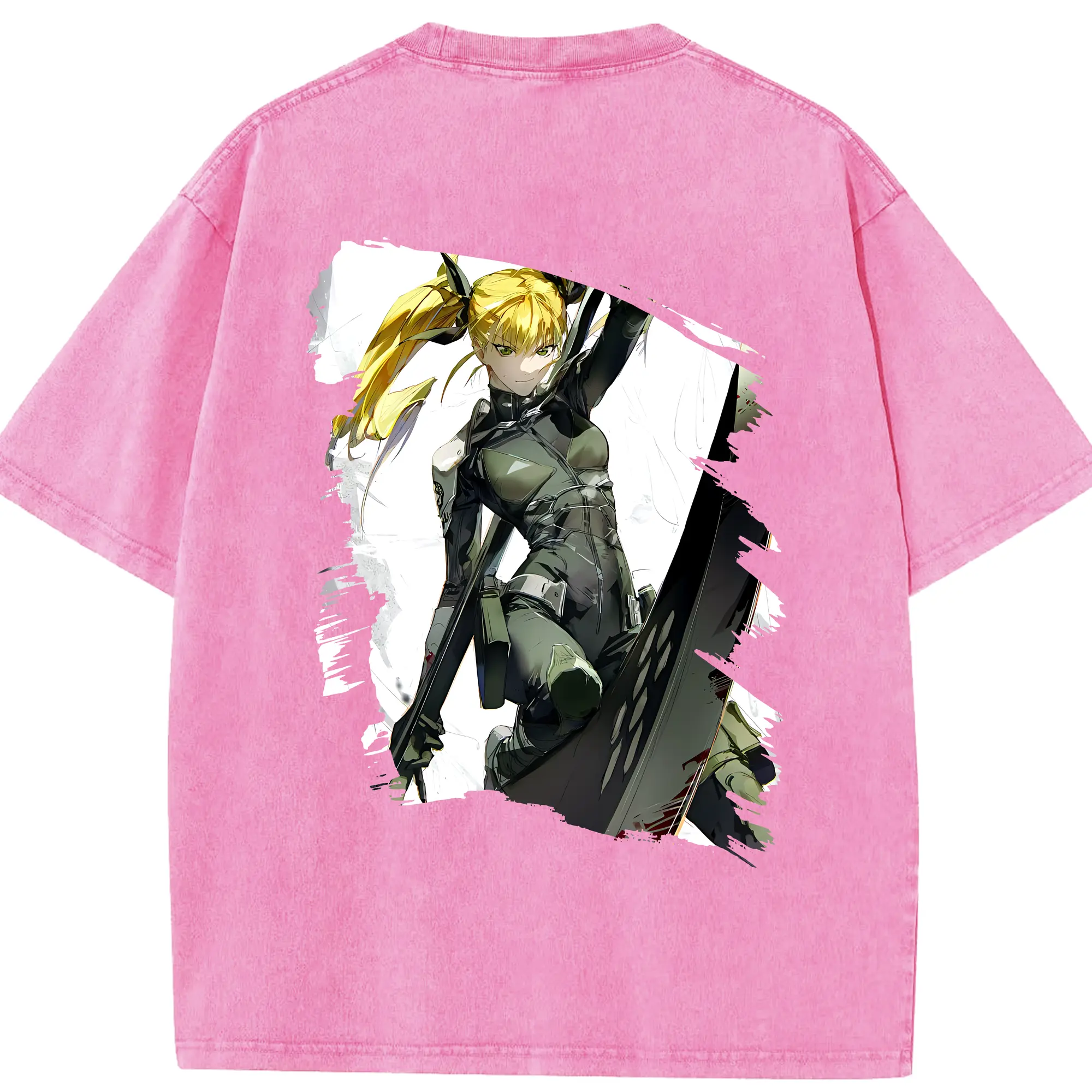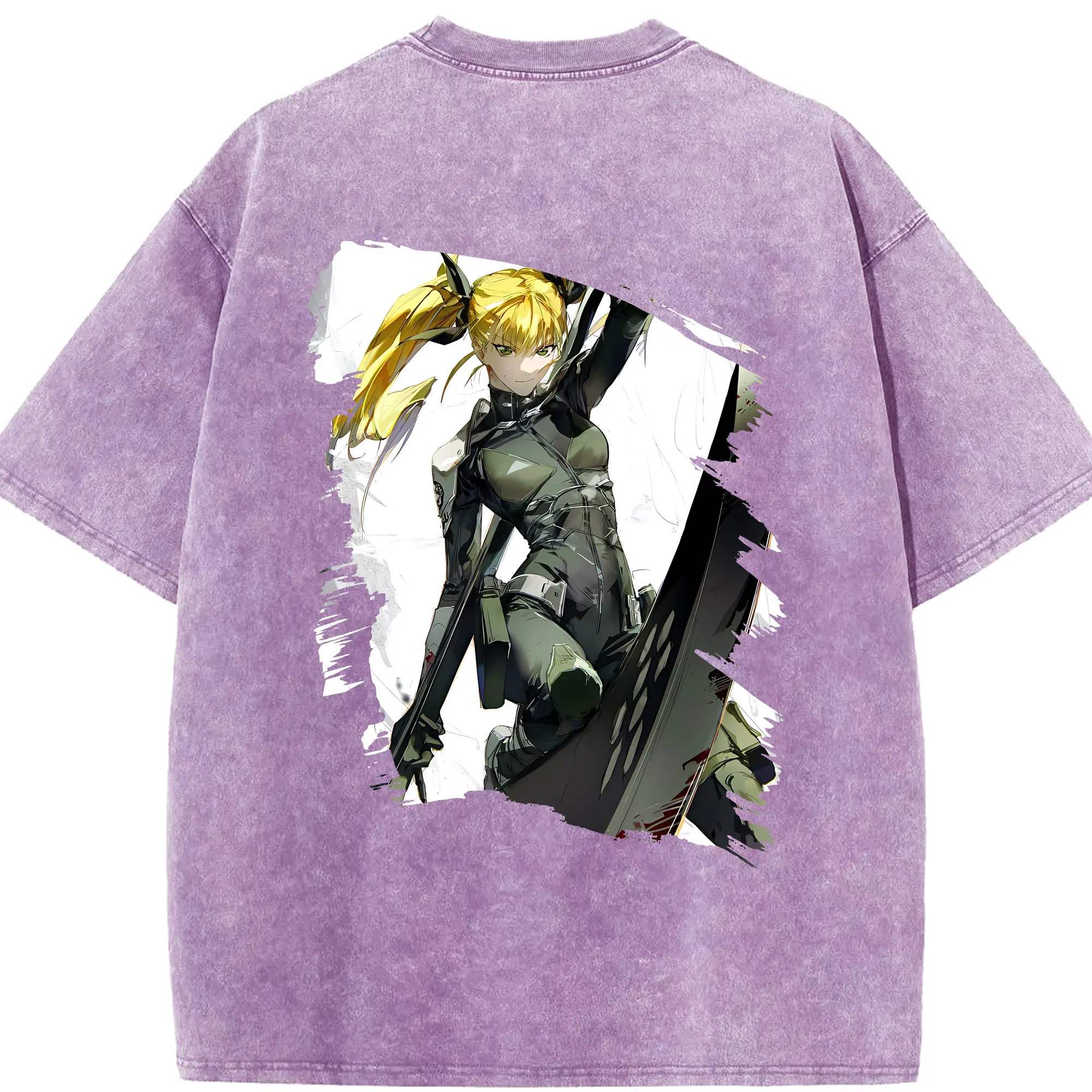 崩壊:スターレイル グッズ 銀狼 - 綿100% ヴィンテージ風 半袖Tシャツ ・ 背面プリント ・ 柔らか肌触り ・ 通気性 快適 ・ スポーツ カジュアル 外出用
