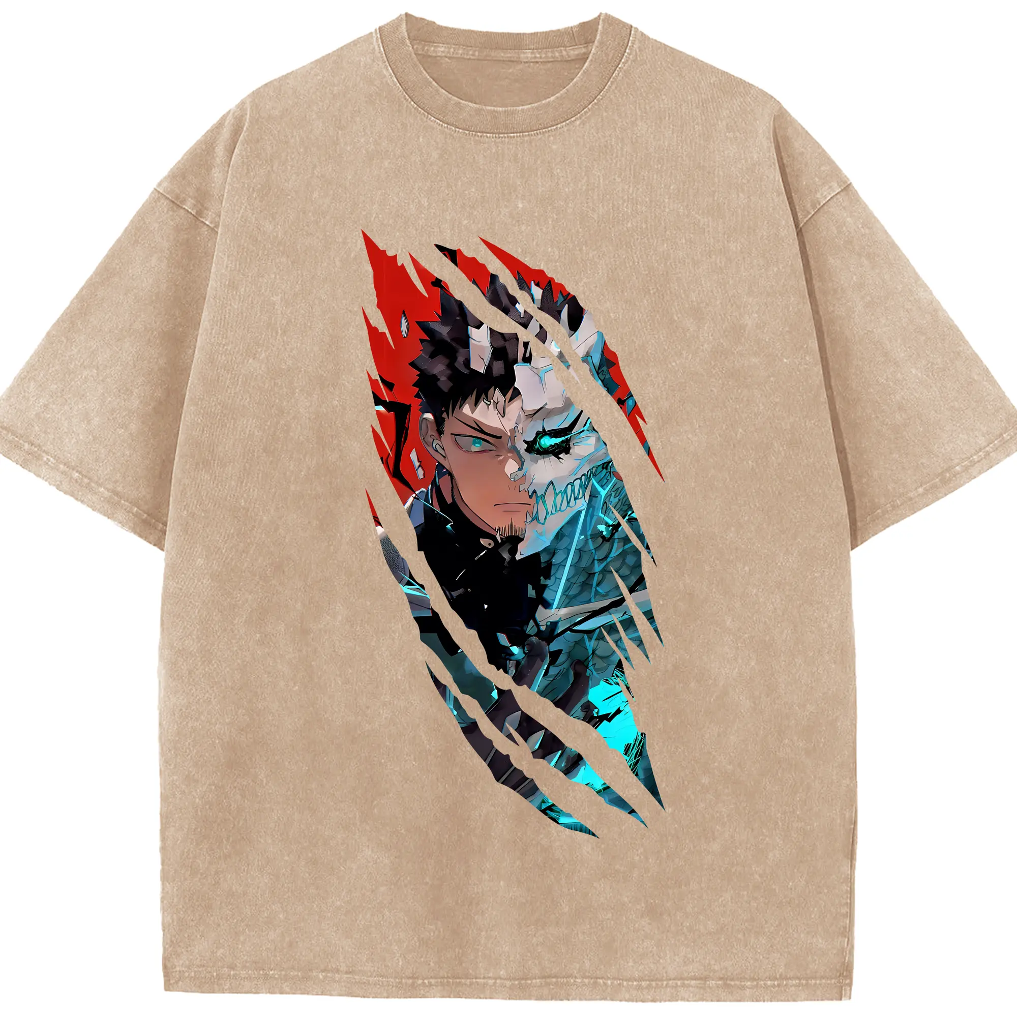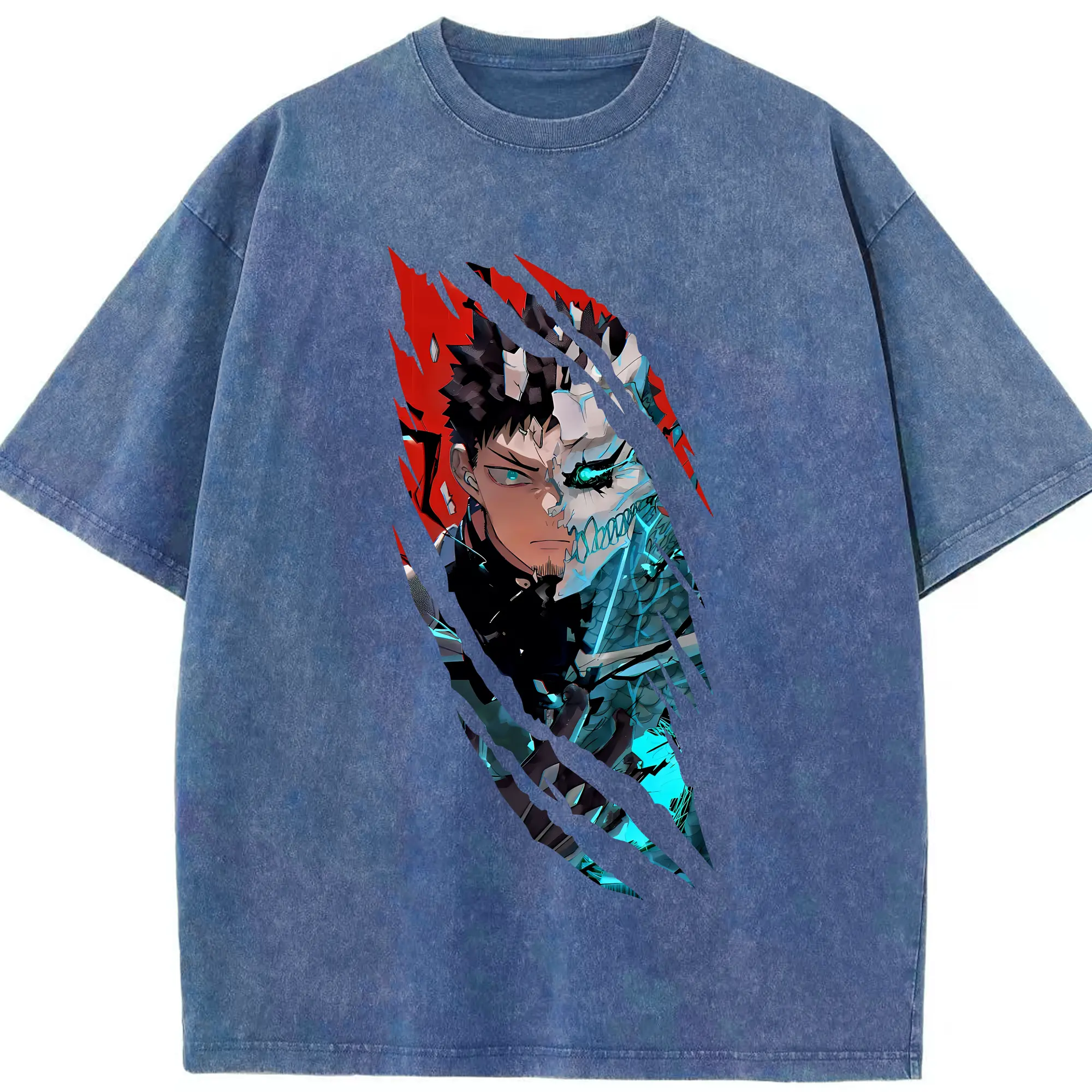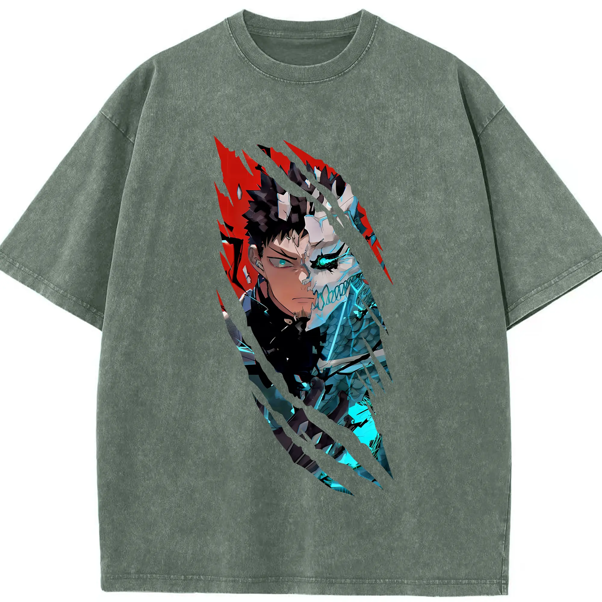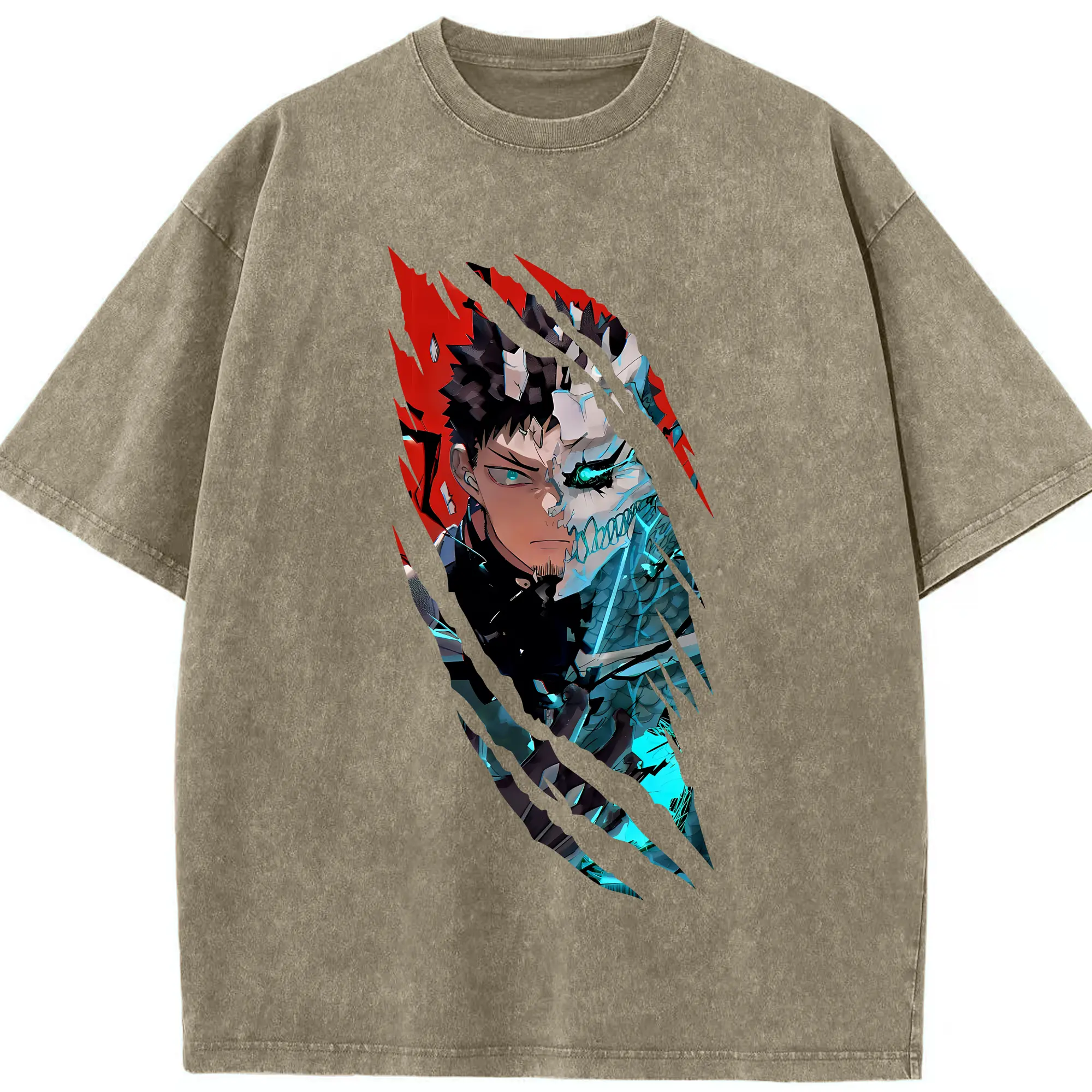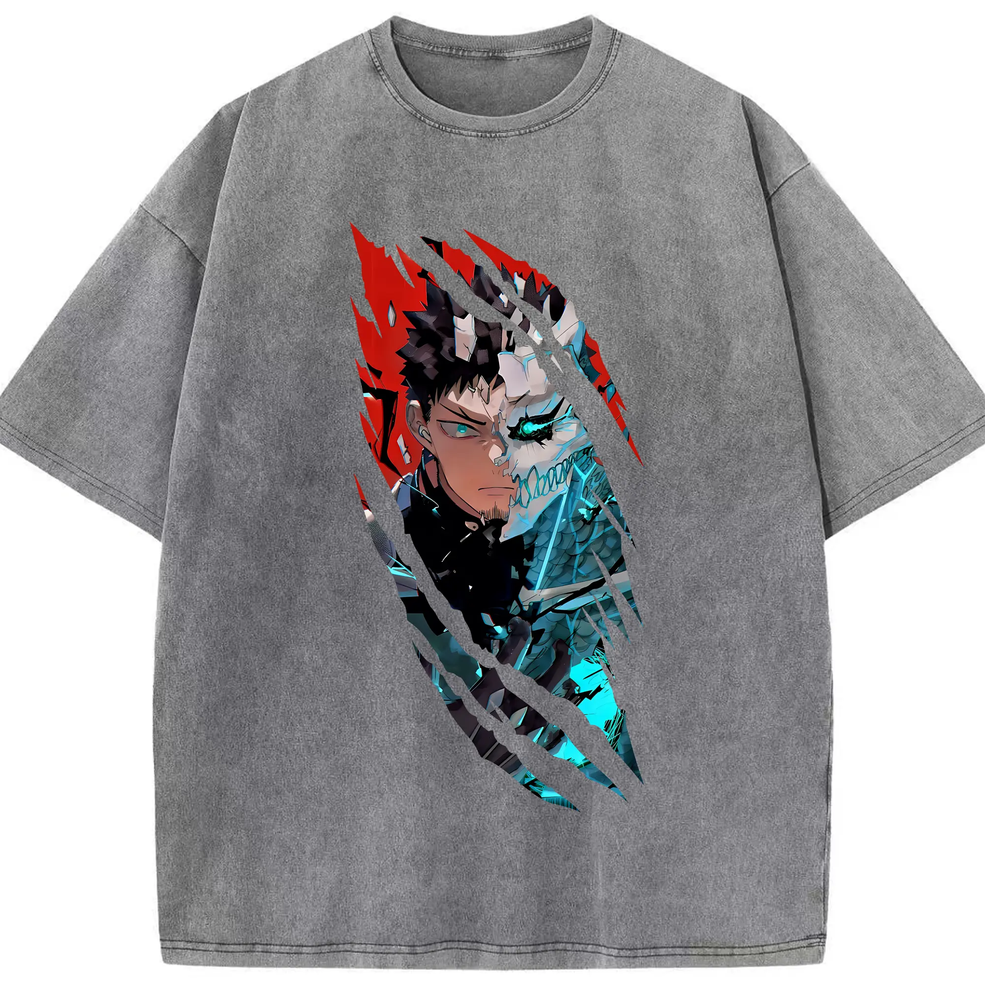 怪獣8号 グッズ,日比野カフカ - 綿100% ヴィンテージ風 半袖Tシャツ ・ 背面プリント ・ 柔らか肌触り ・ 通気性 快適 ・ スポーツ カジュアル 外出用