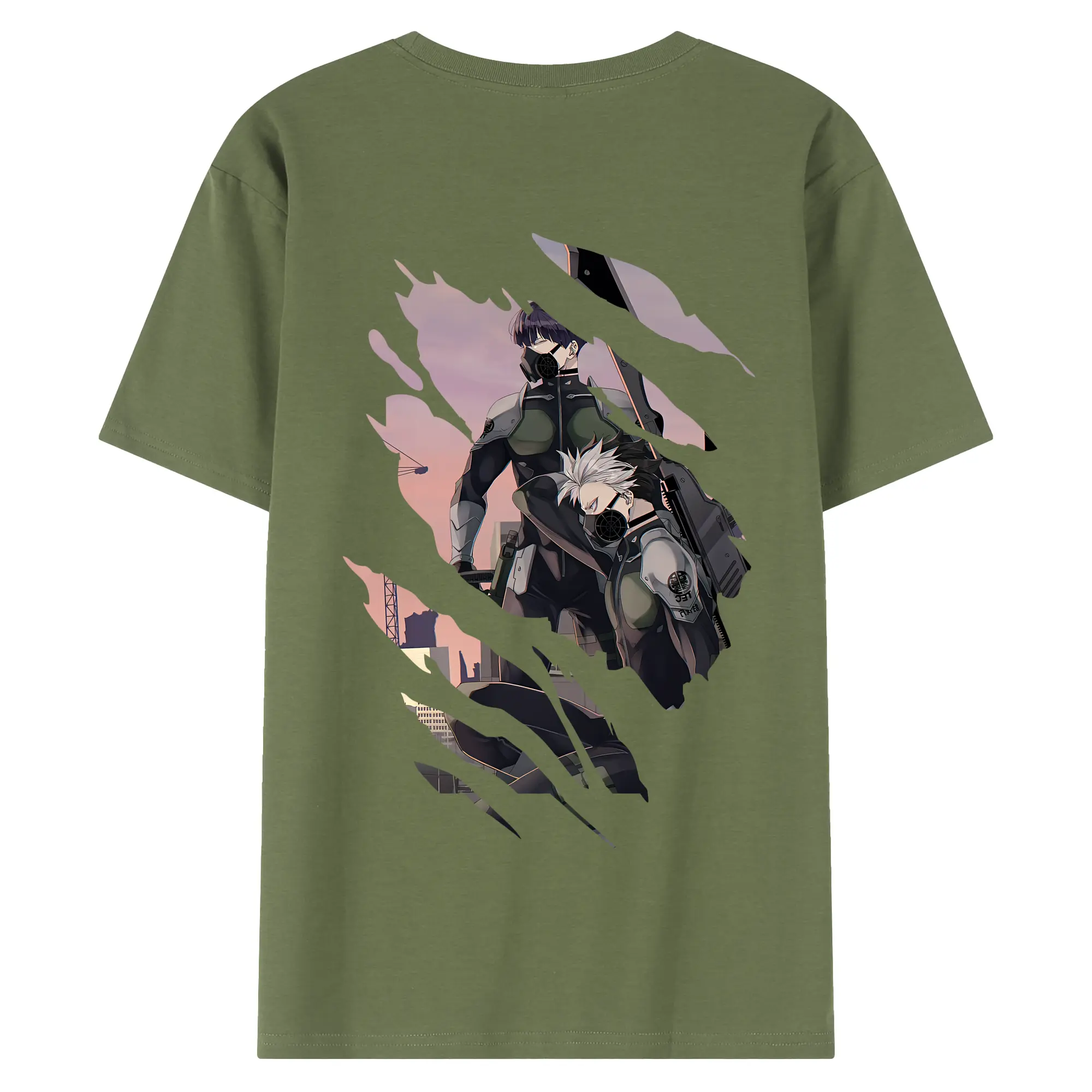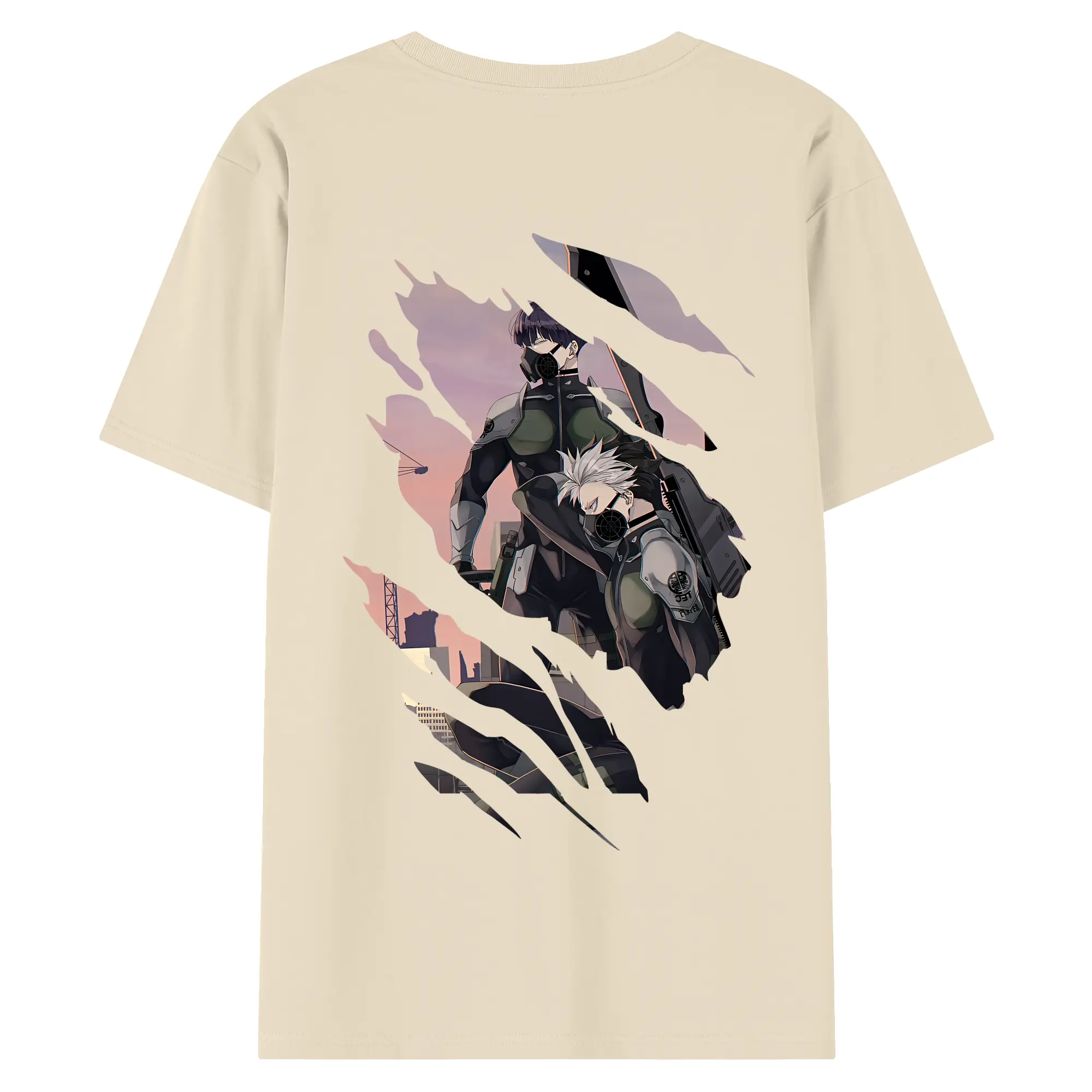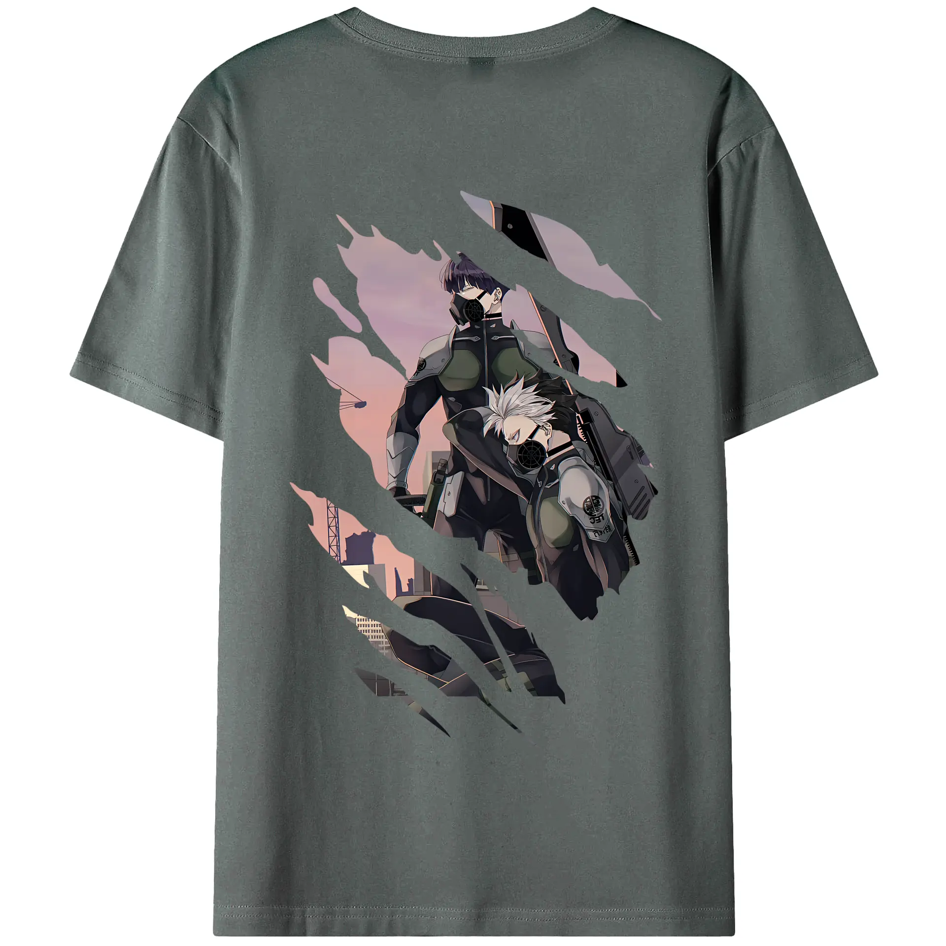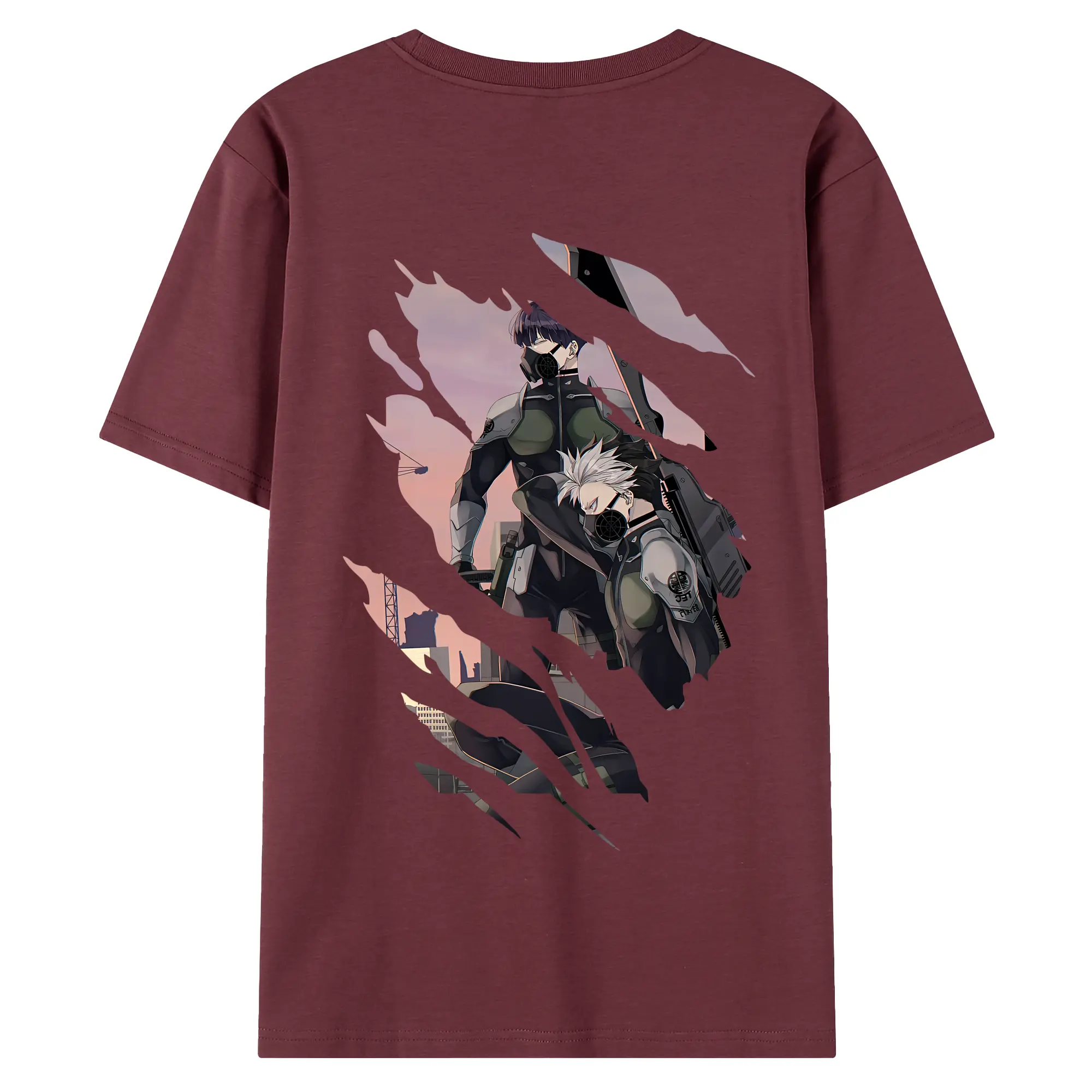 怪獣8号 グッズ,鳴海弦 - 綿100% ヴィンテージ風 半袖Tシャツ ・ 背面プリント ・ 柔らか肌触り ・ 通気性 快適 ・ スポーツ カジュアル 外出用