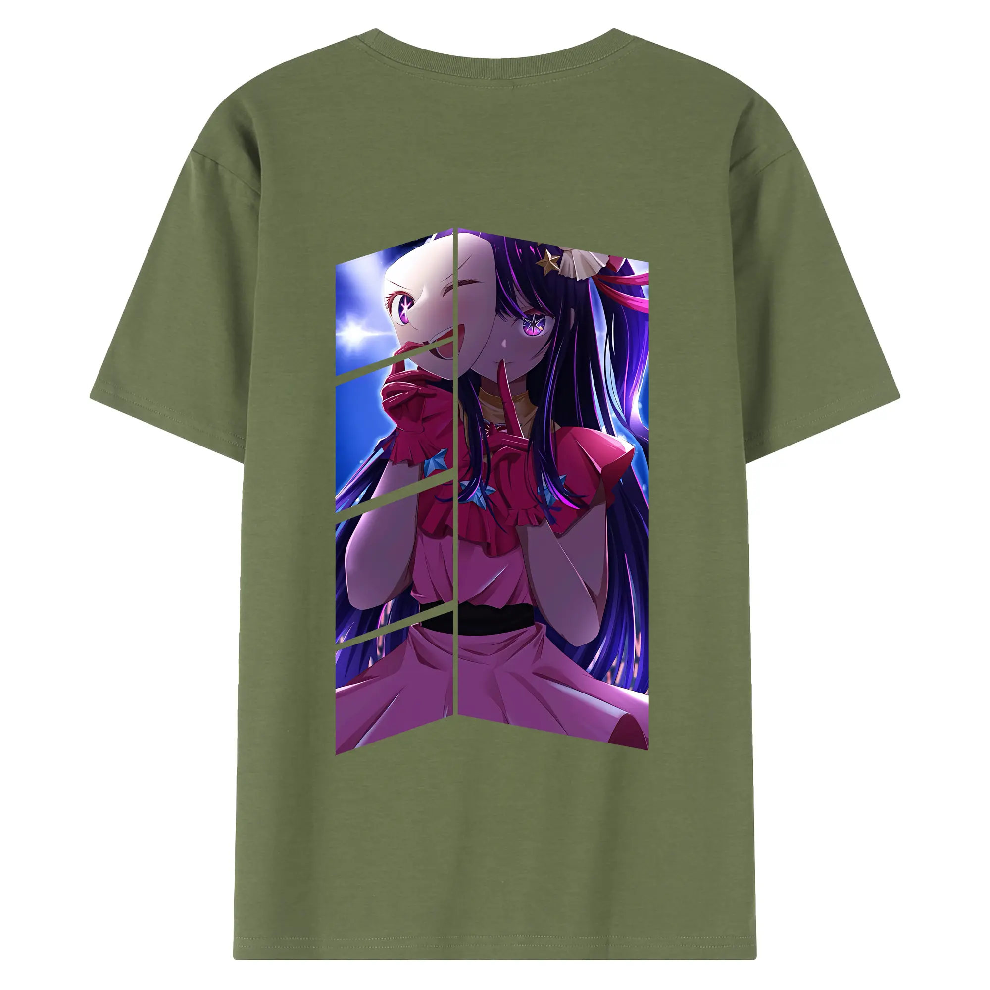推しの子 グッズ,星野アイ - 綿100% ヴィンテージ風 半袖Tシャツ ・ 背面プリント ・ 柔らか肌触り ・ 通気性 快適 ・ スポーツ カジュアル 外出用