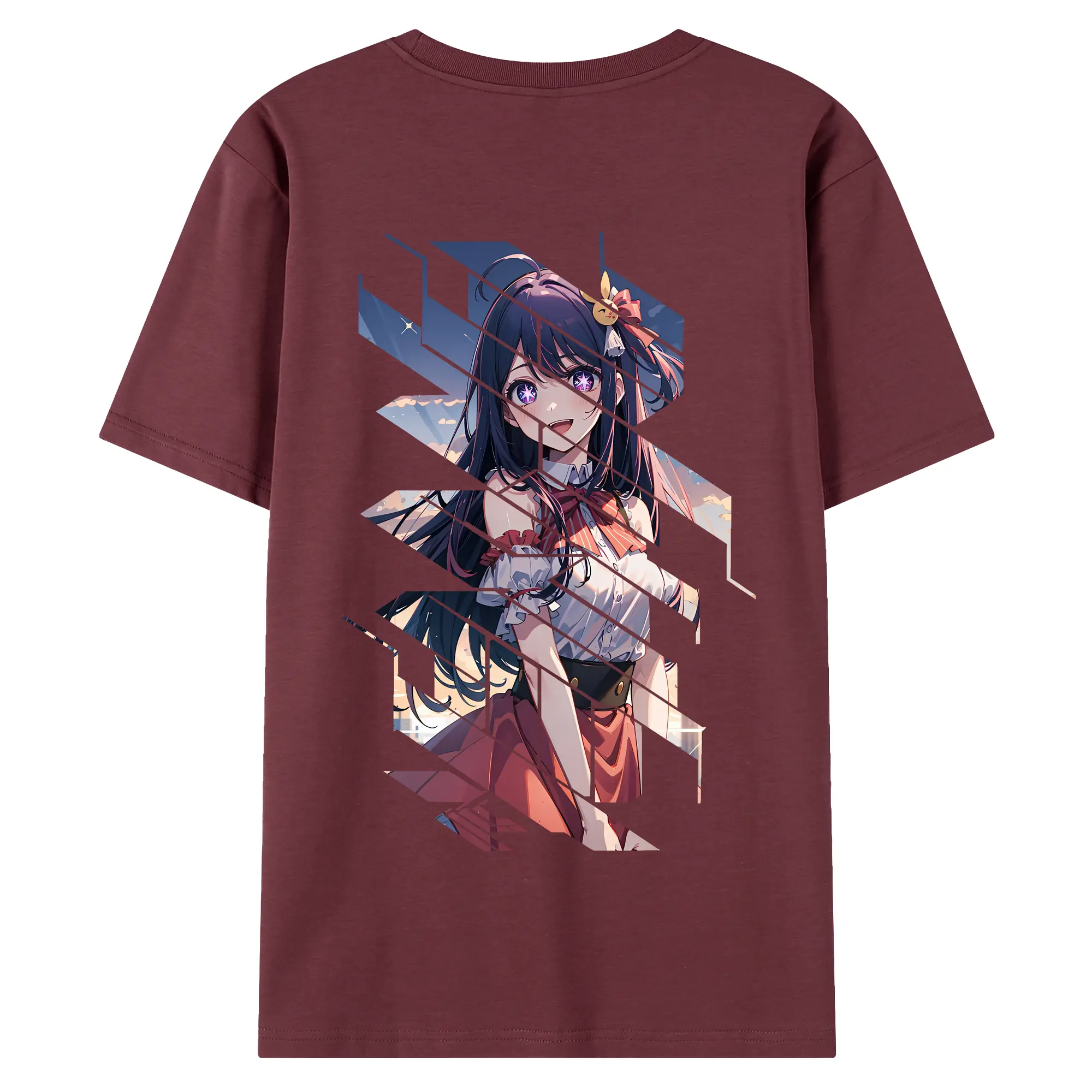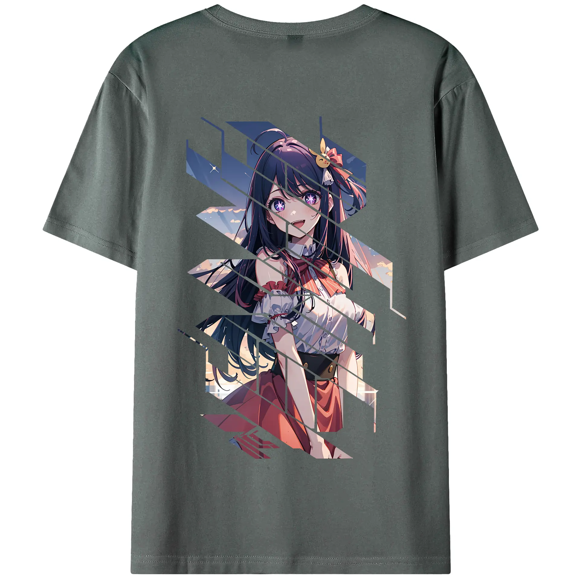 推しの子 グッズ,星野アイ - 綿100% ヴィンテージ風 半袖Tシャツ ・ 背面プリント ・ 柔らか肌触り ・ 通気性 快適 ・ スポーツ カジュアル 外出用