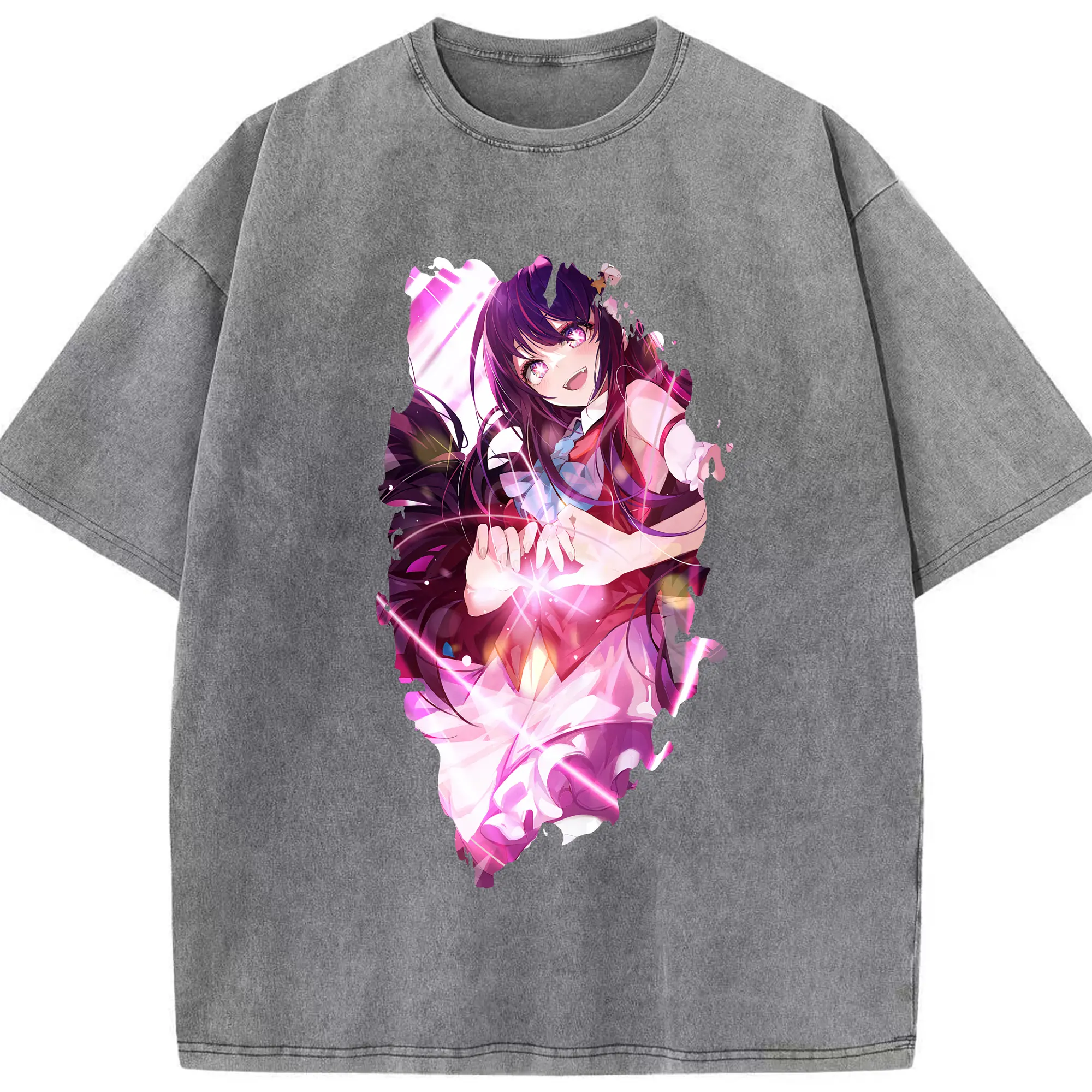 推しの子 グッズ,星野アイ - 綿100% ヴィンテージ風 半袖Tシャツ ・ 背面プリント ・ 柔らか肌触り ・ 通気性 快適 ・ スポーツ カジュアル 外出用