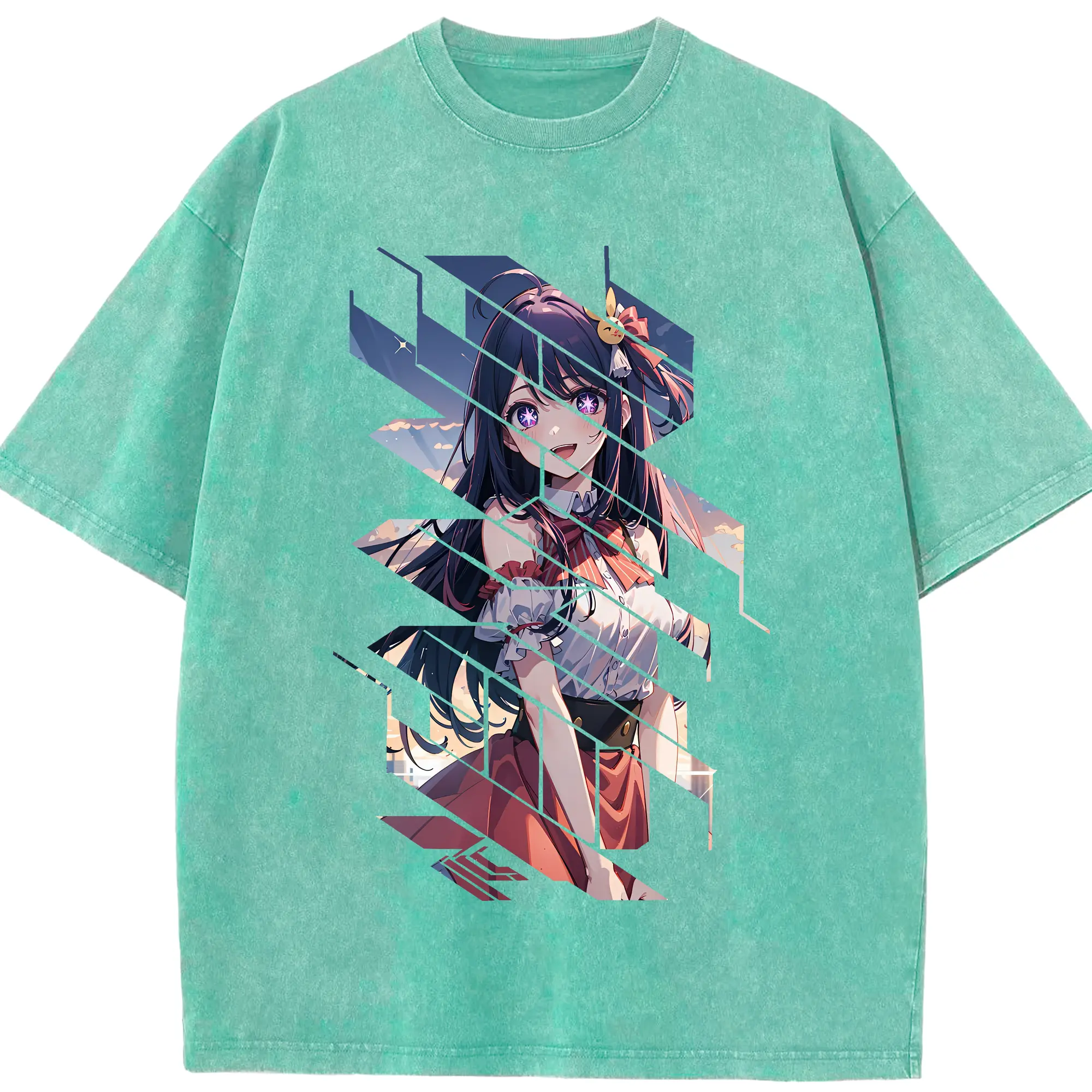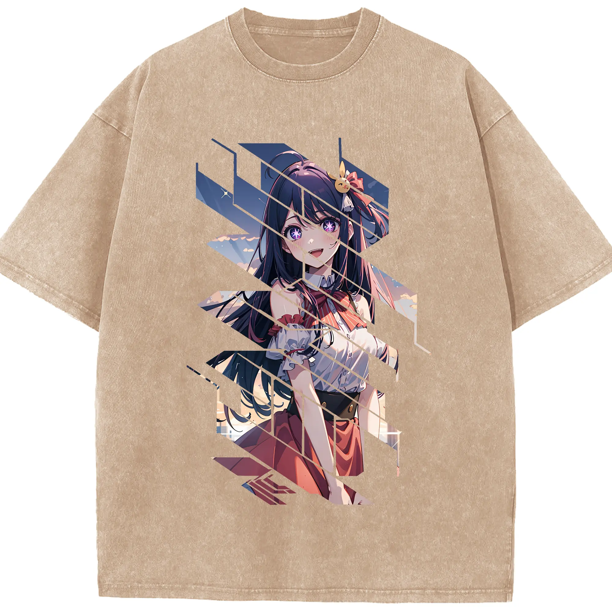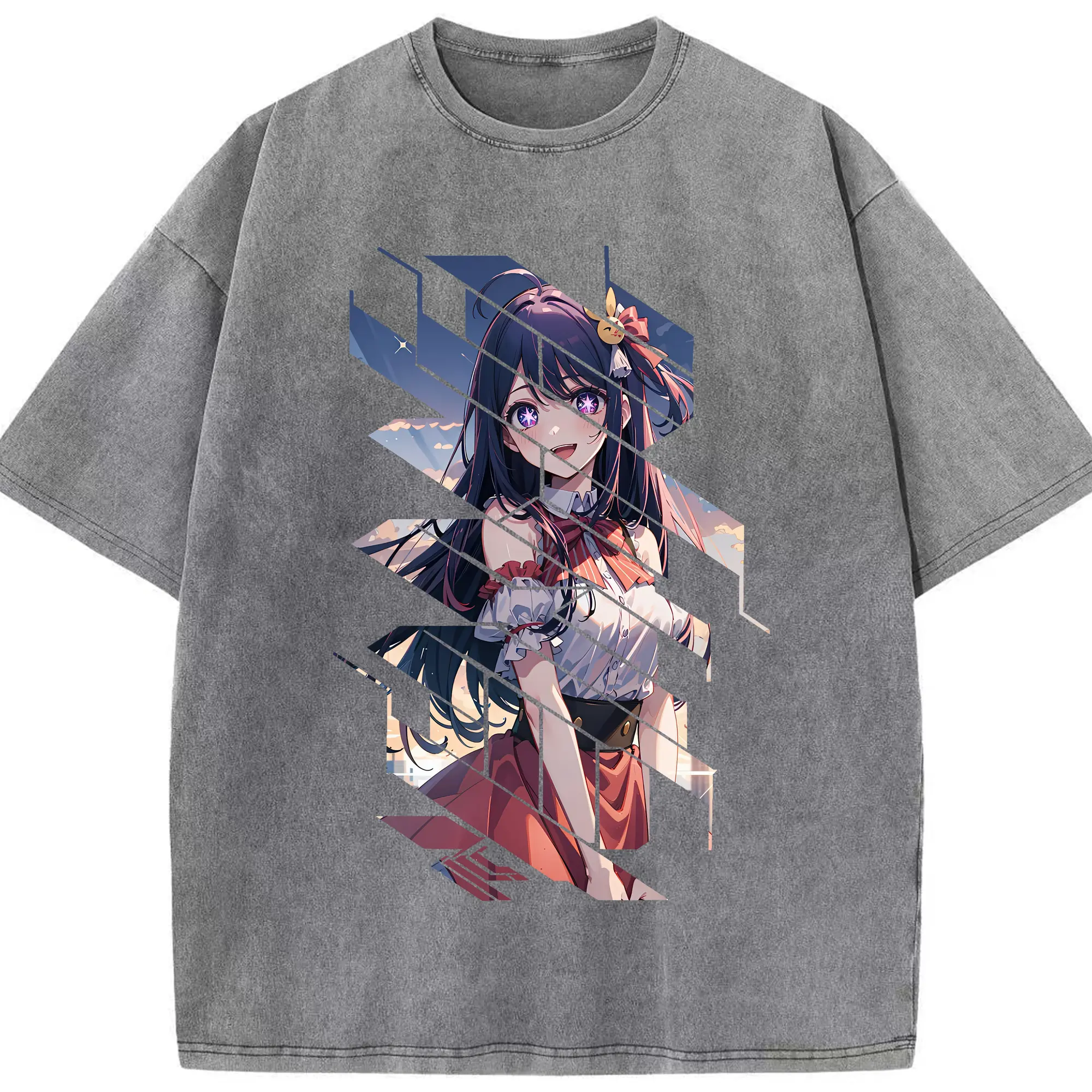 推しの子 グッズ,星野アイ - 綿100% ヴィンテージ風 半袖Tシャツ ・ 背面プリント ・ 柔らか肌触り ・ 通気性 快適 ・ スポーツ カジュアル 外出用