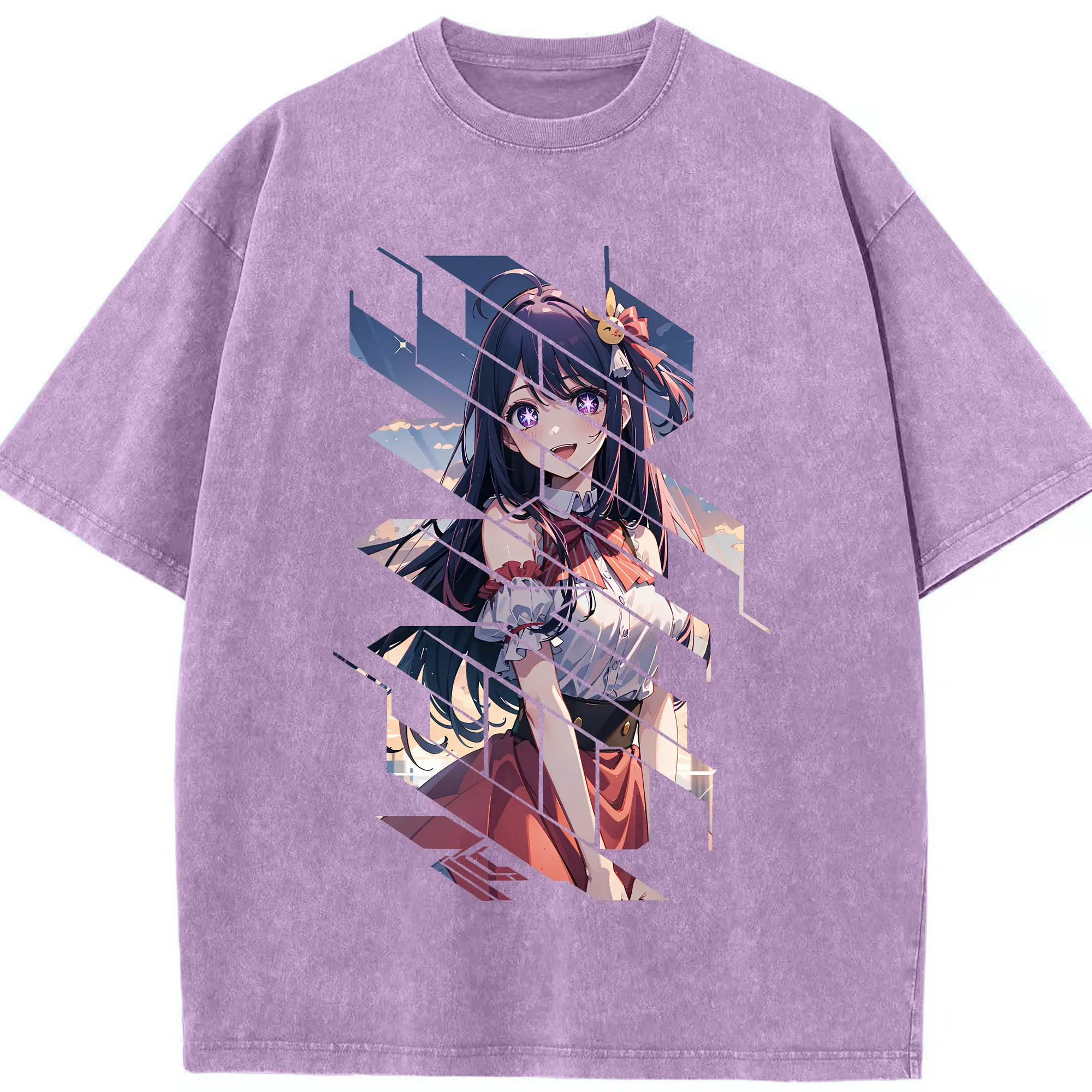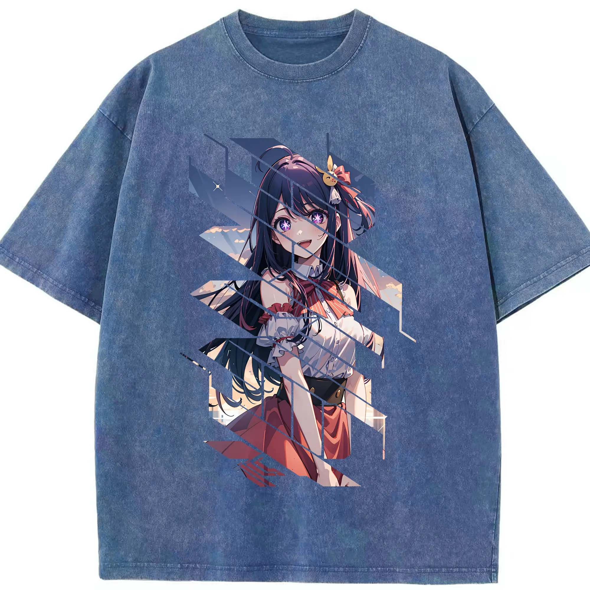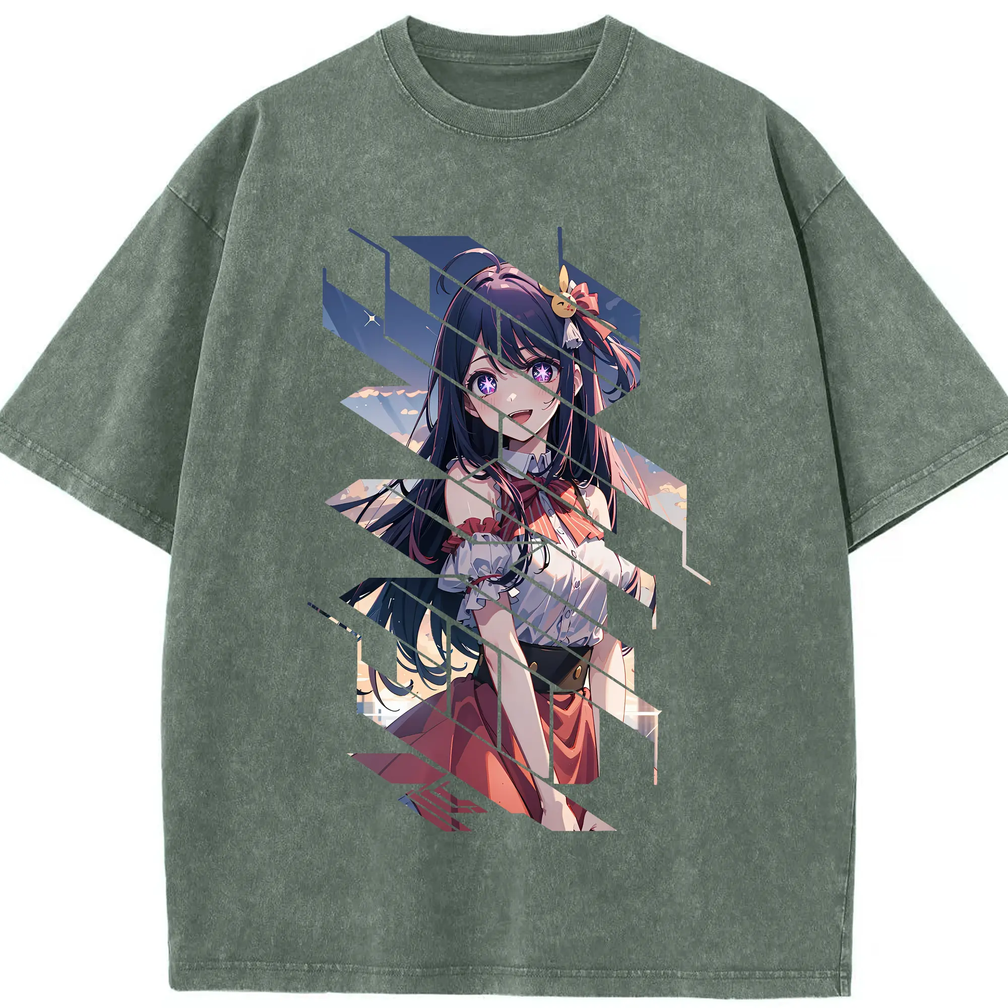 推しの子 グッズ,星野アイ - 綿100% ヴィンテージ風 半袖Tシャツ ・ 背面プリント ・ 柔らか肌触り ・ 通気性 快適 ・ スポーツ カジュアル 外出用