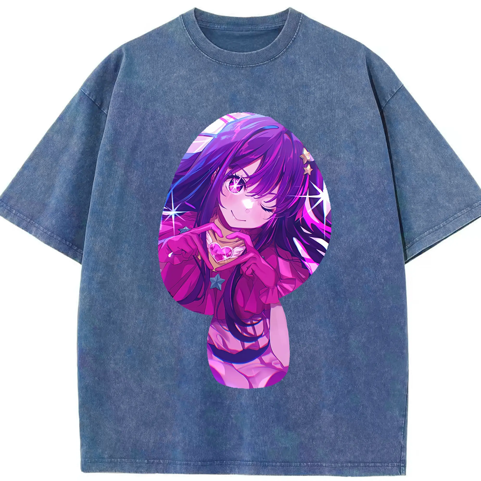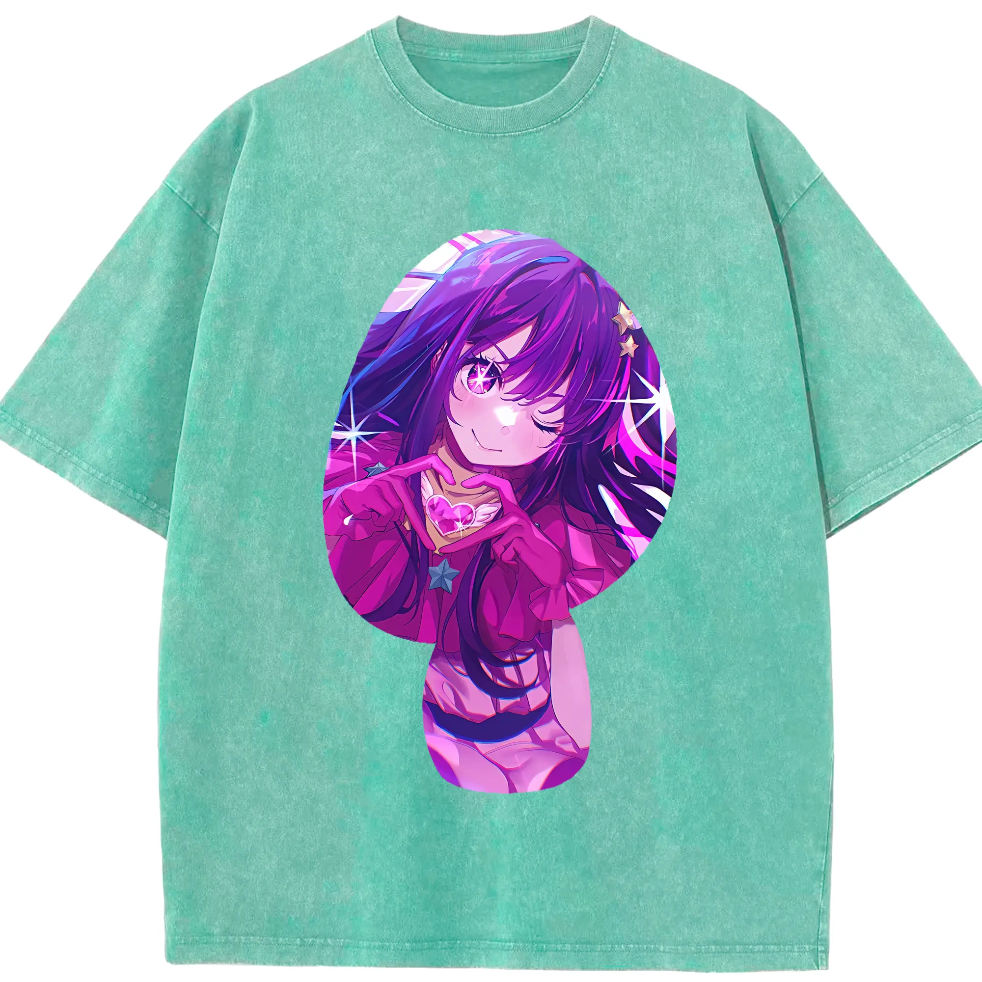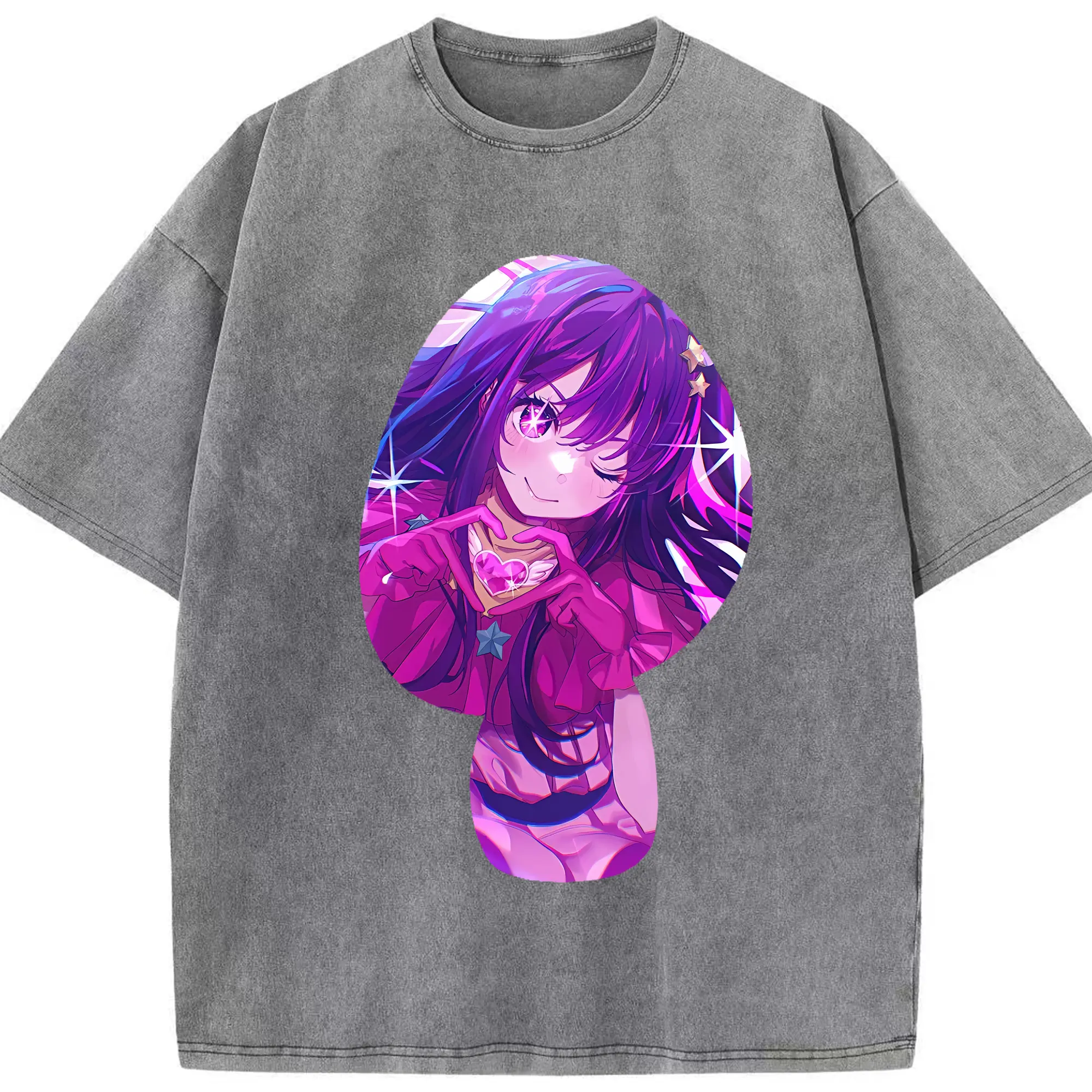 推しの子 グッズ,星野アイ - 綿100% ヴィンテージ風 半袖Tシャツ ・ 背面プリント ・ 柔らか肌触り ・ 通気性 快適 ・ スポーツ カジュアル 外出用