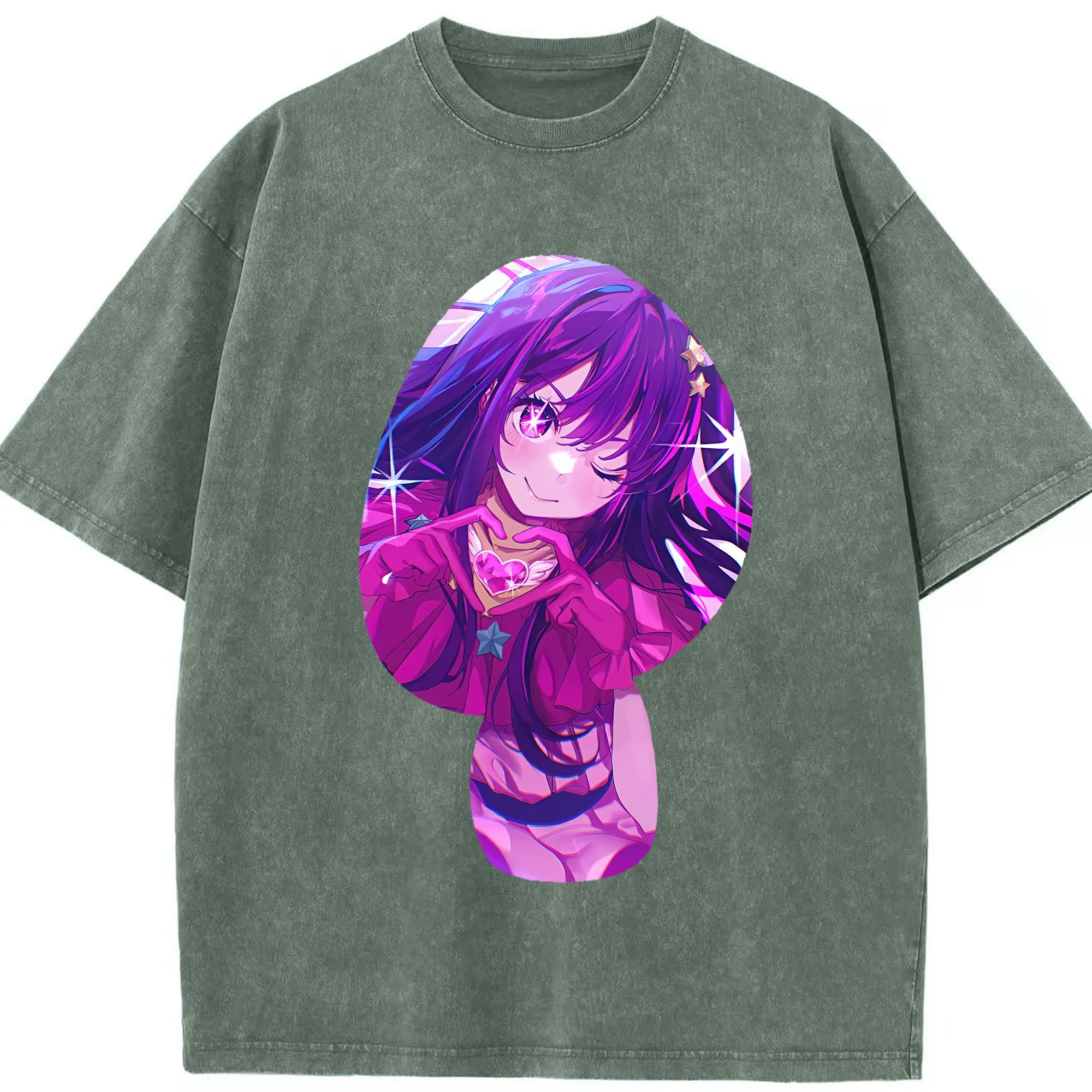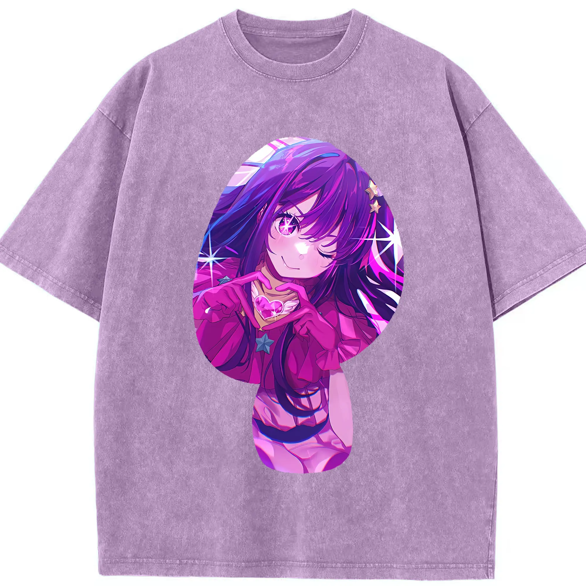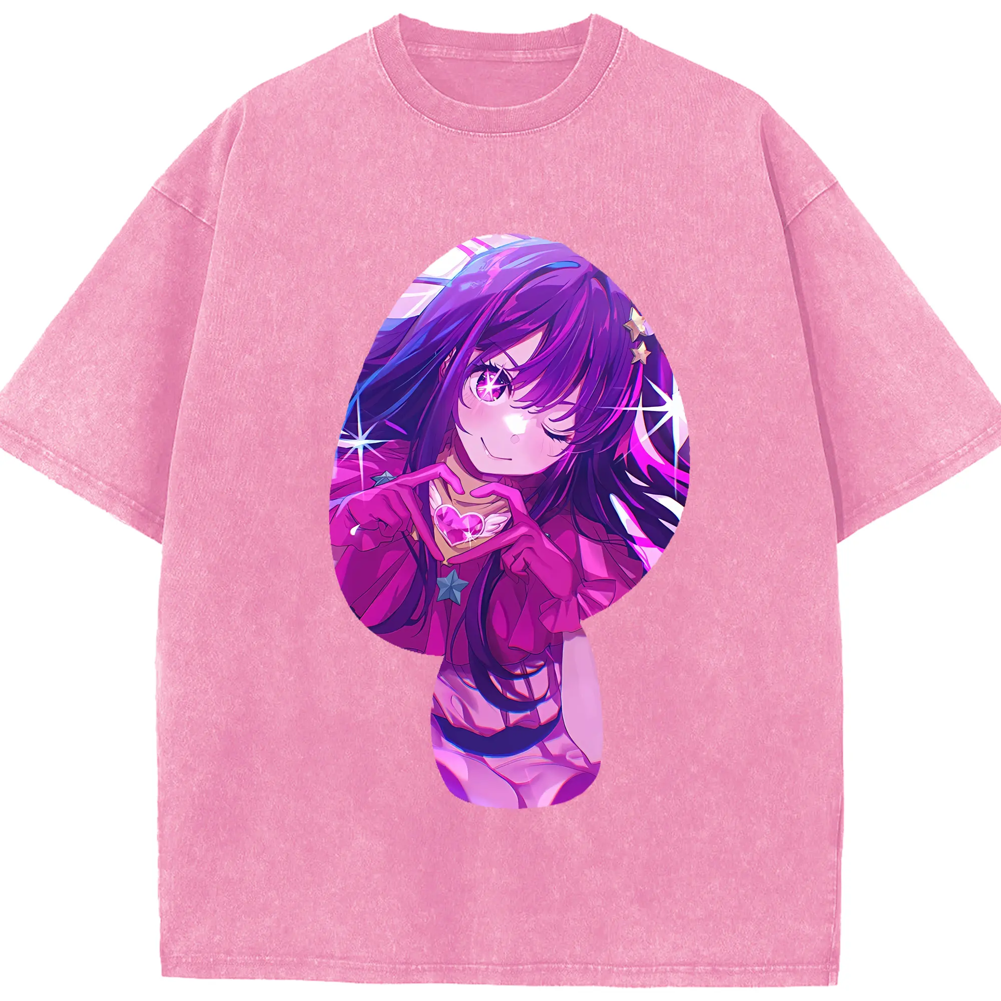 推しの子 グッズ,星野アイ - 綿100% ヴィンテージ風 半袖Tシャツ ・ 背面プリント ・ 柔らか肌触り ・ 通気性 快適 ・ スポーツ カジュアル 外出用
