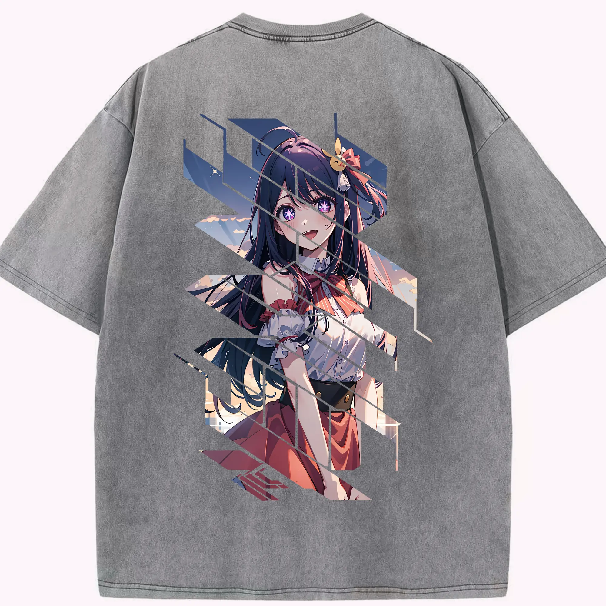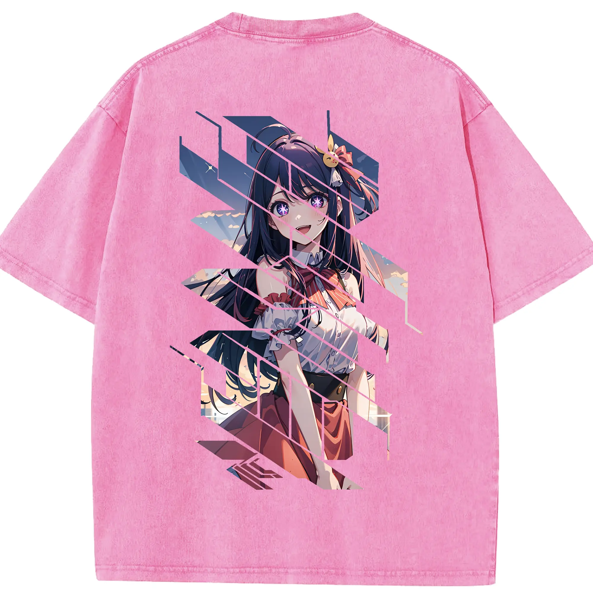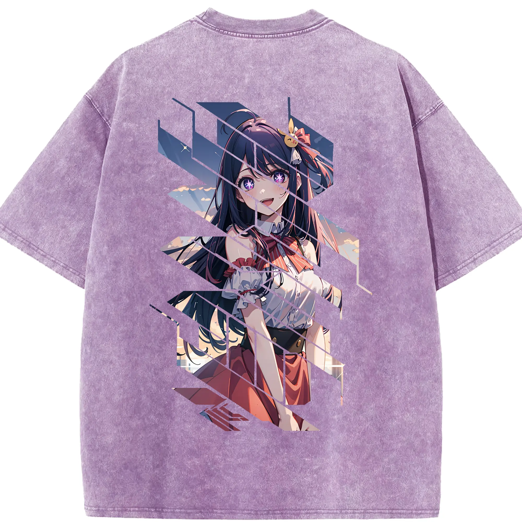 推しの子 グッズ,星野アイ - 綿100% ヴィンテージ風 半袖Tシャツ ・ フロントプリント ・ 柔らか肌触り ・ 通気性 快適 ・ スポーツ カジュアル 外出用
