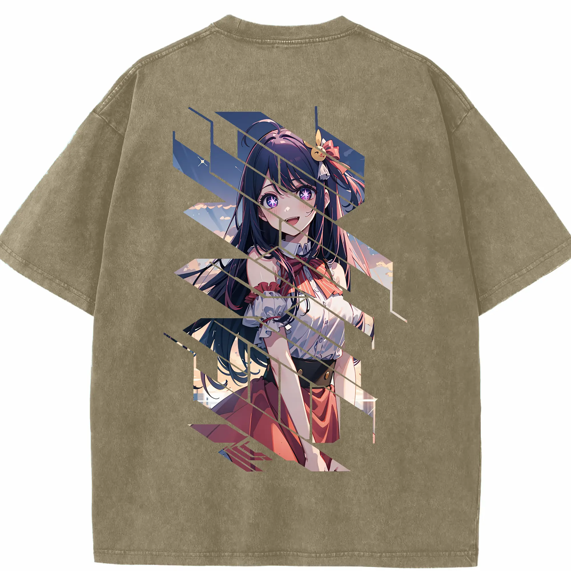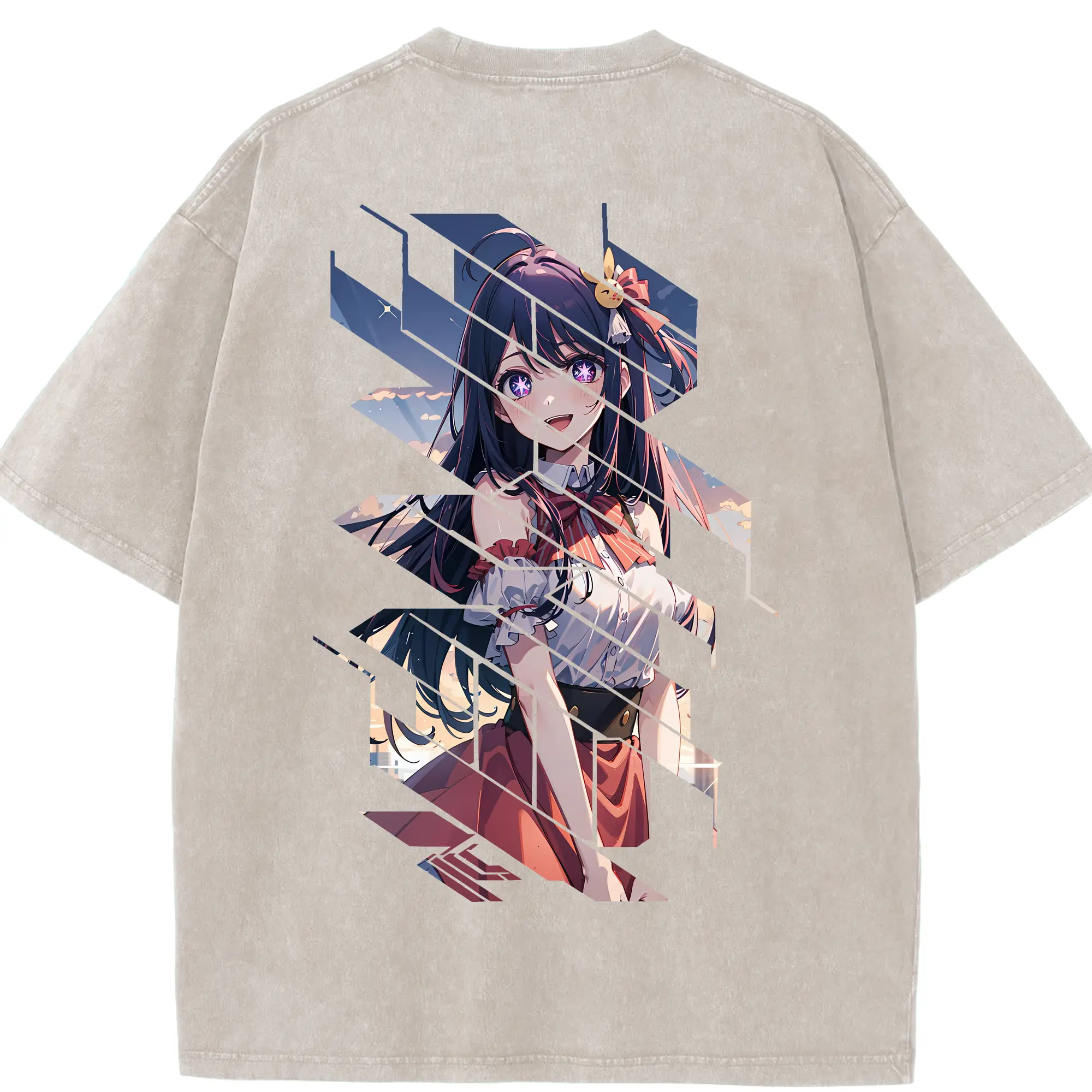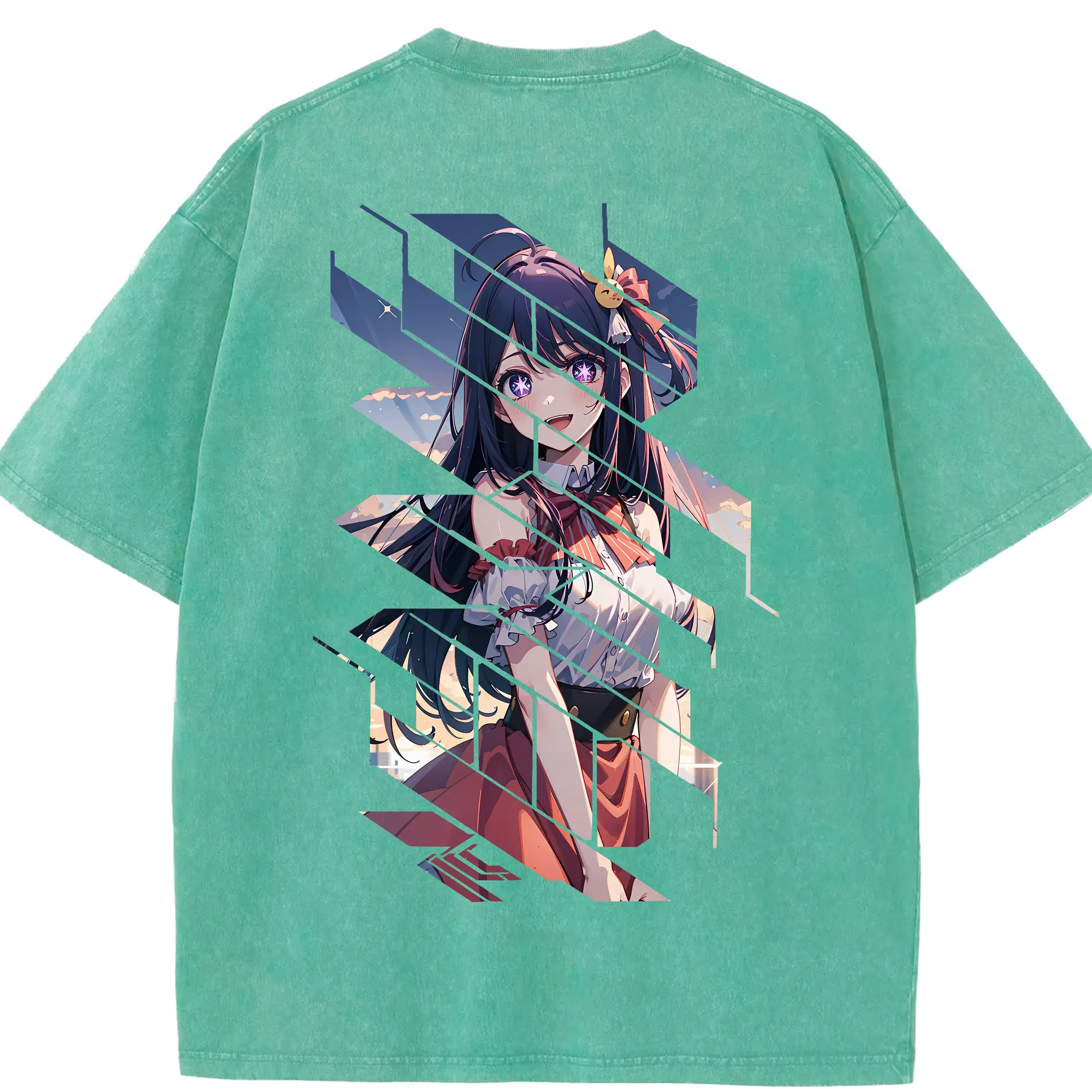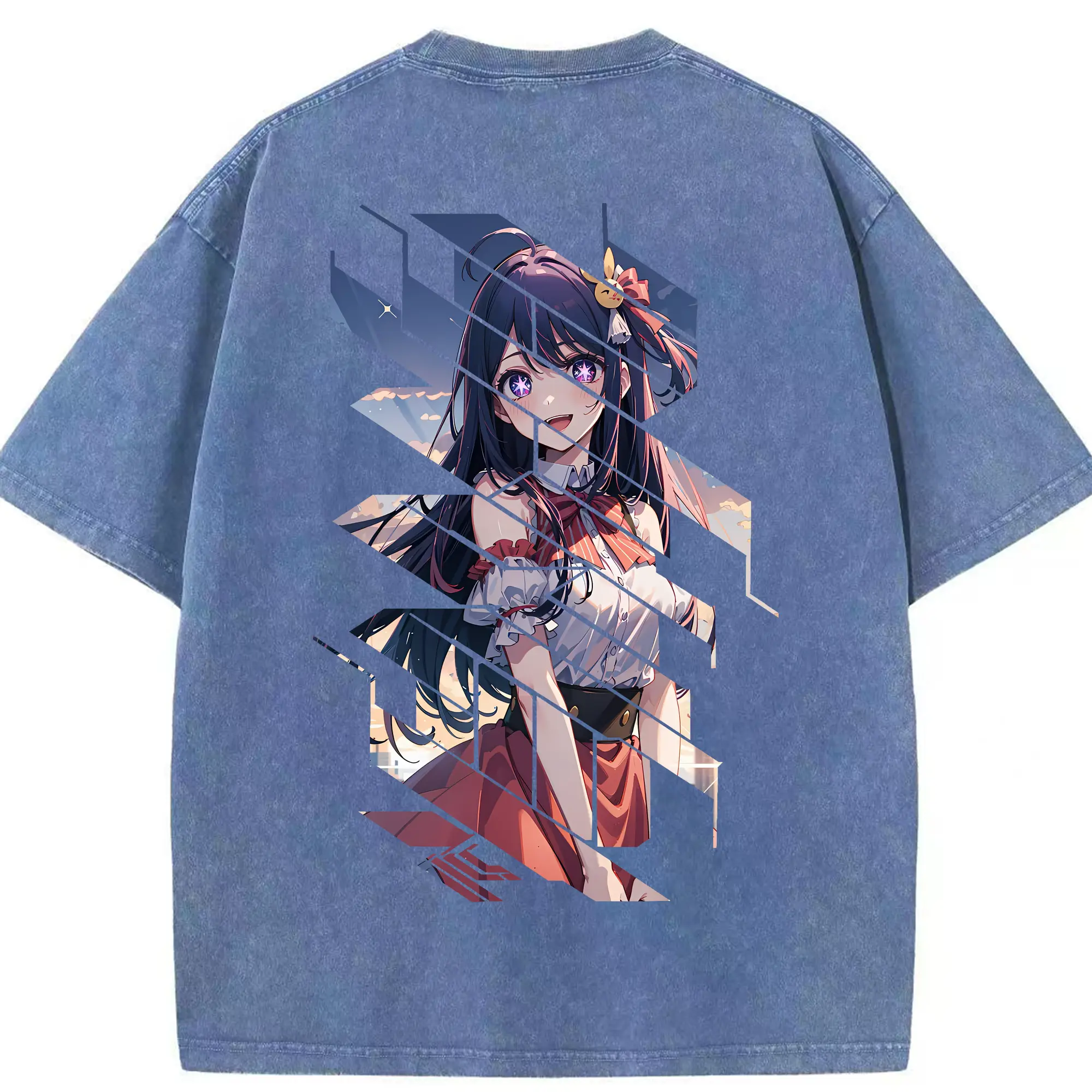 推しの子 グッズ,星野アイ - 綿100% ヴィンテージ風 半袖Tシャツ ・ フロントプリント ・ 柔らか肌触り ・ 通気性 快適 ・ スポーツ カジュアル 外出用