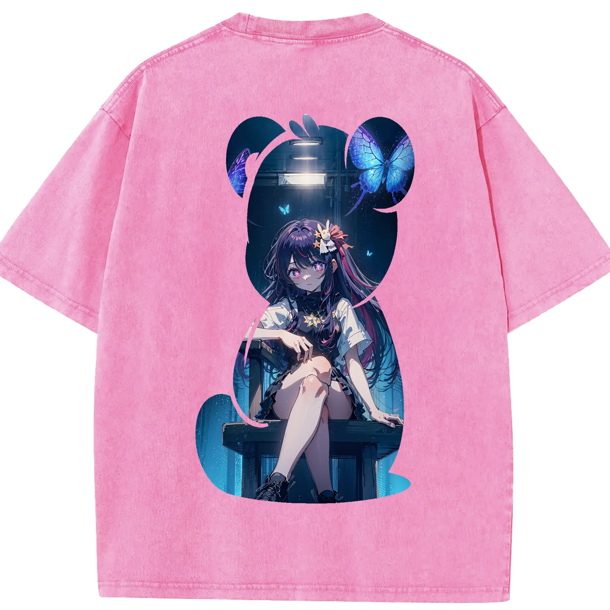 推しの子 グッズ,星野アイ - 綿100% ヴィンテージ風 半袖Tシャツ ・ 背面プリント ・ 柔らか肌触り ・ 通気性 快適 ・ スポーツ カジュアル 外出用