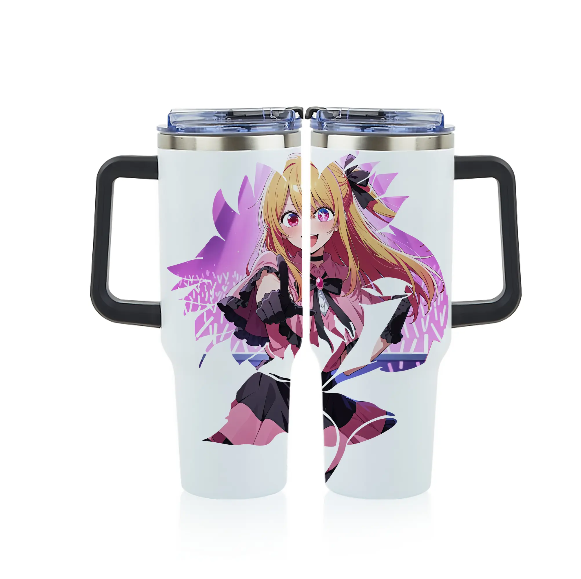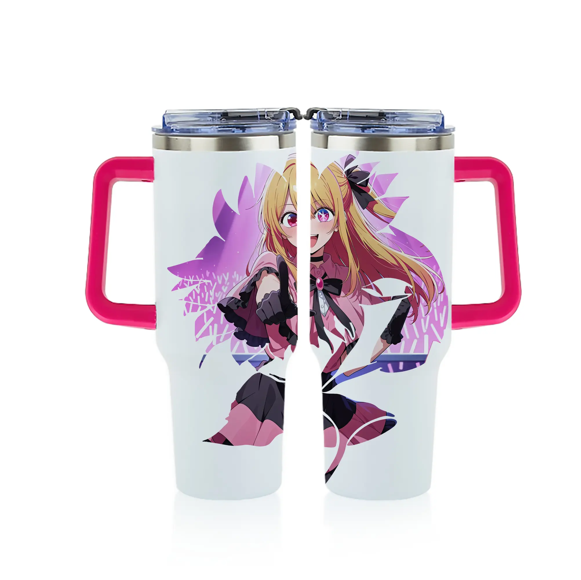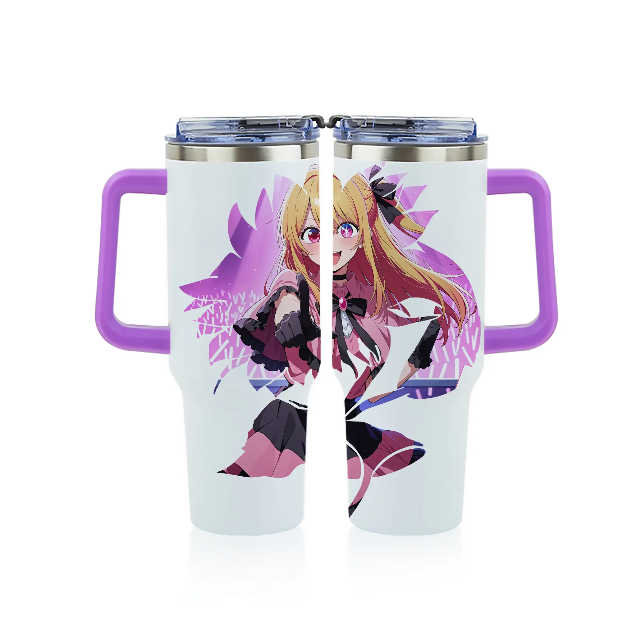 推しの子 グッズ,星野ルビー - 1200mL フルプリント車用タンブラー ・ 304ステンレス 内側 ・ 201ステンレス 外側 ・ 保温 保冷 ・ 通勤 ドライブ アウトドア用