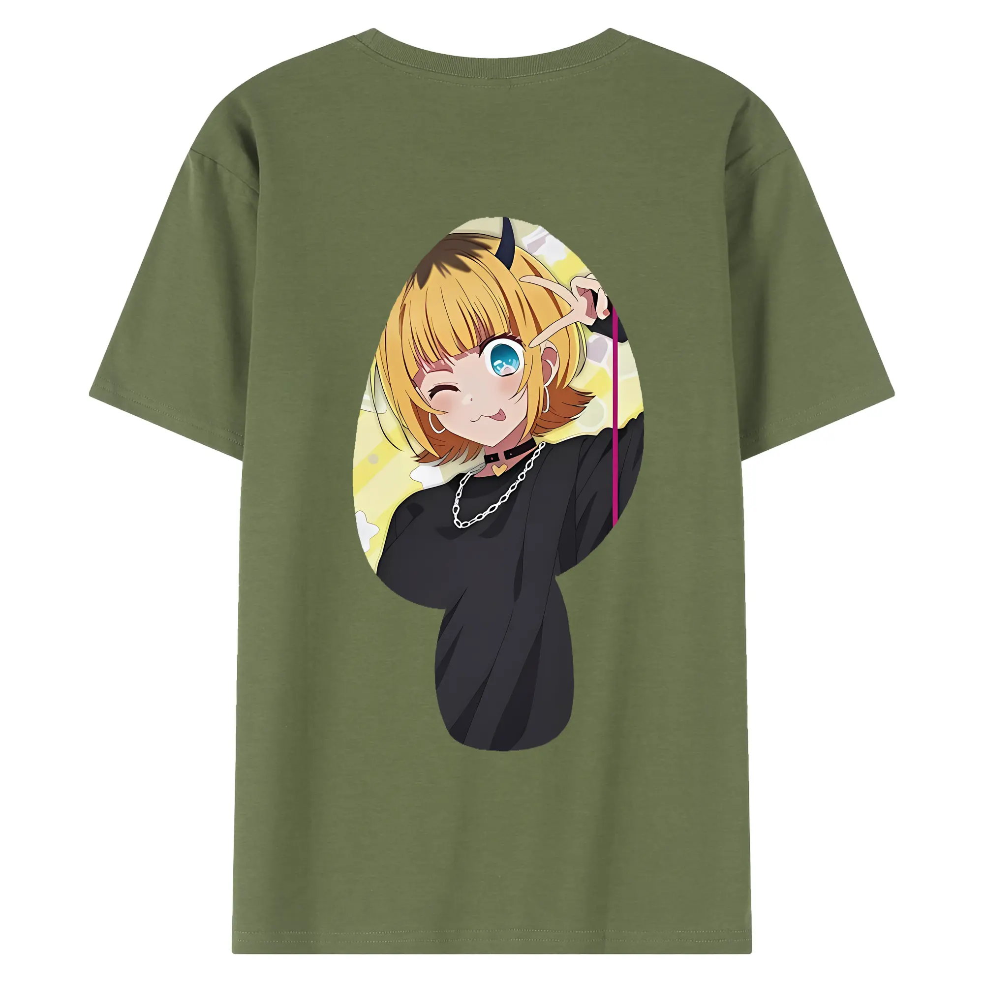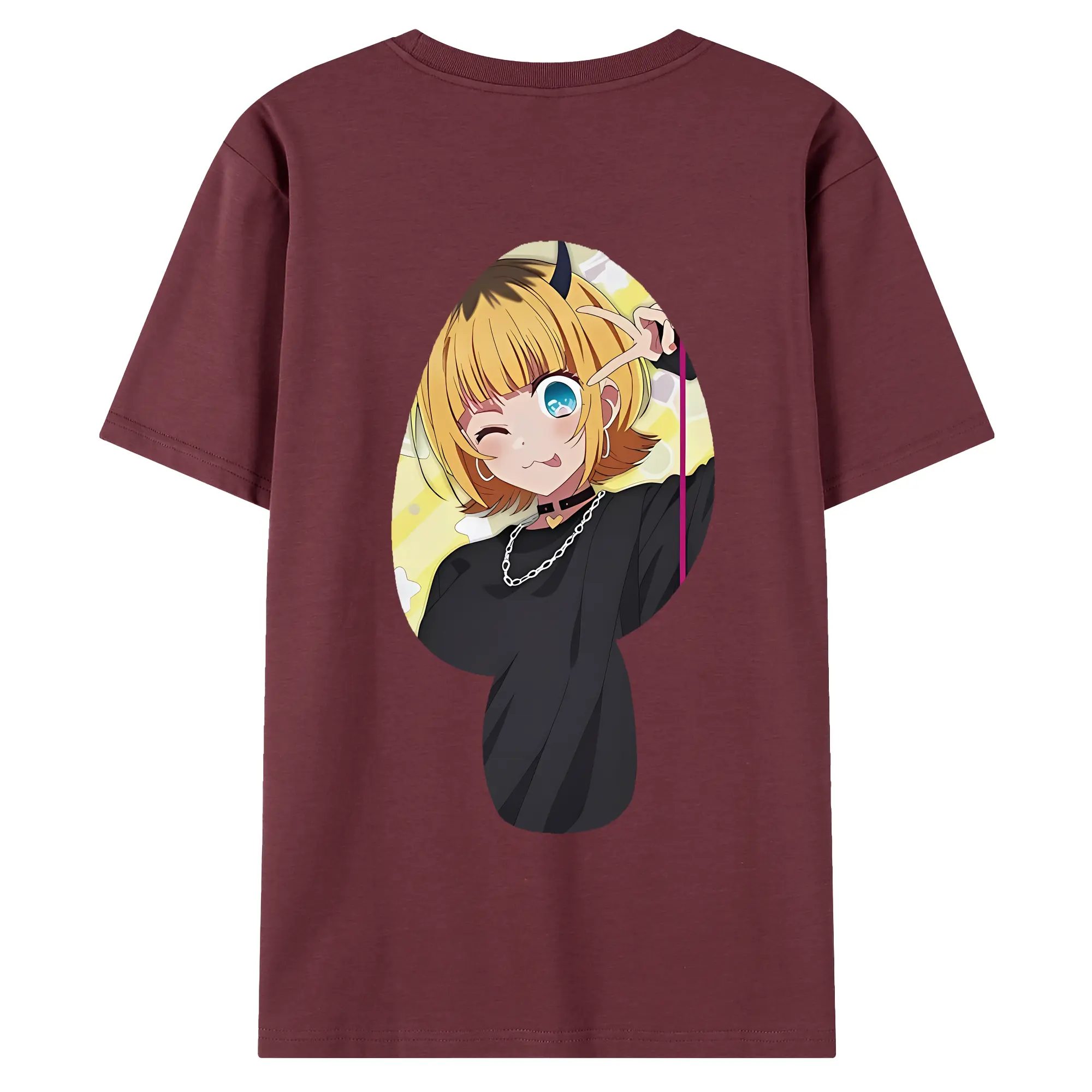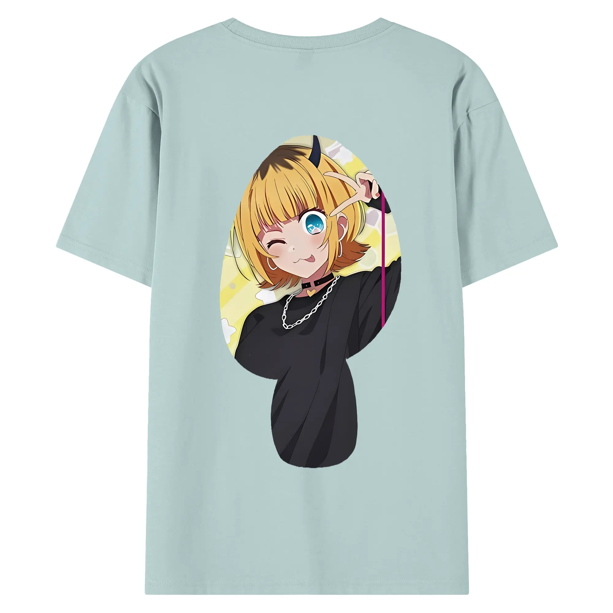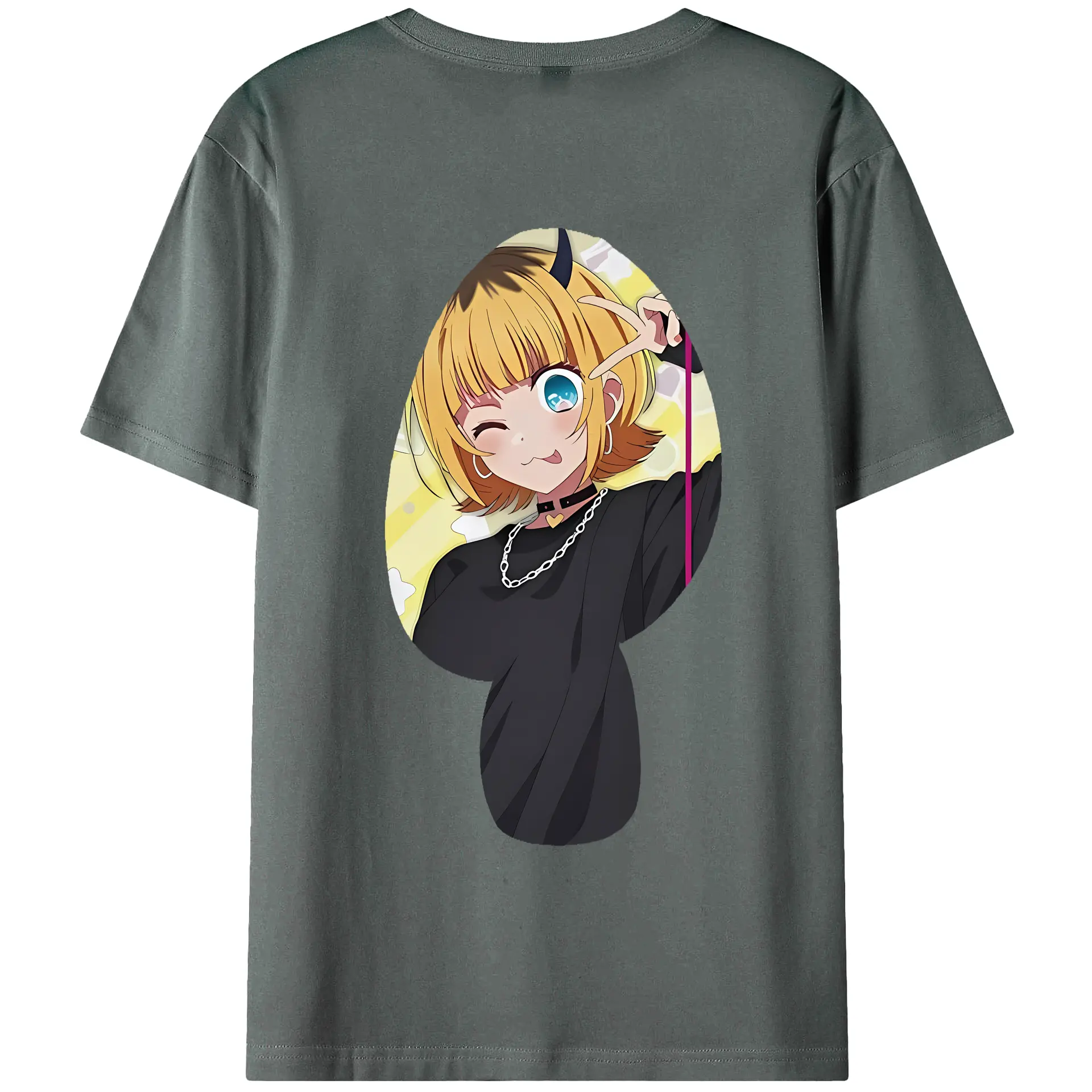 推しの子 グッズ,MEMちょ - 綿100% ヴィンテージ風 半袖Tシャツ ・ 背面プリント ・ 柔らか肌触り ・ 通気性 快適 ・ スポーツ カジュアル 外出用