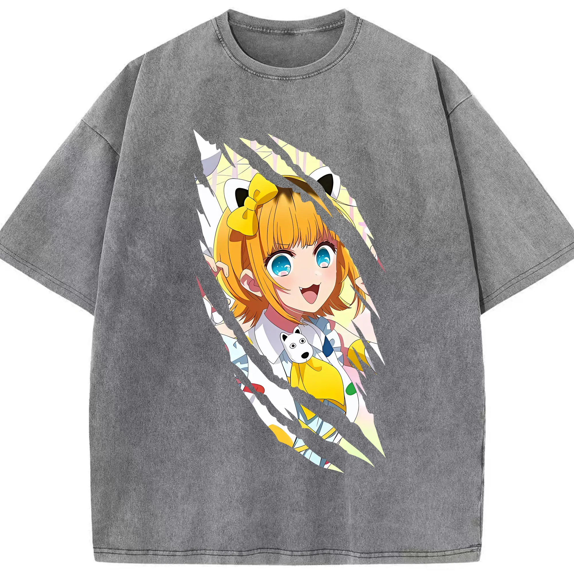 推しの子 グッズ,MEMちょ - 綿100% ヴィンテージ風 半袖Tシャツ ・ 背面プリント ・ 柔らか肌触り ・ 通気性 快適 ・ スポーツ カジュアル 外出用