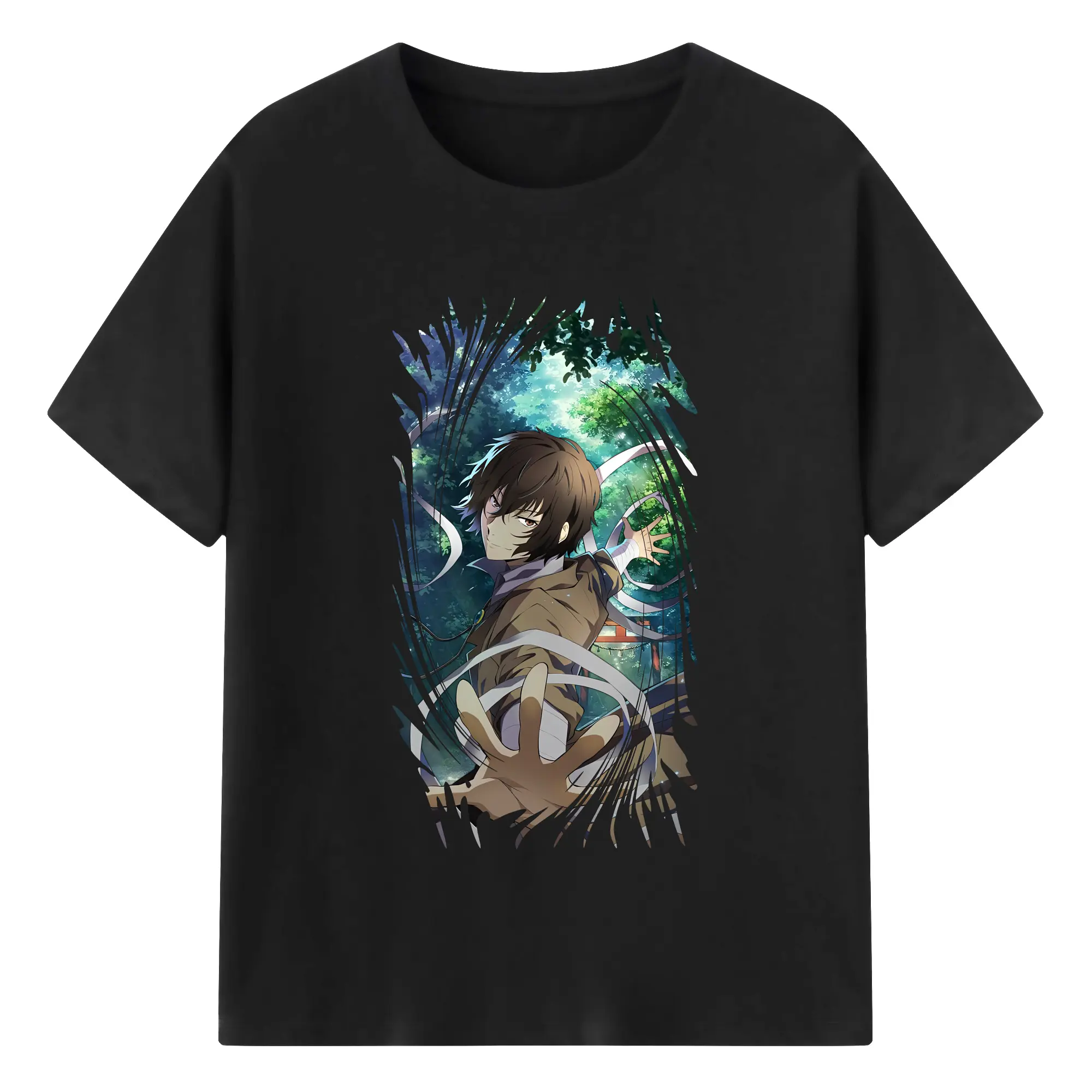 文豪ストレイドッグス グッズ,太宰治 - 綿100% 半袖Tシャツ ・ バックプリント ・ 快適 通気性 ・ 日常使い 散歩 スポーツ用