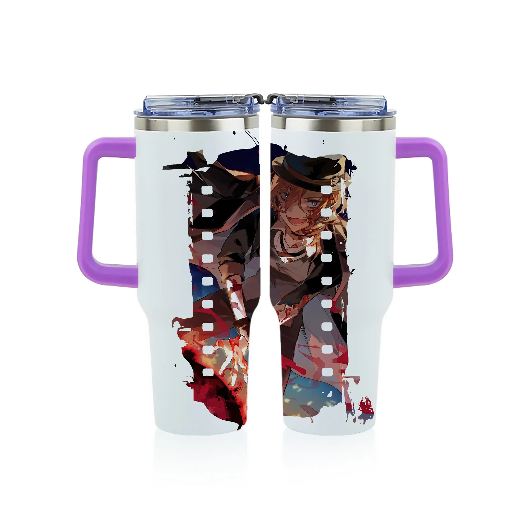 文豪ストレイドッグス グッズ,中原中也 - 1200mL フルプリント車用タンブラー ・ 304ステンレス 内側 ・ 201ステンレス 外側 ・ 保温 保冷 ・ 通勤 ドライブ アウトドア用