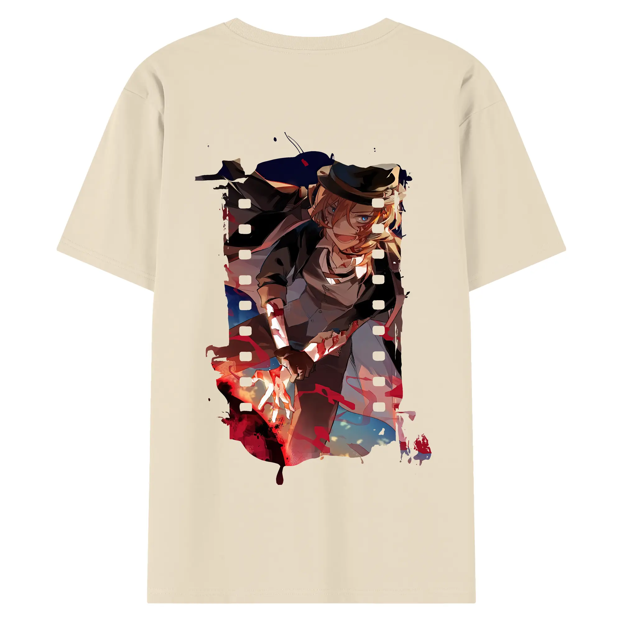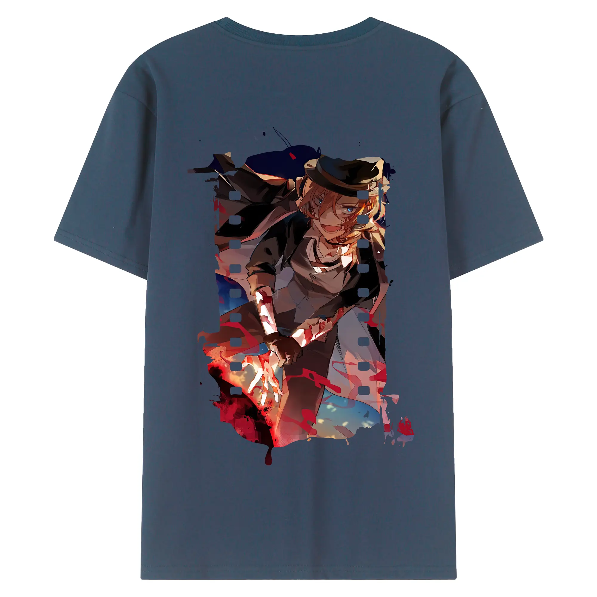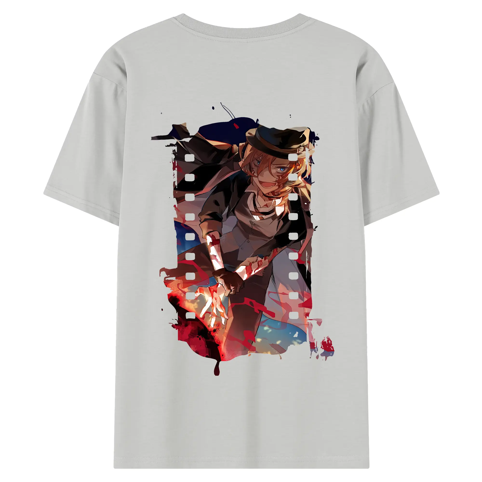 文豪ストレイドッグス グッズ,中原中也 - 綿100% ヴィンテージ風 半袖Tシャツ ・ 背面プリント ・ 柔らか肌触り ・ 通気性 快適 ・ スポーツ カジュアル 外出用