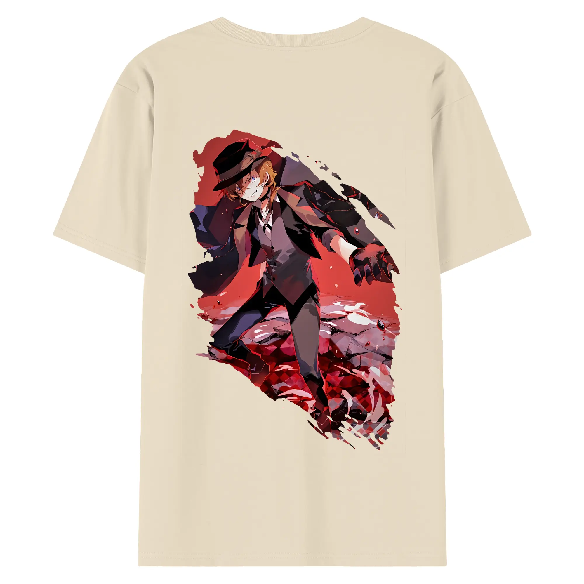 文豪ストレイドッグス グッズ,中原中也 - 綿100% ヴィンテージ風 半袖Tシャツ ・ 背面プリント ・ 柔らか肌触り ・ 通気性 快適 ・ スポーツ カジュアル 外出用